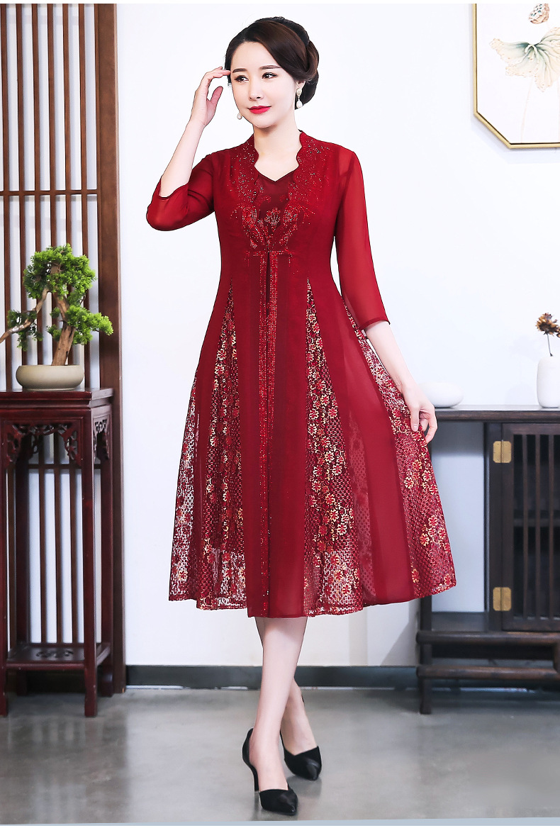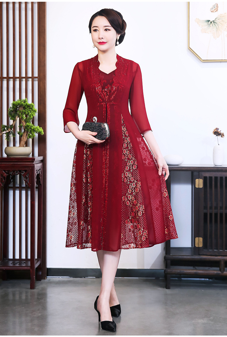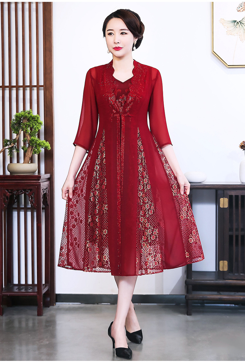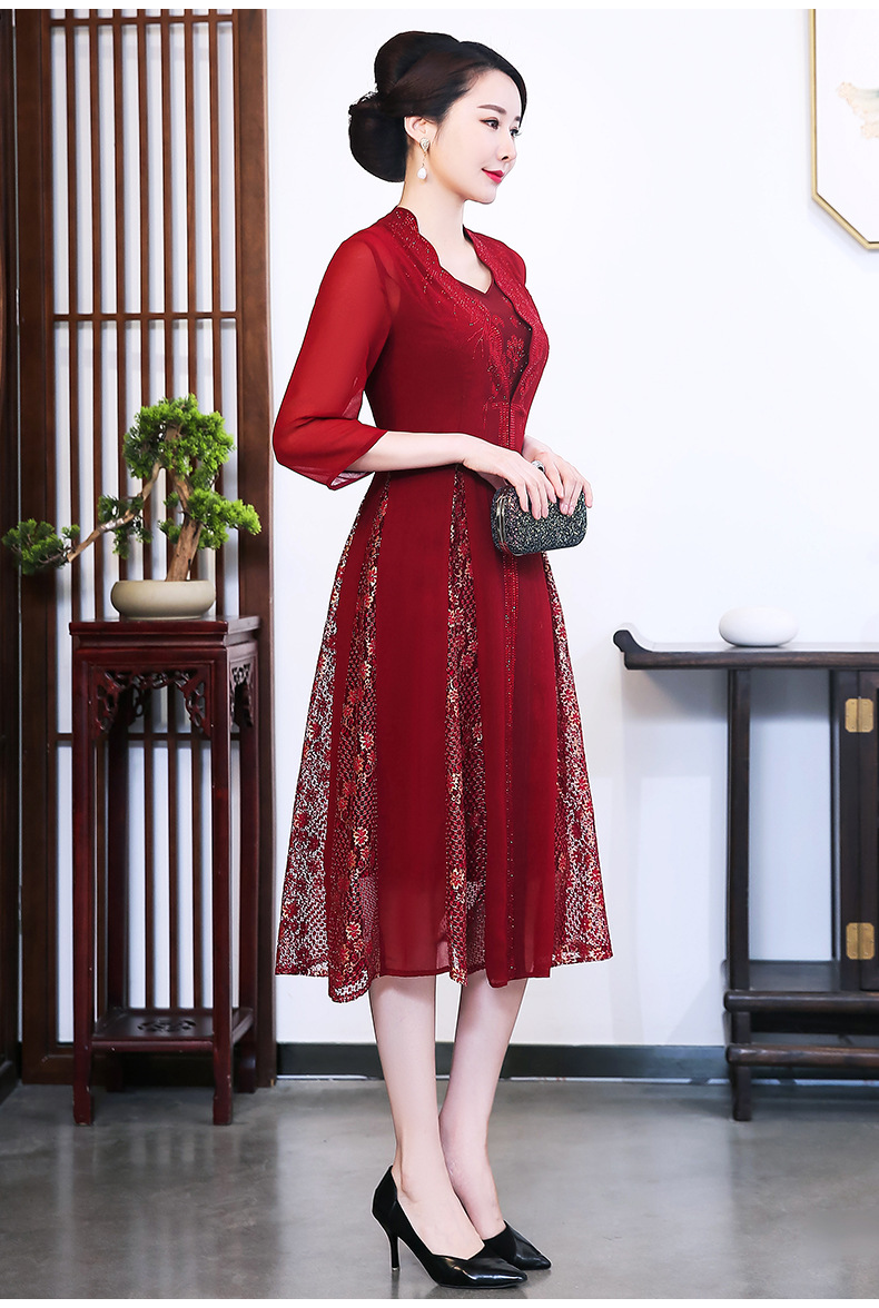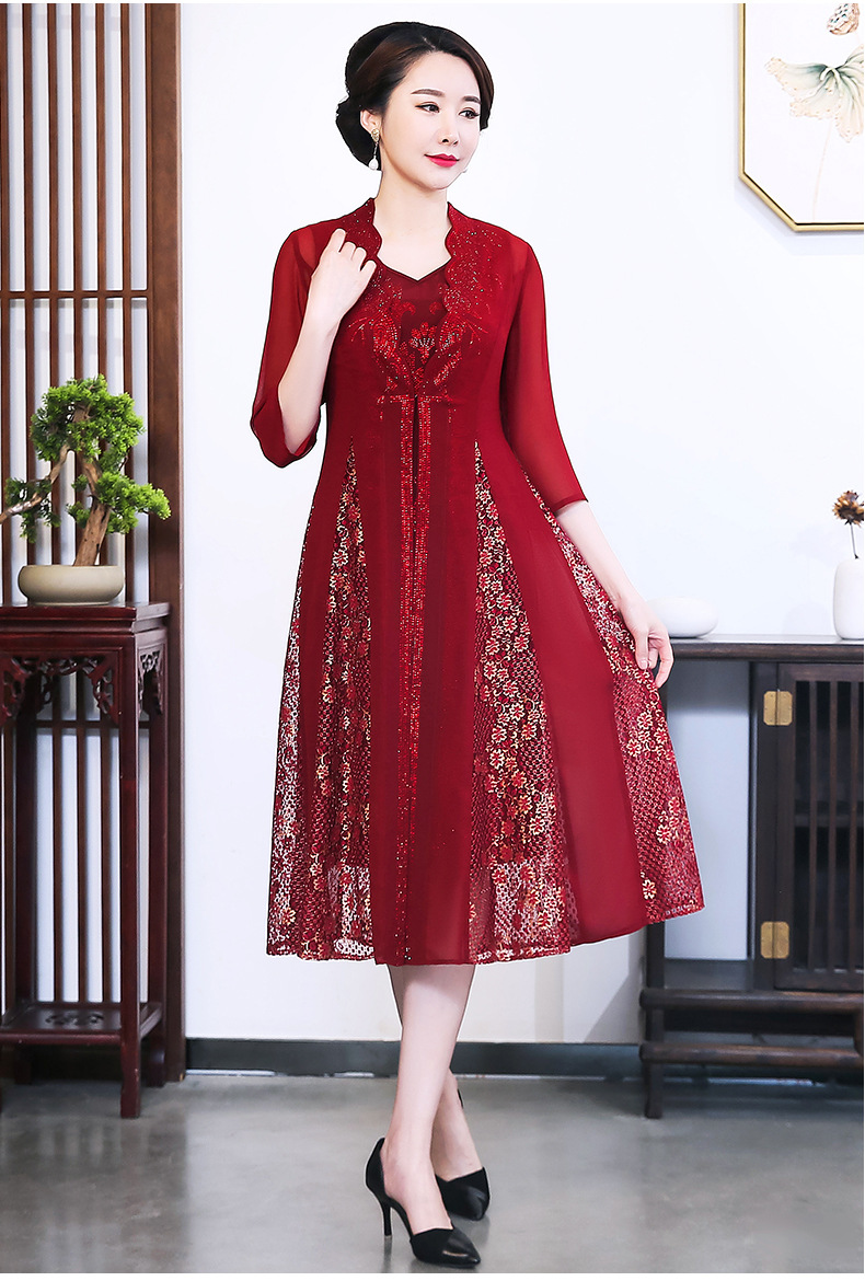 MY-80376新款妈妈装外套烫钻绣花婚宴长款两件套