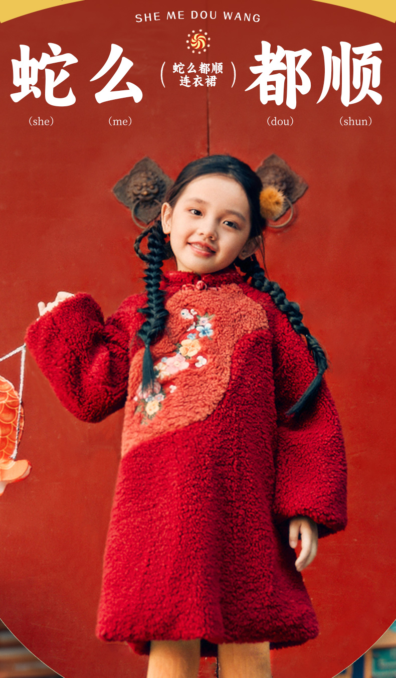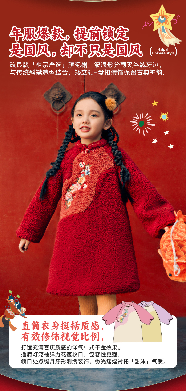 【下单方式见详情页】-年衣 童装女童旗袍裙连衣裙冬装儿童演出服宝宝周岁新中式礼服裙子(下单送喜乐之声发饰)