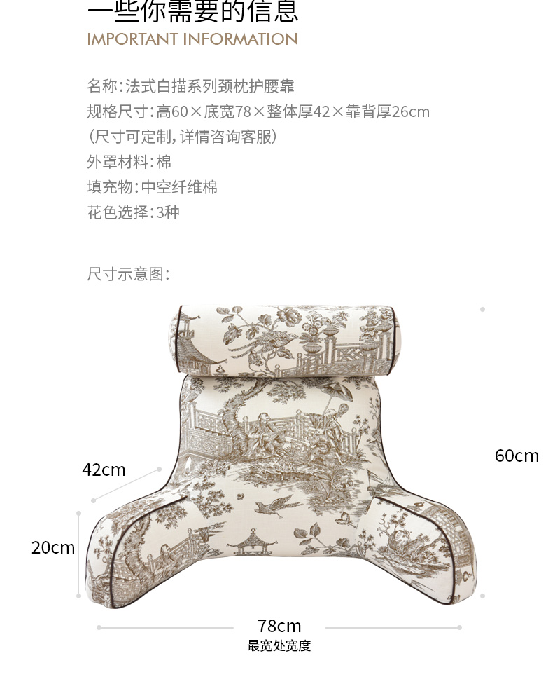 法式白描系列颈枕护腰靠靠枕软包高级感腰靠可拆洗
