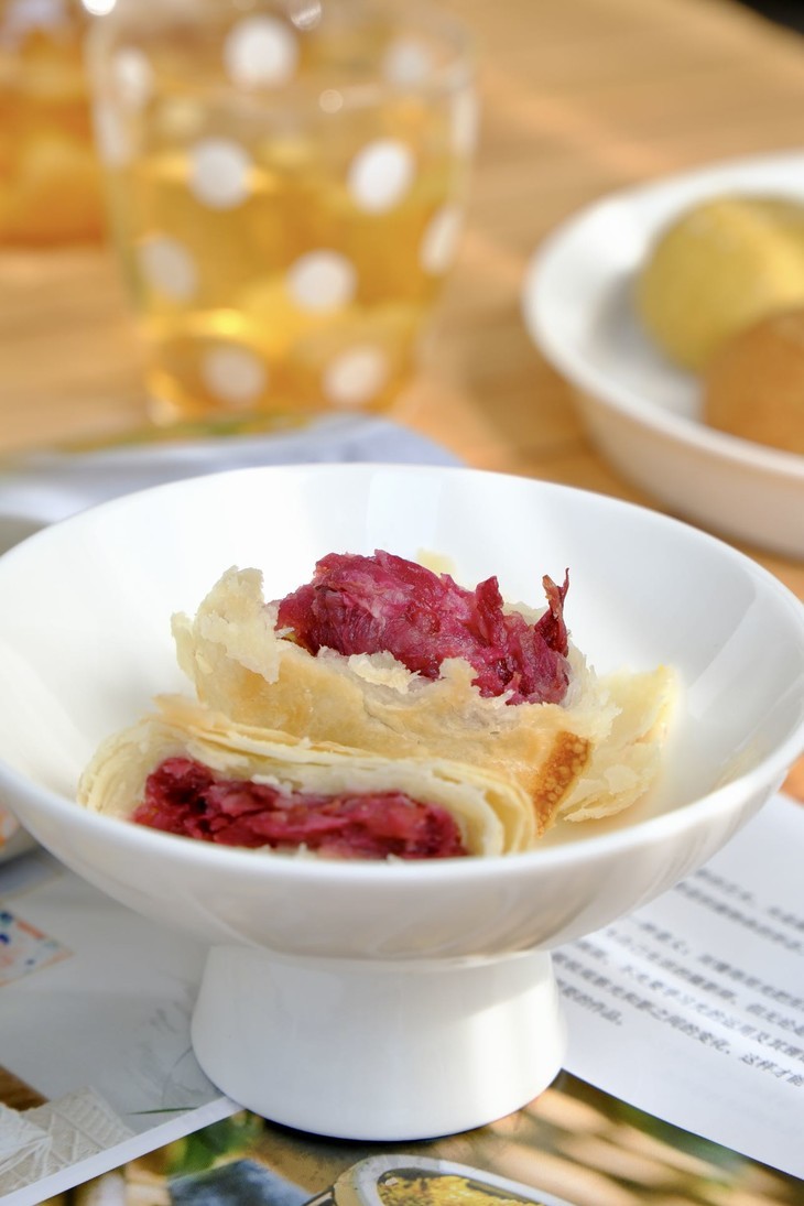 馅料是新鲜玫瑰花瓣、蜂蜜