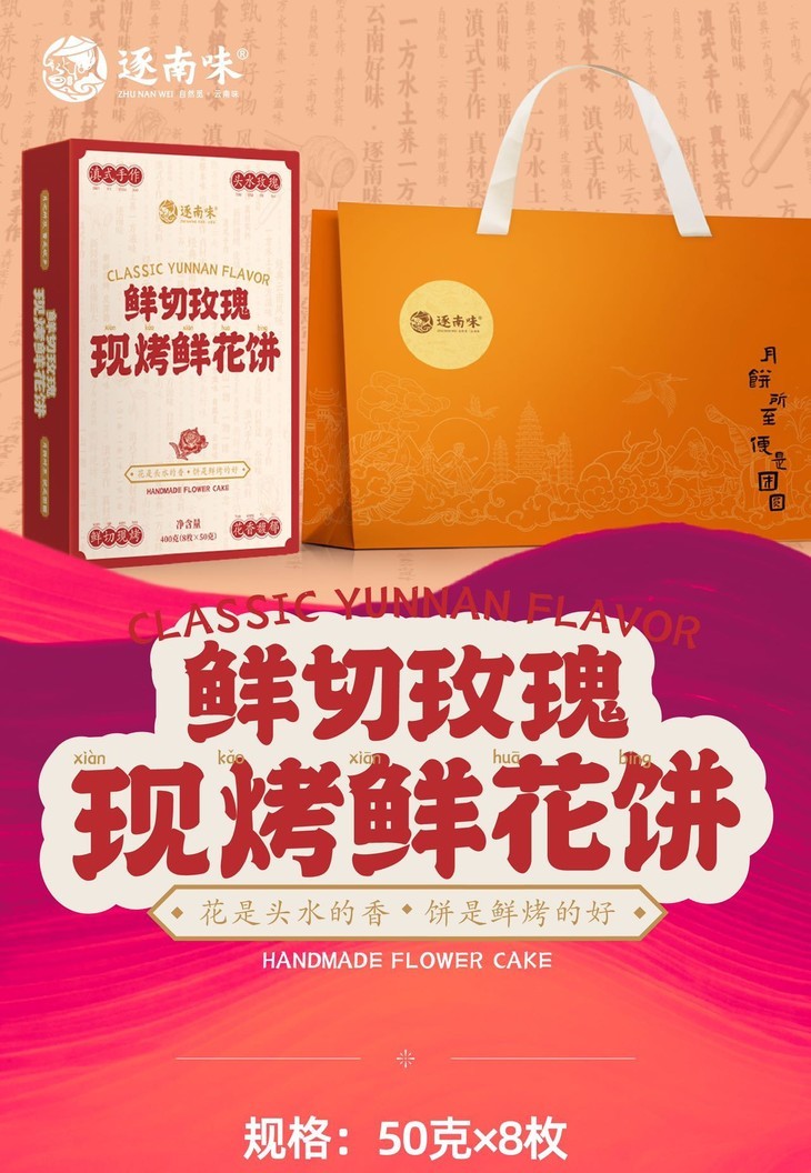 大理头水玫瑰【鲜切玫瑰鲜花饼】现烤做鲜烤,花复馥郁!新鲜花瓣、酥香可口,吃完呼吸都是玫瑰味儿的〜
