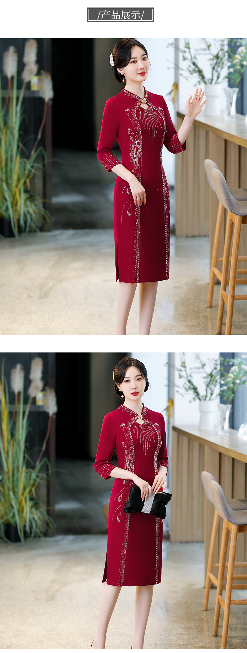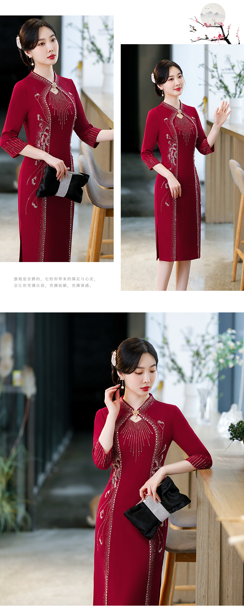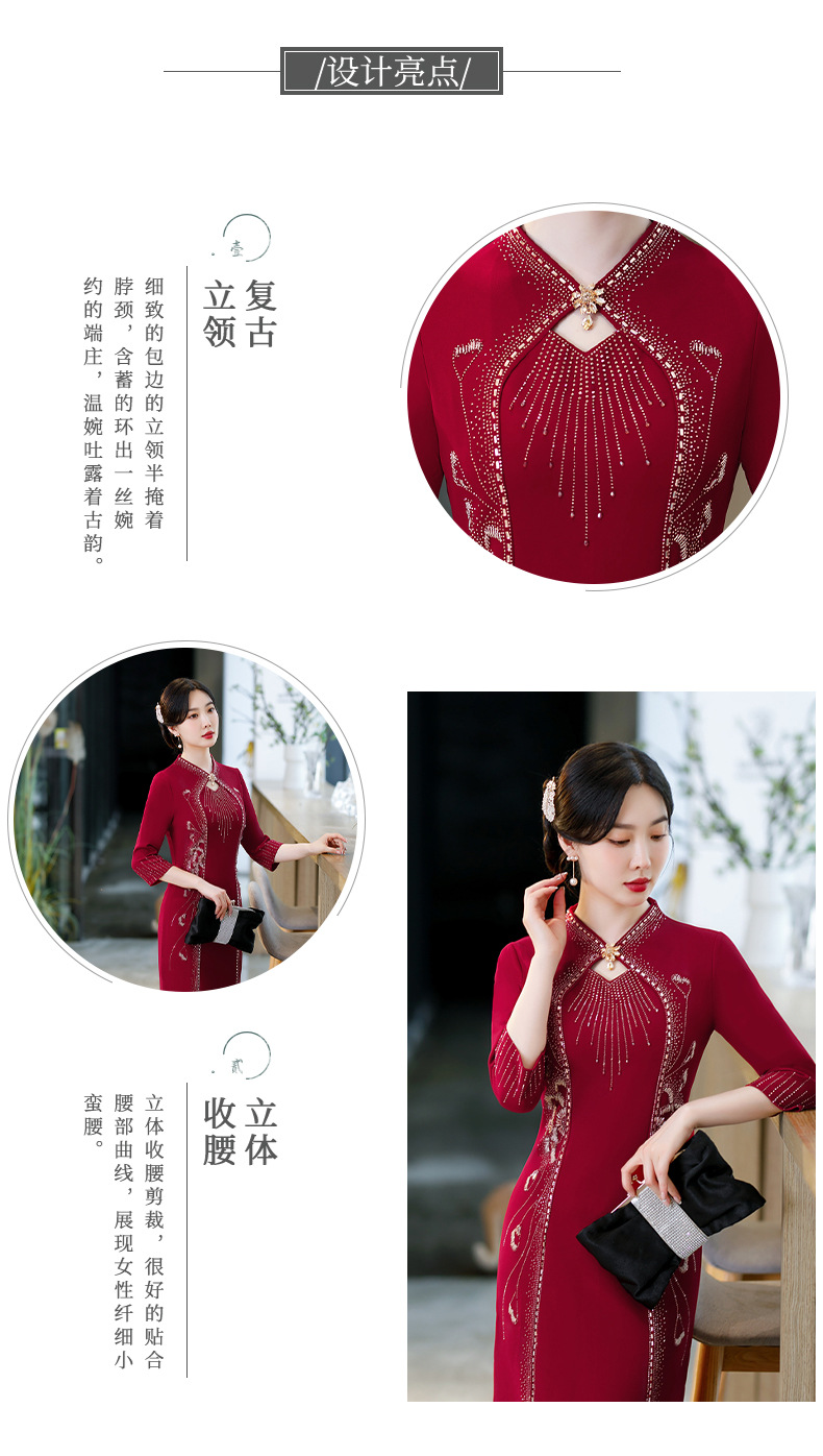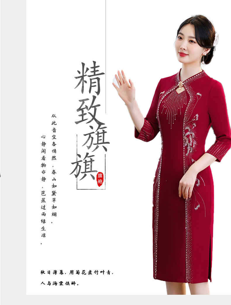 秋季新品,长款复合丝提花改良旗袍妈妈装宴会喜婆婆回娘家旗袍礼服BJ-23027