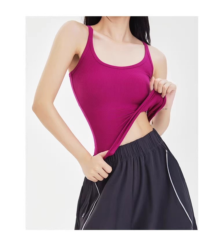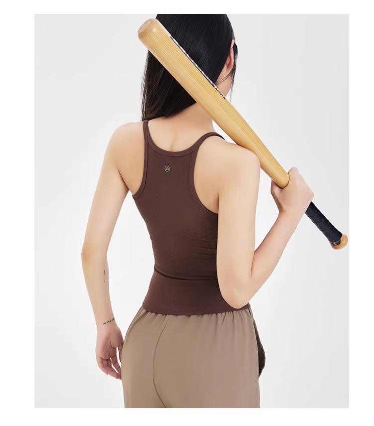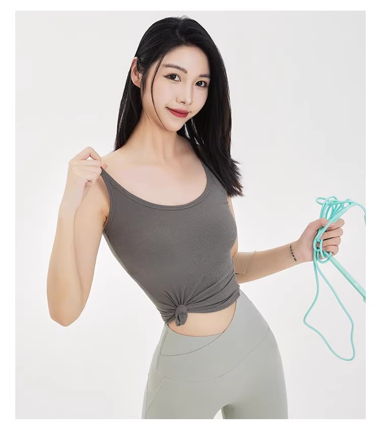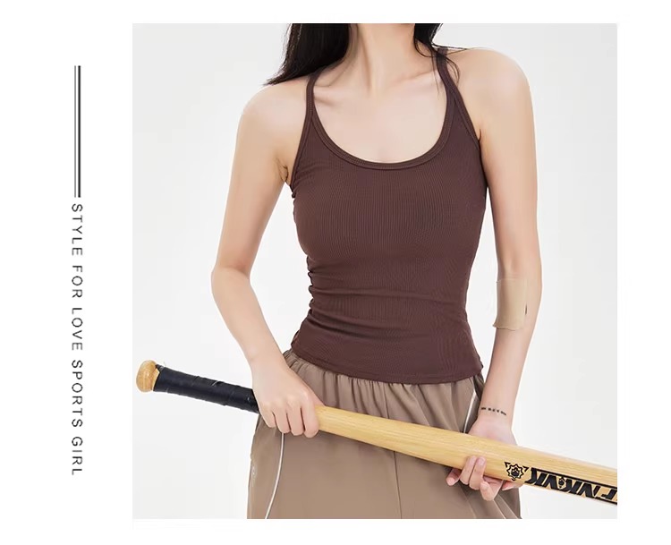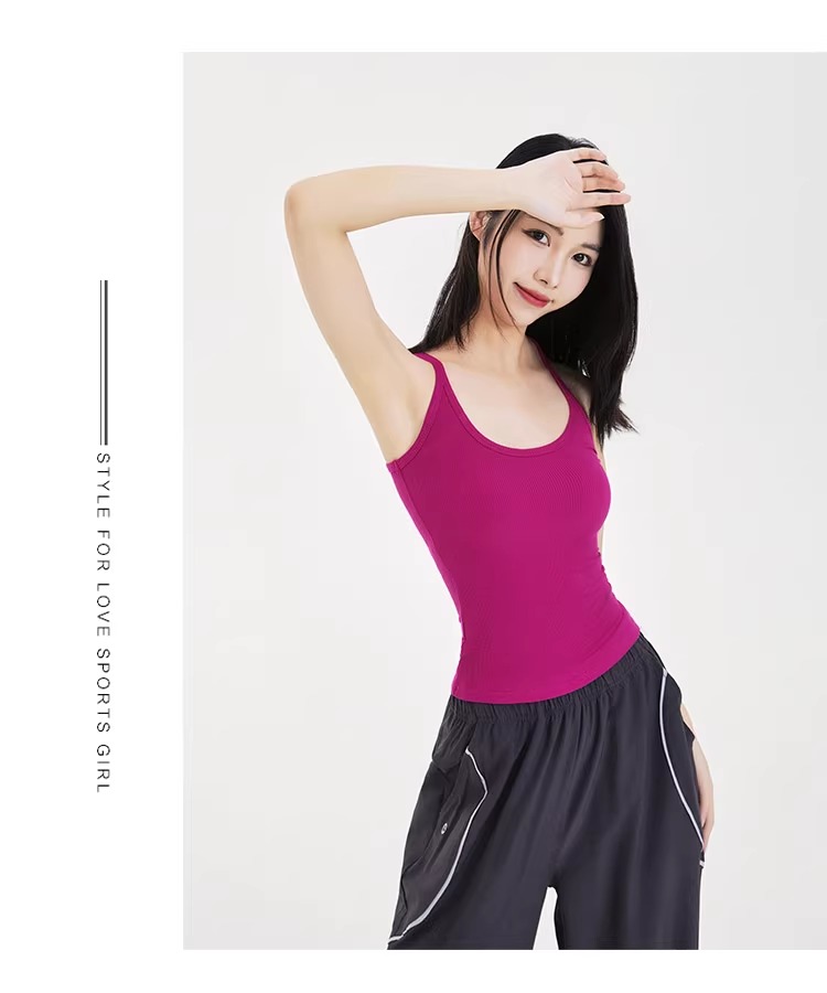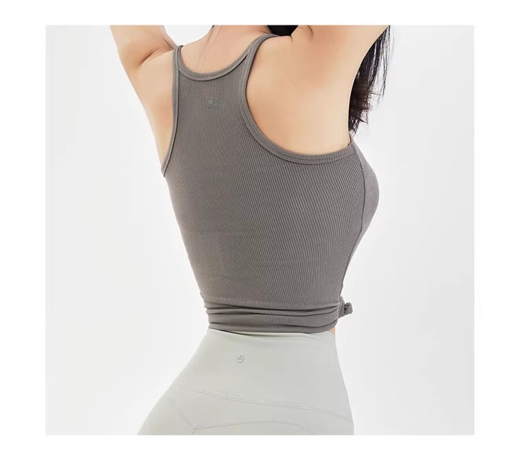 跃牌【周游世界系列】显瘦运动背心女螺纹高弹透气健身上衣工字美背修身瑜伽服 TP0686(无胸垫)