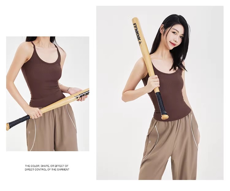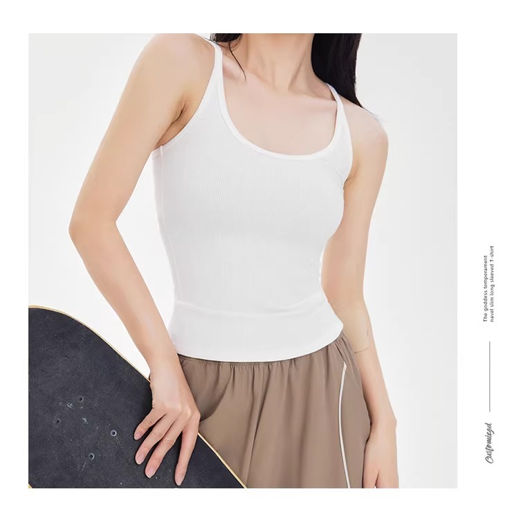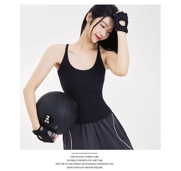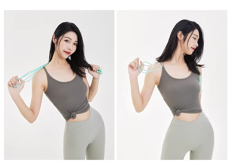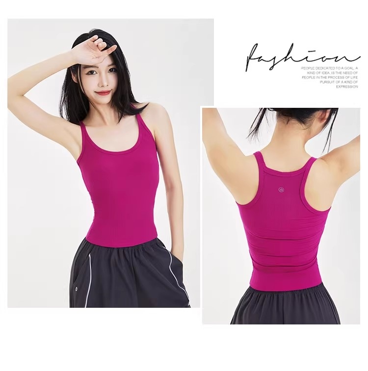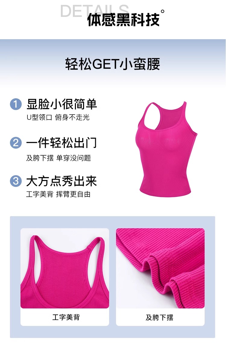 跃牌【周游世界系列】显瘦运动背心女螺纹高弹透气健身上衣工字美背修身瑜伽服 TP0686(无胸垫)