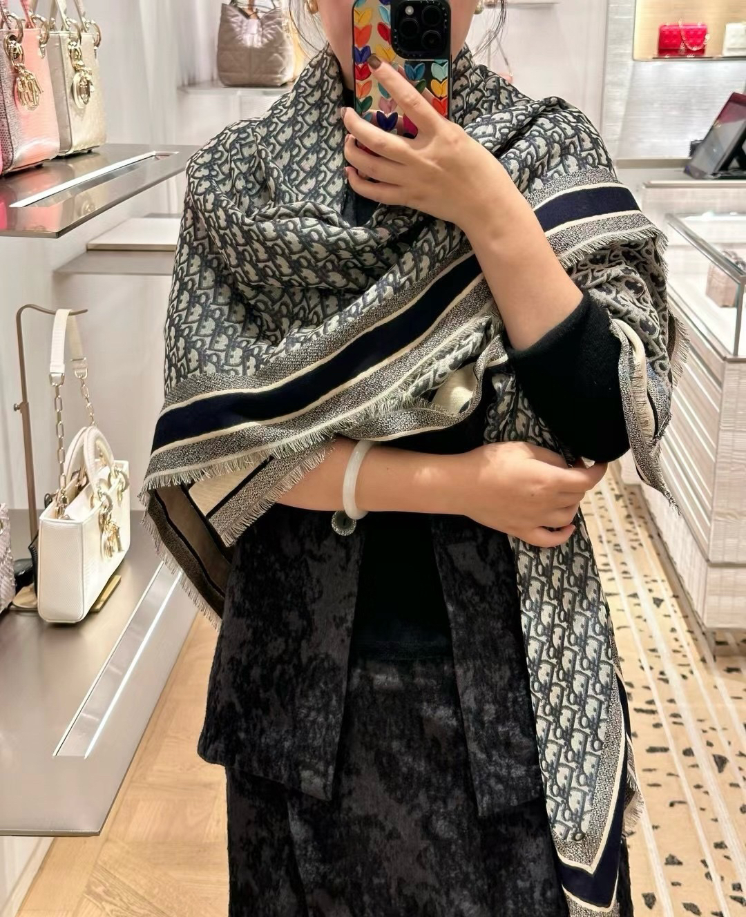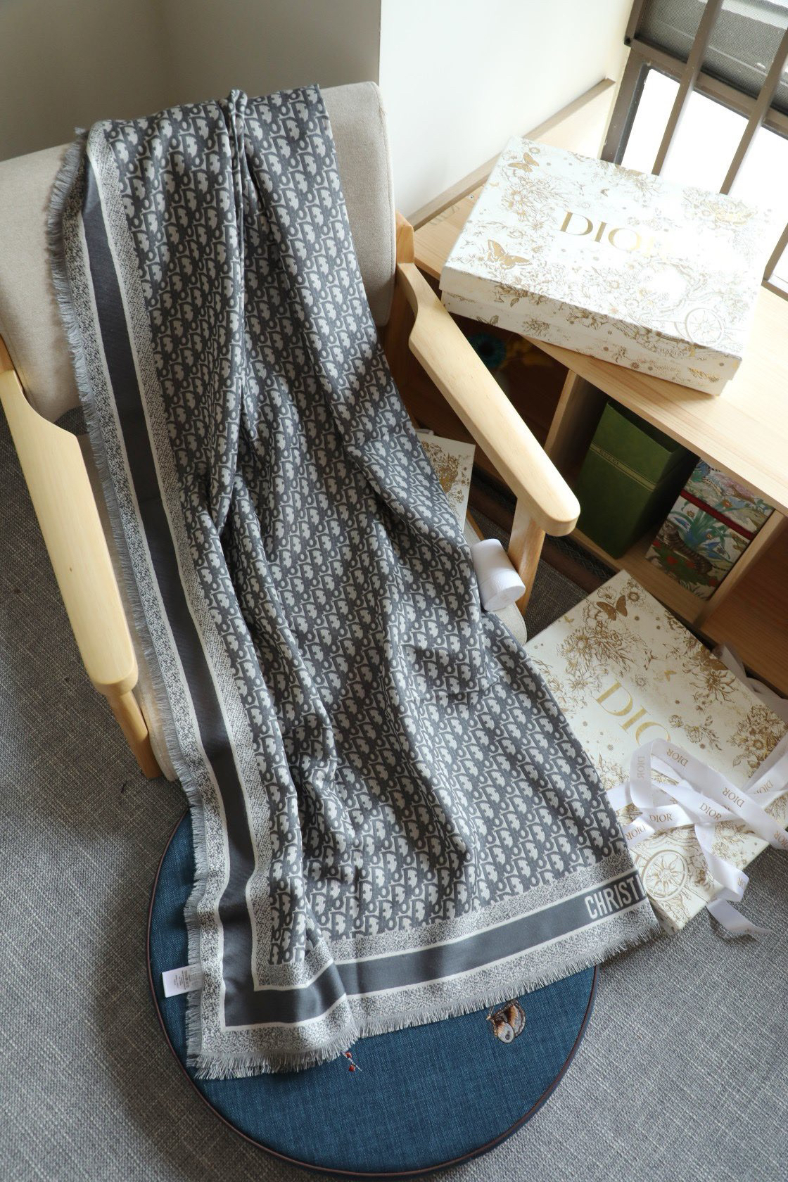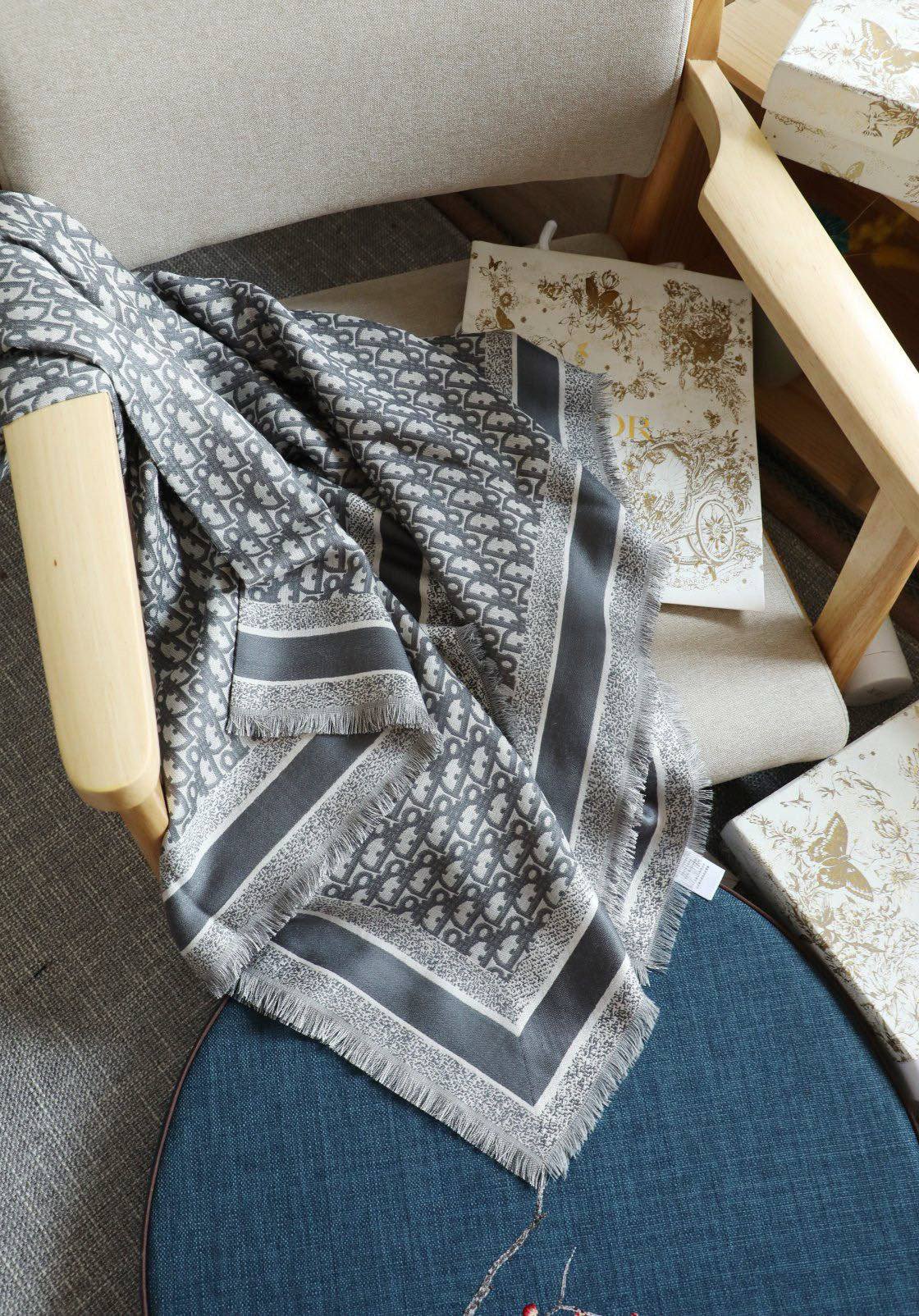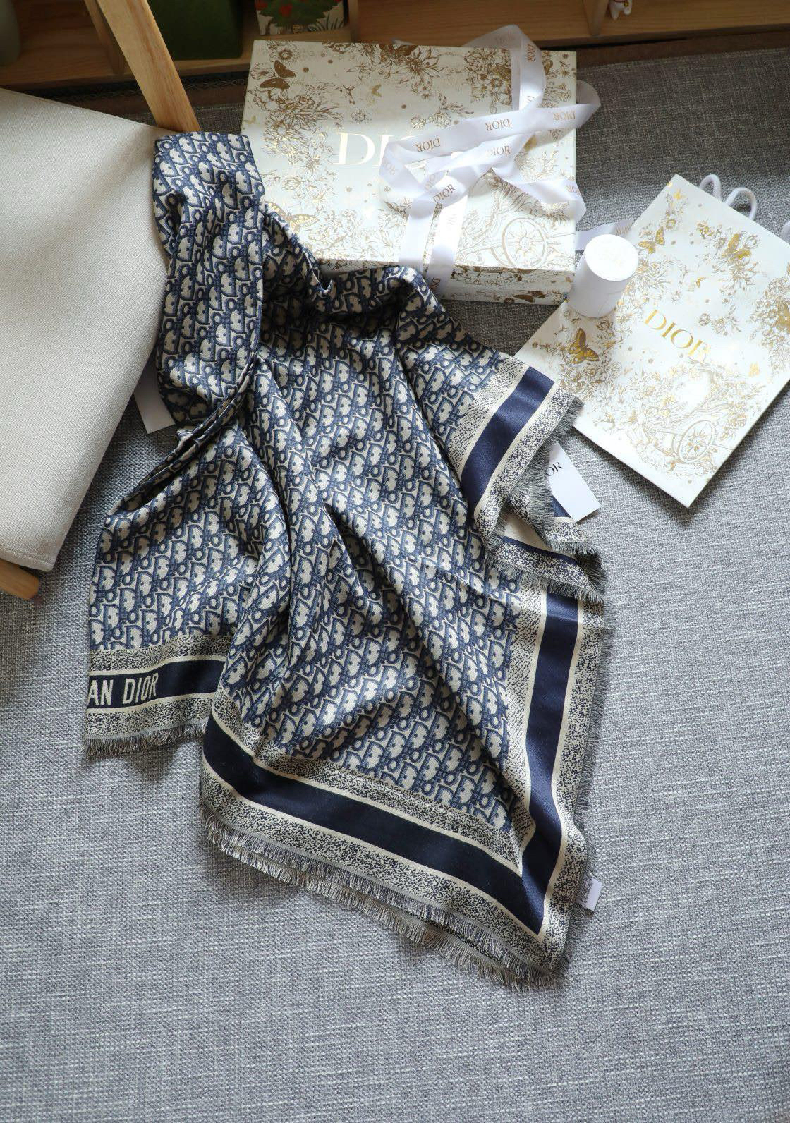 高端CD DIO*真丝方巾披肩