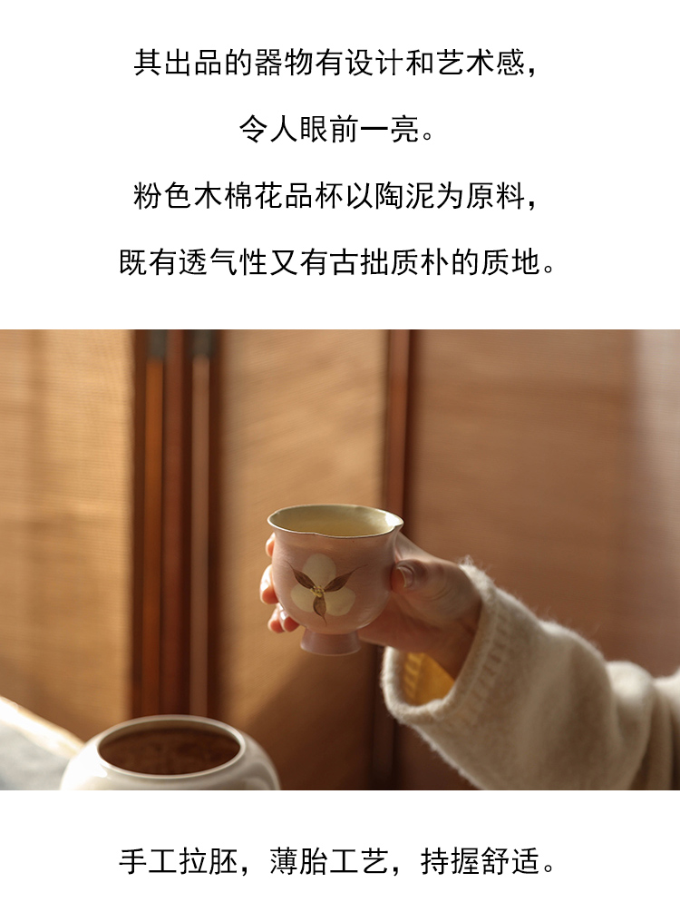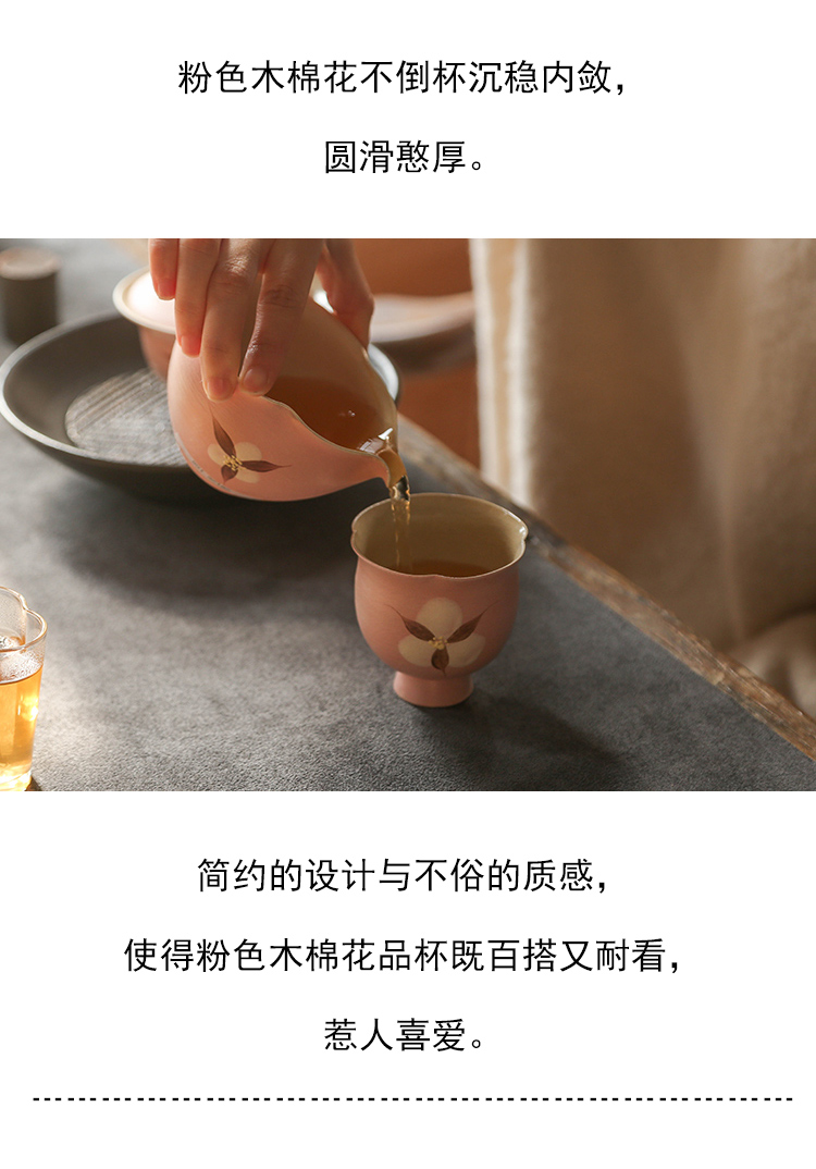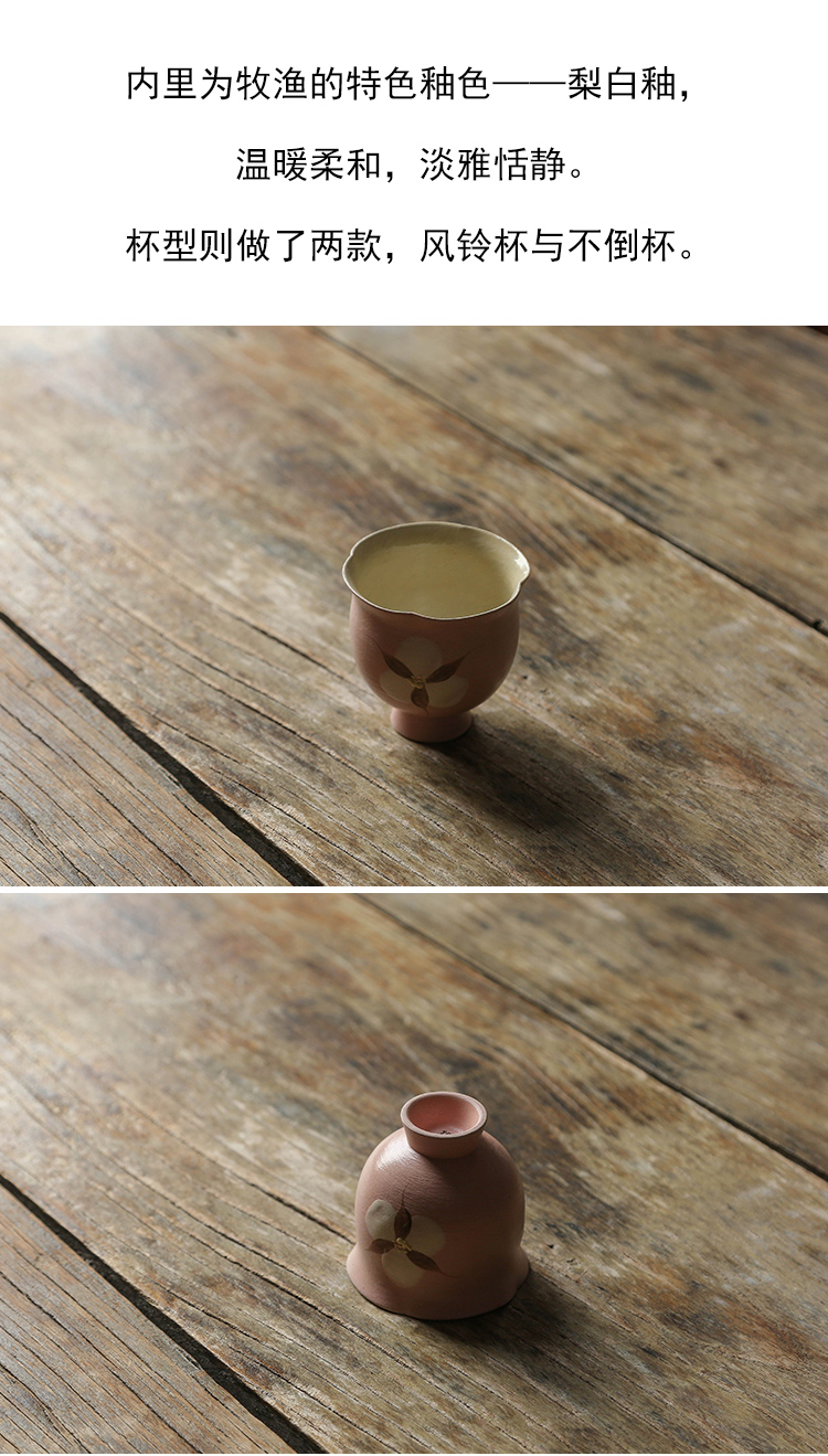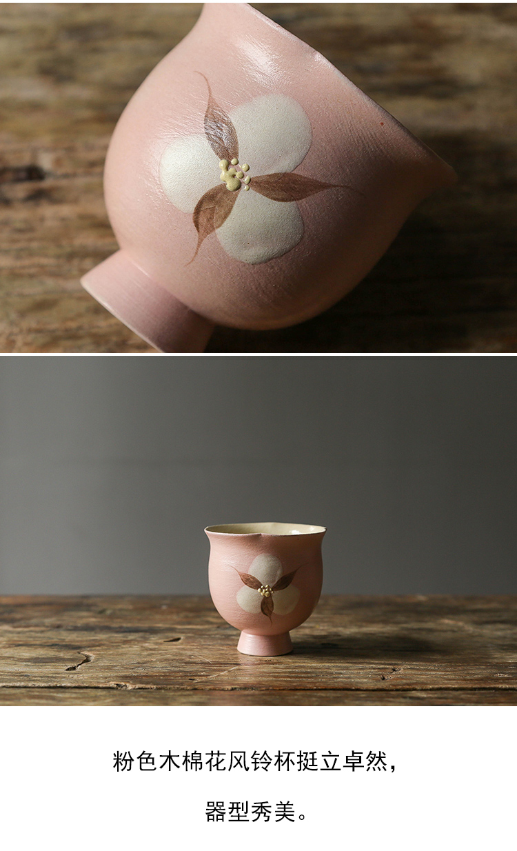 茶香记 粉色木棉花品杯 牧渔 精巧优雅 古拙质朴 手绘木棉花 风铃杯与不倒杯 百搭好用 简洁耐看 质感十足