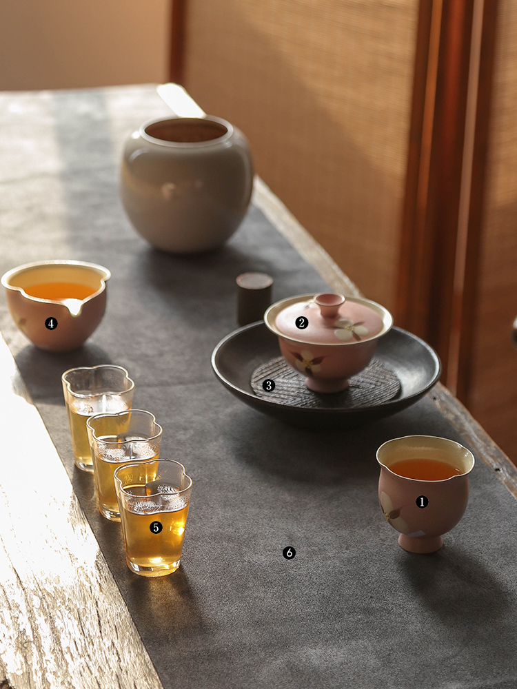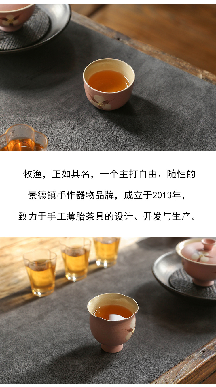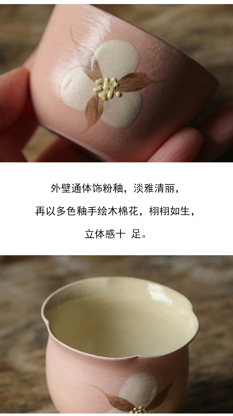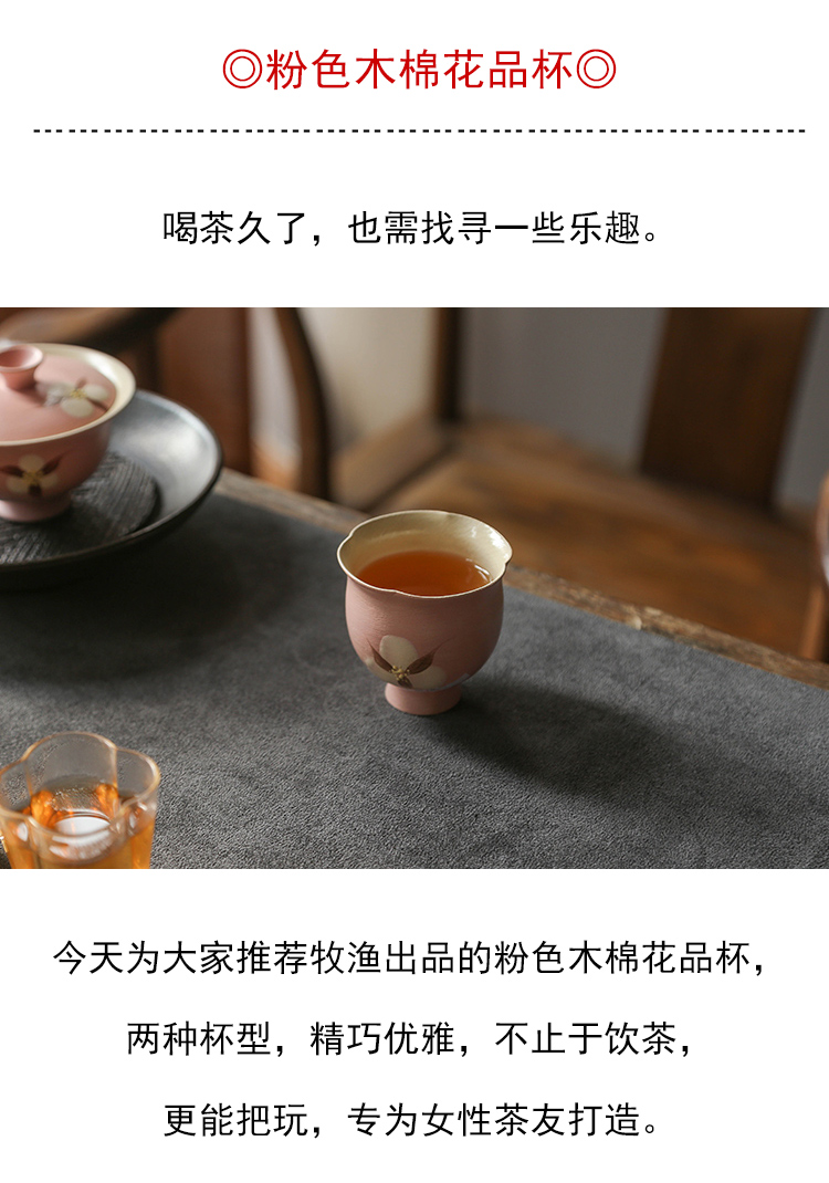 茶香记 粉色木棉花品杯 牧渔 精巧优雅 古拙质朴 手绘木棉花 风铃杯与不倒杯 百搭好用 简洁耐看 质感十足