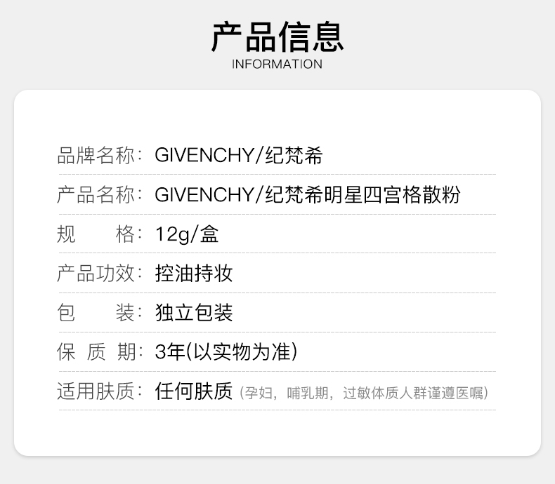 【门店直发】纪梵希 1#明星四宫格散粉12g新老包装随机发
