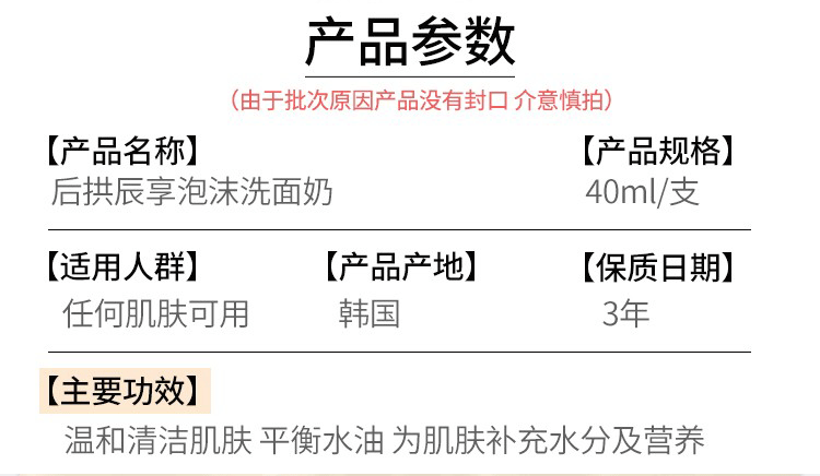 【门店直发 支持同城配送】whoo后拱辰享洗面奶中样水妍洁面乳小样40ML