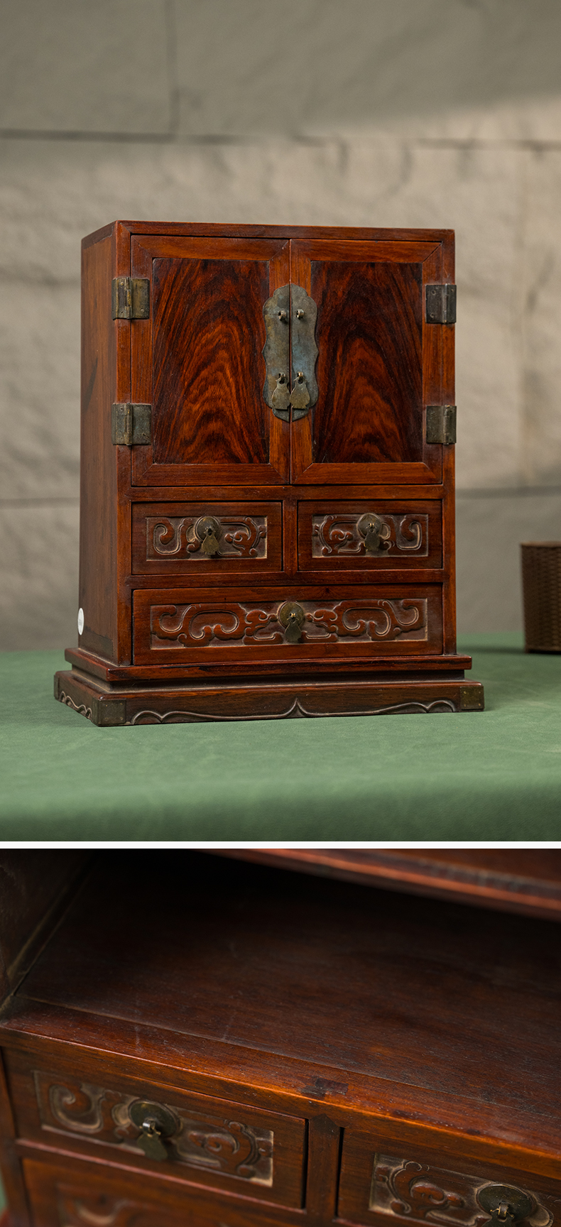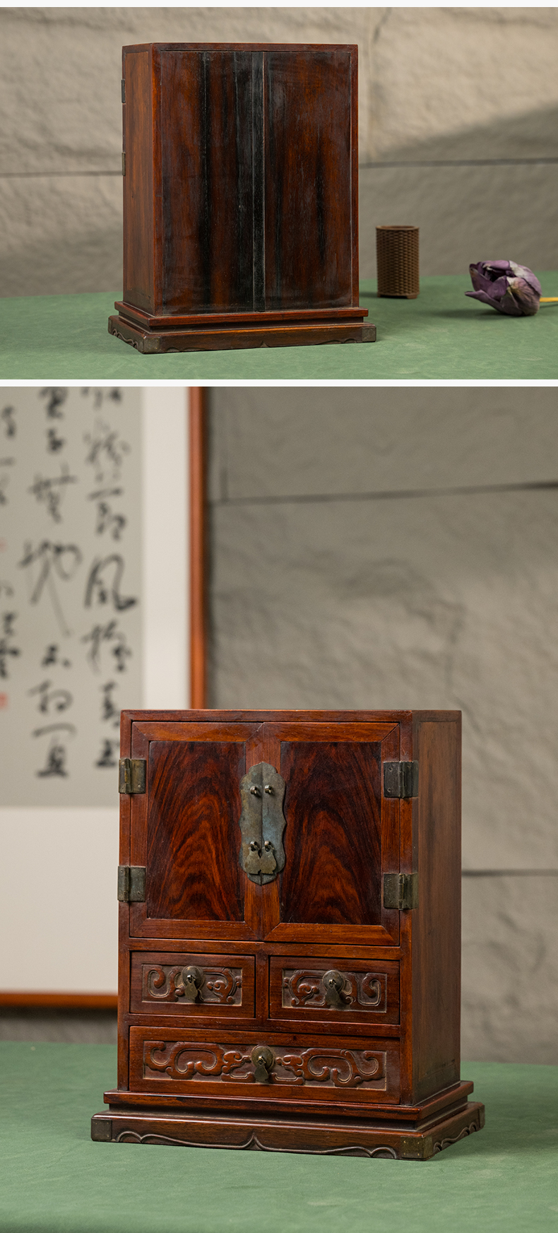 清代 红木镶瘿木嵌寿山石山水人物插屏