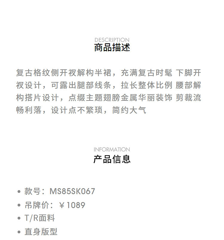 MAXRIENY复古格纹结构半裙美拉德穿搭裙子(货号:MS85SK067)