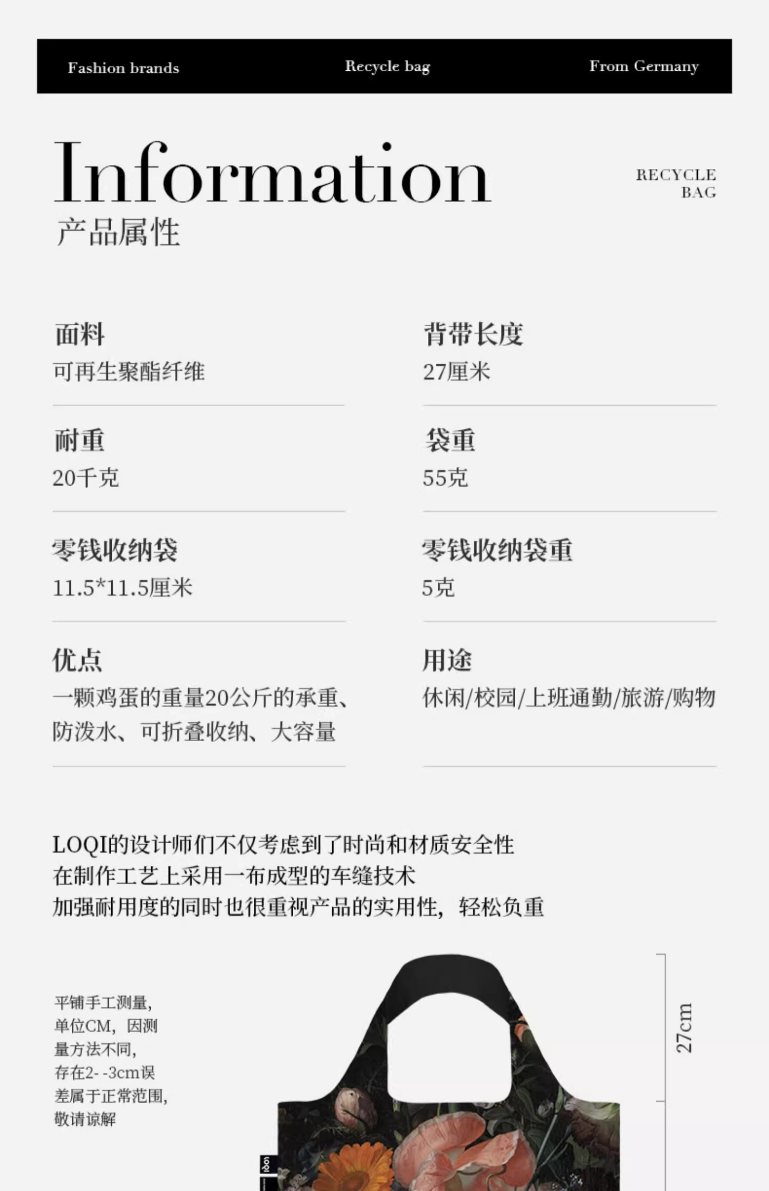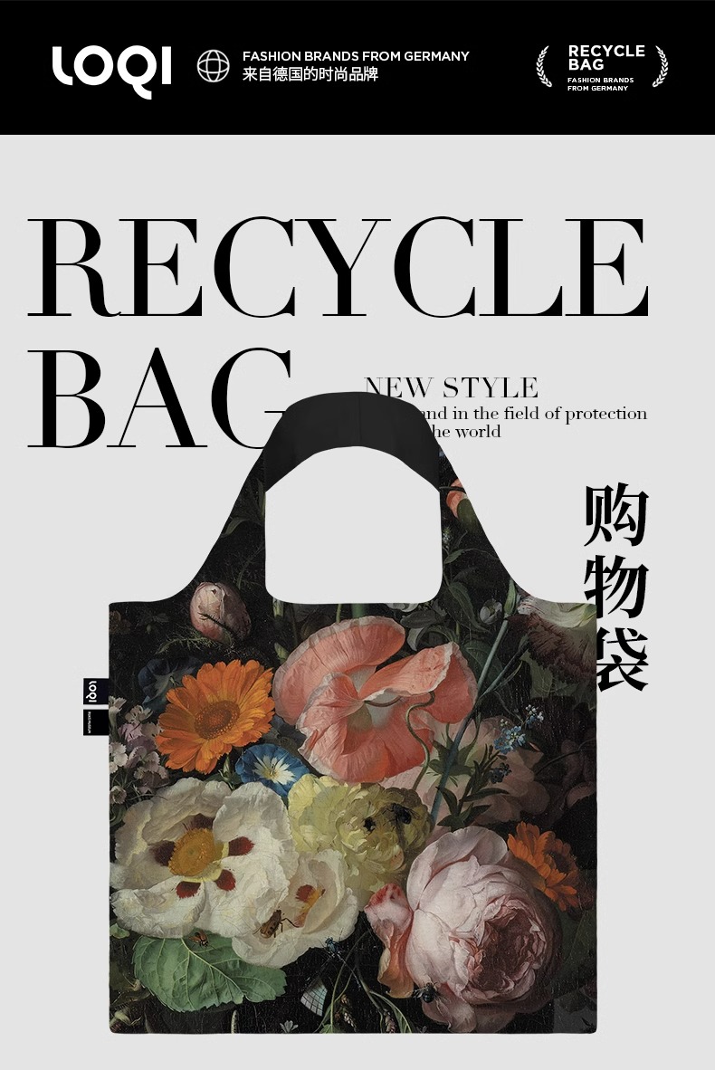 德国LOQI 新品博物馆系列 时尚艺术环保万用袋 折叠大容量单肩手提购物袋承重40斤防泼水 大理石桌面上的静物画