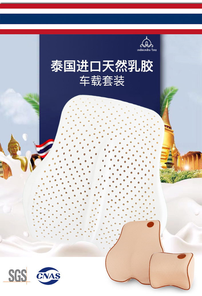 【周末不发货】泰国天然乳胶汽车用品 欢乐点点定制黑色红边头枕/腰靠/套装 头枕护颈枕车用靠枕座椅枕头 车座靠背座椅腰垫护腰枕车载背靠垫