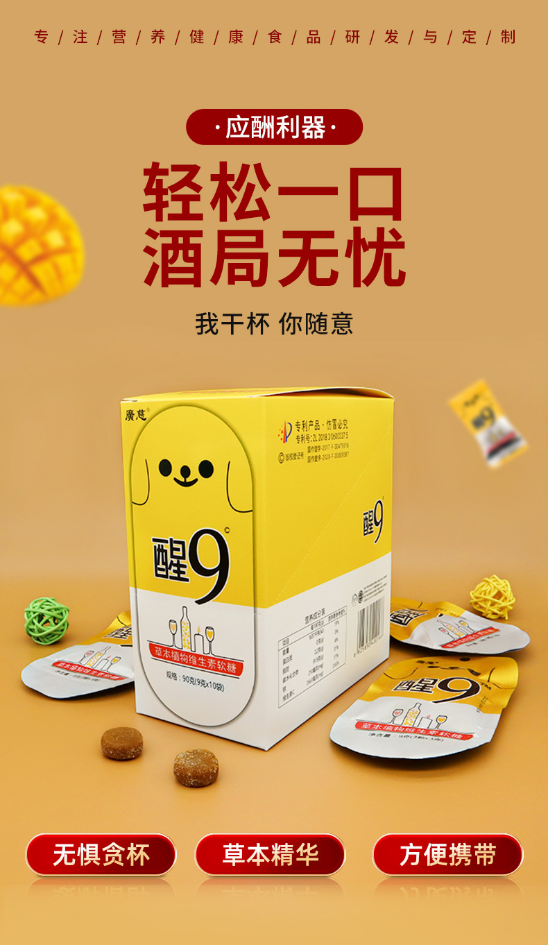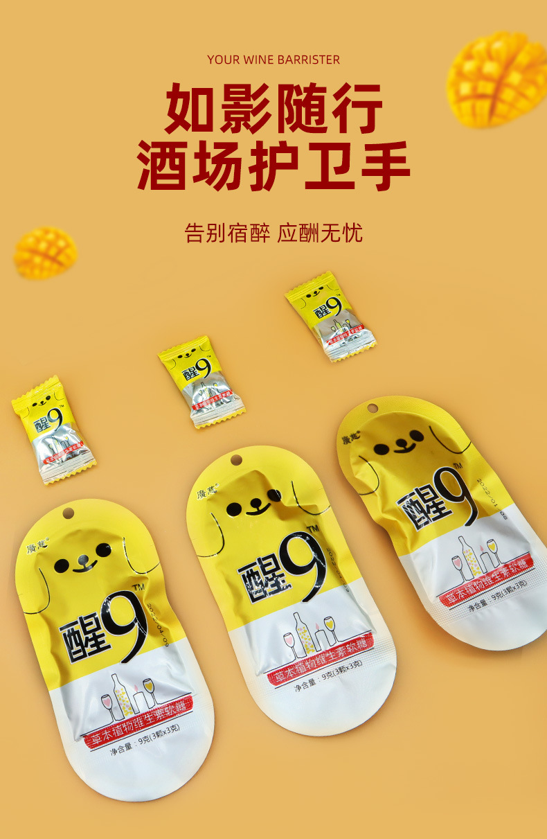 【解酒醒酒 缓解宿醉 草本精华】广慈醒9解9软糖 成人应酬 酒场姜黄葛根酒醒出汗 芒果味果汁凝胶糖果-QQ