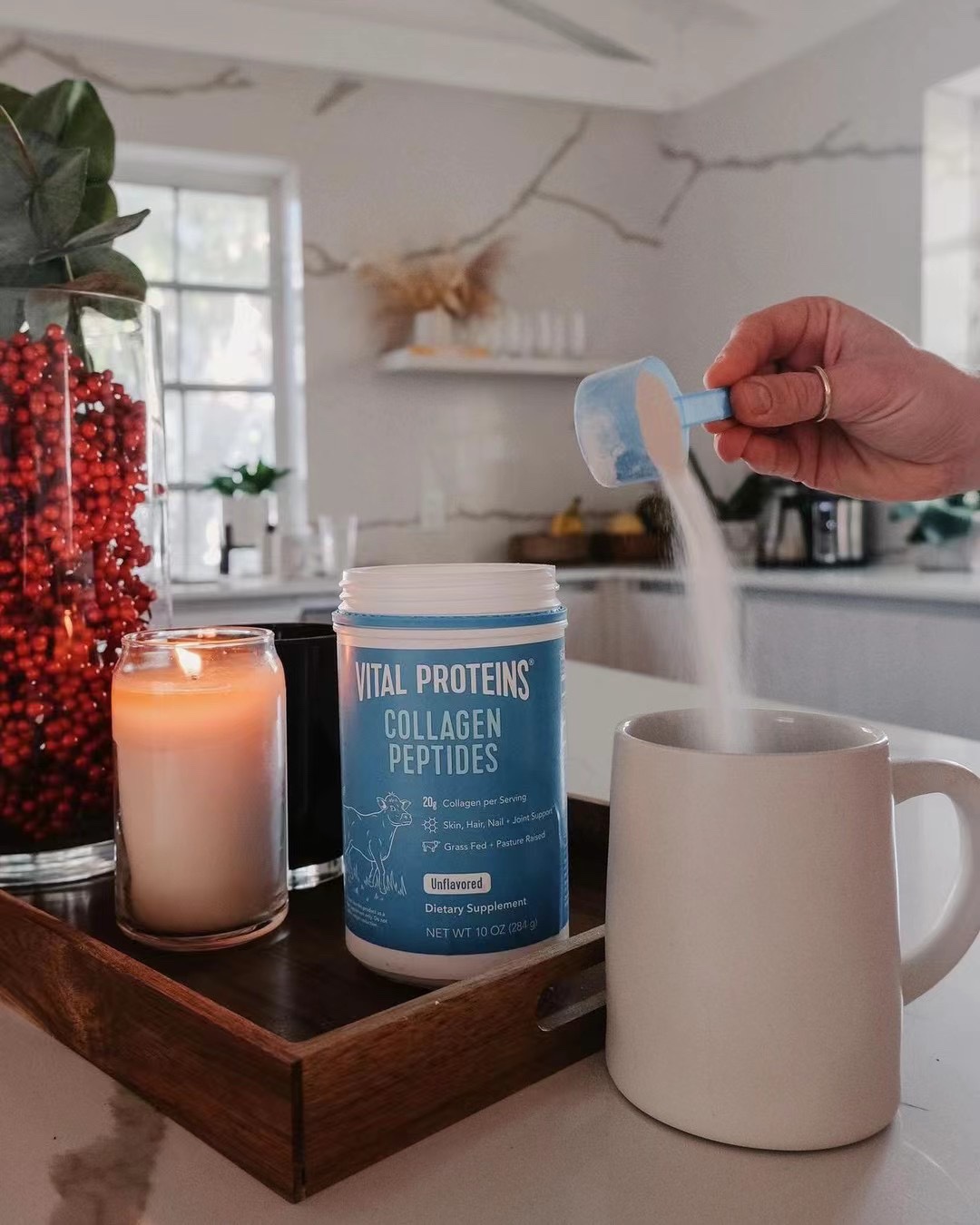 Vital Proteins纯胶原蛋白肽粉,北美吸粉无数的日常补充胶原蛋白肽类产品(很多营养师,健身达人和护肤人士喜欢VP家的东西),获得2018年女性最佳胶原蛋白评分,成分简单,安全靠谱,原料全部来自天然牧场的牛牛🐂🐂,高胶原蛋白含量,对皮肤保养,恢复皮肤弹性也有所改善,长期服用有淡化细纹的效果,要“内外兼修”,头发和指甲的生长速度比以前要快,必须要持续坚持吃,作为平时日常补充的话,一天1-2勺就够了!