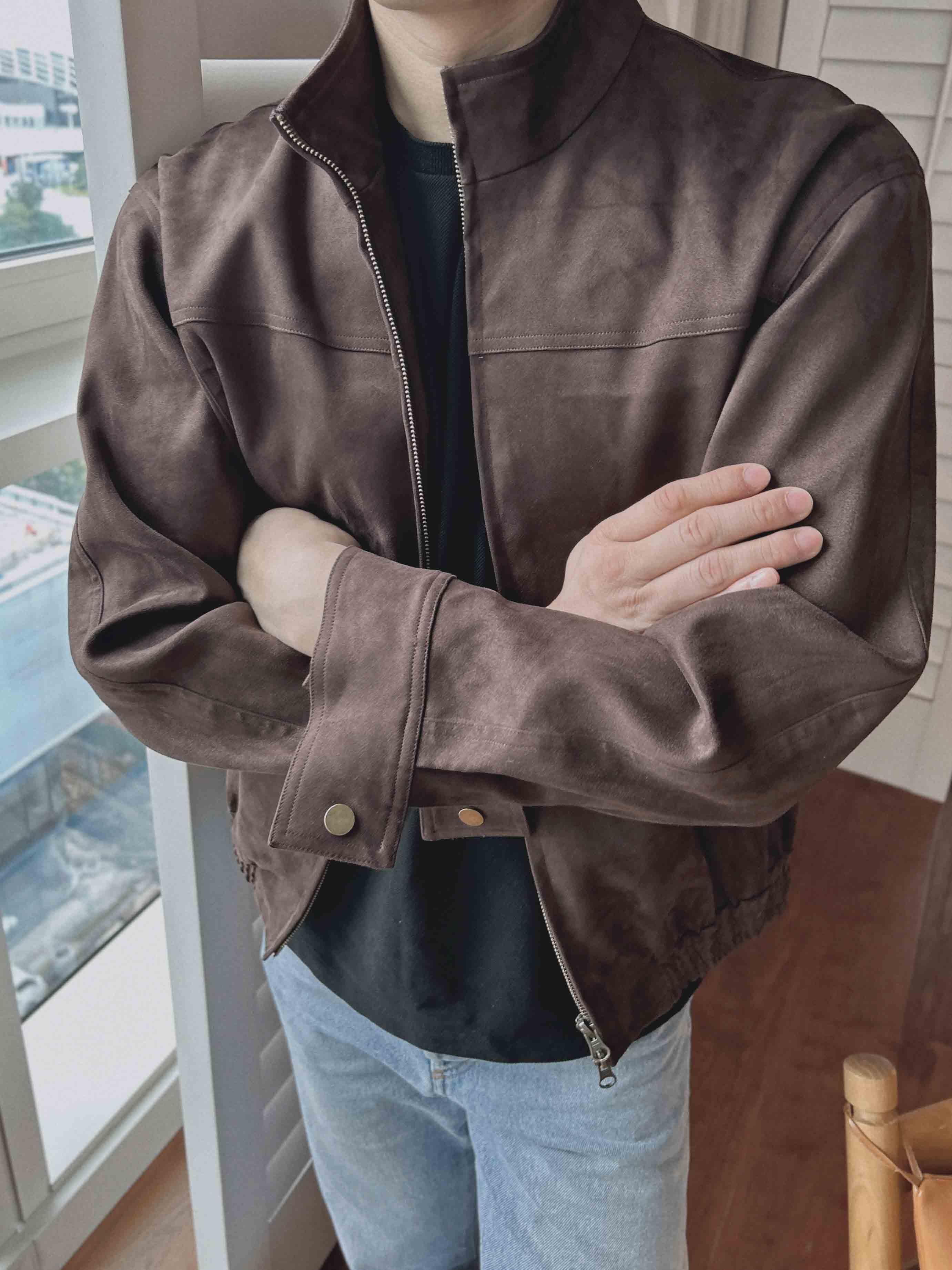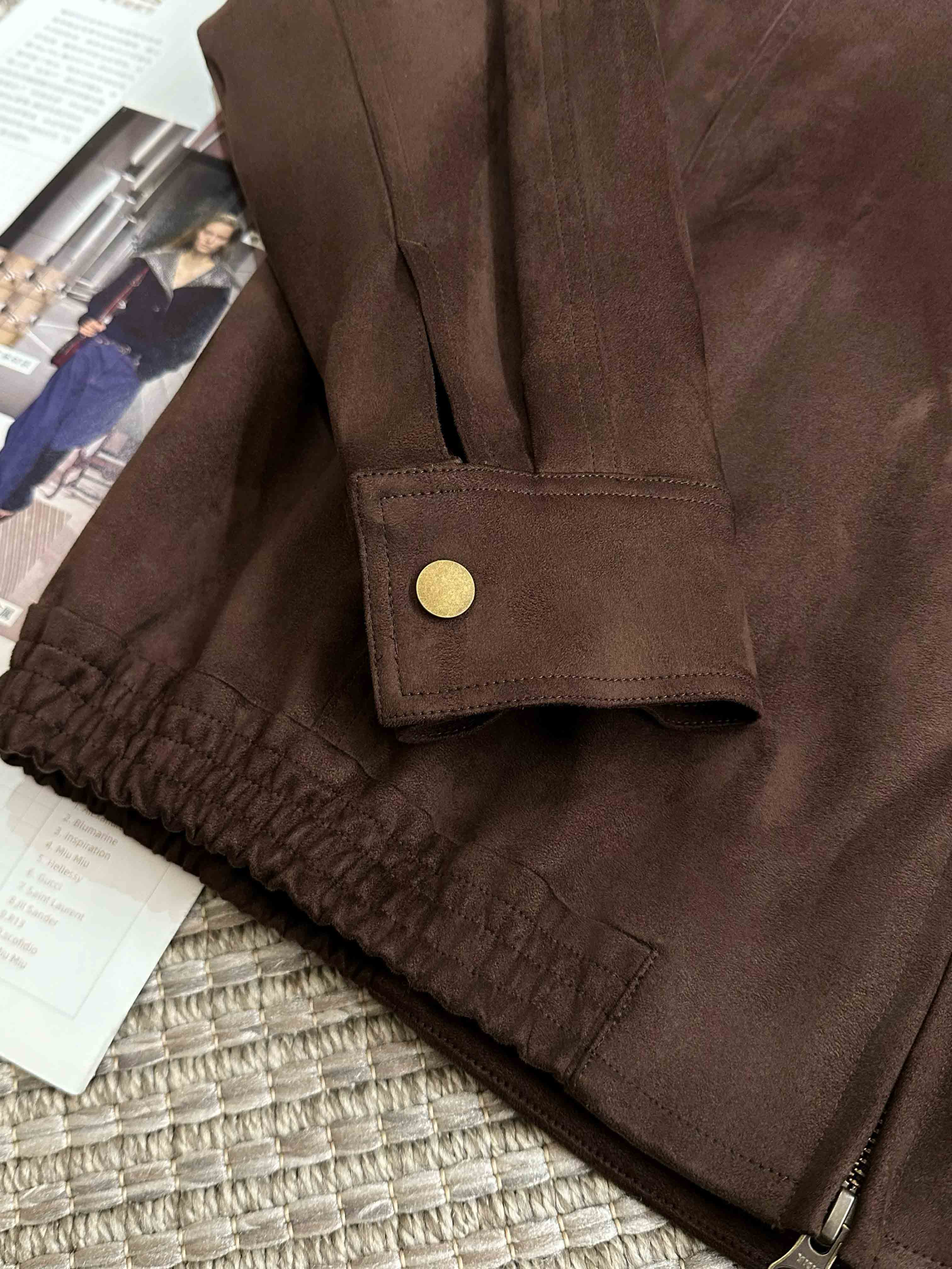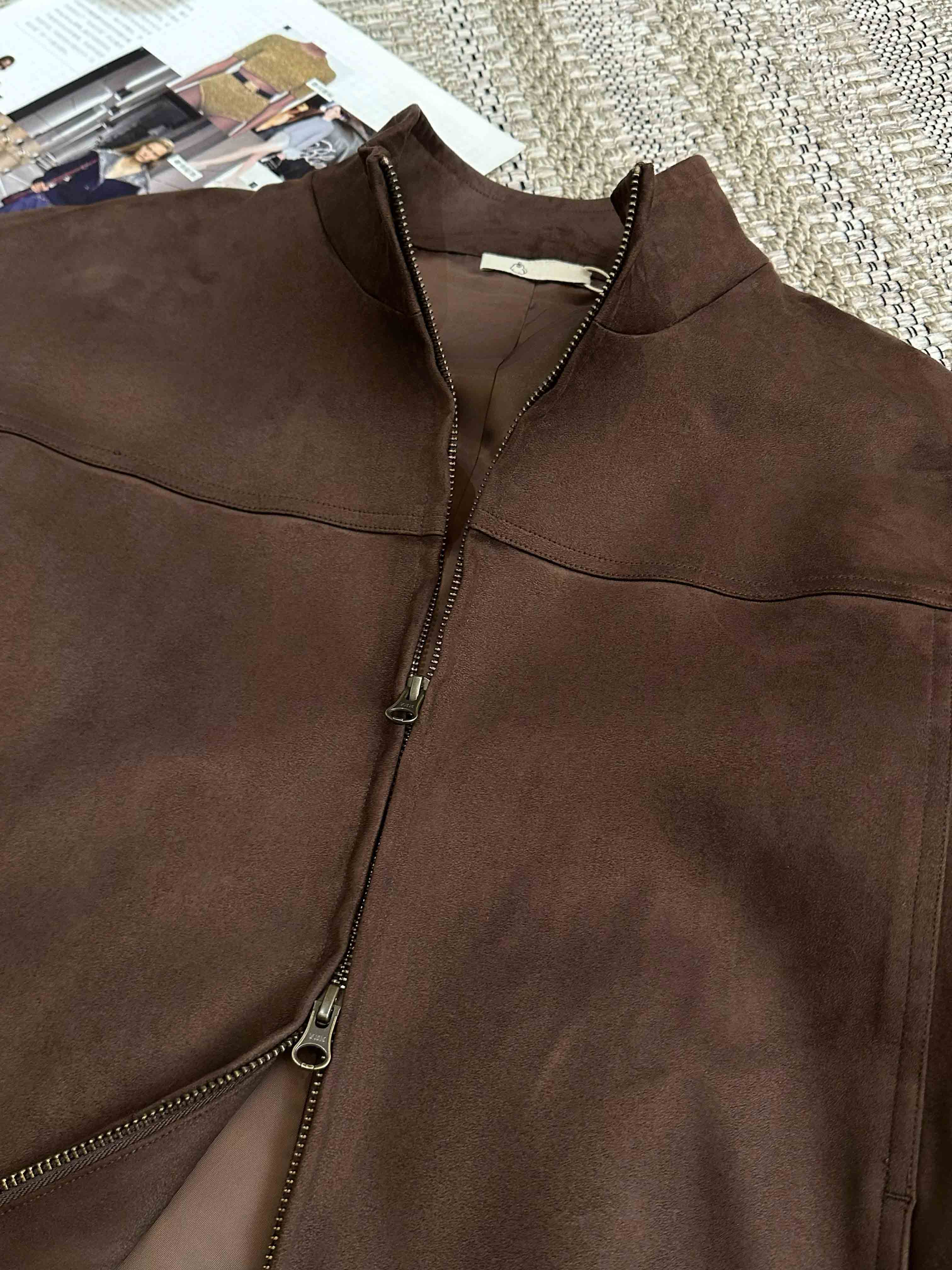 中古绒面立领夹克外套·热巧棕【Lor* piano同款】