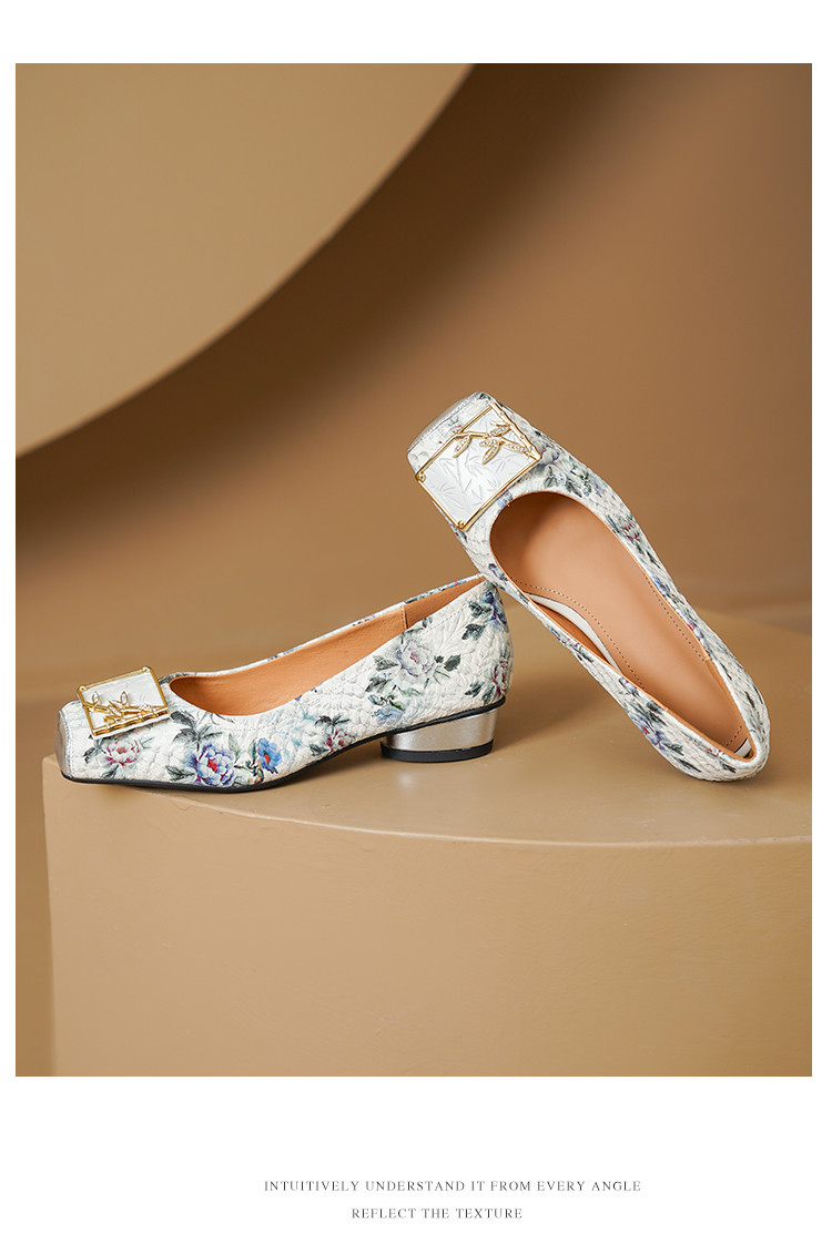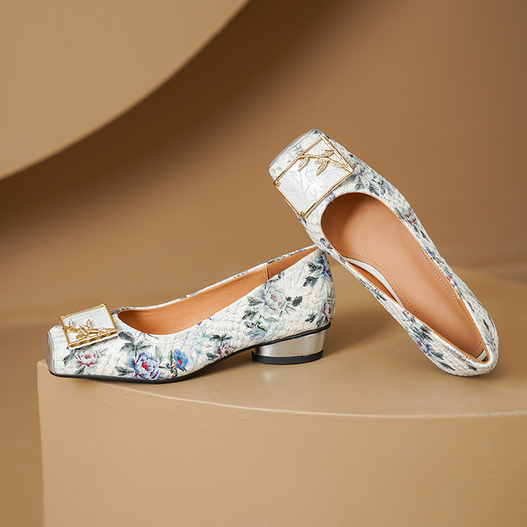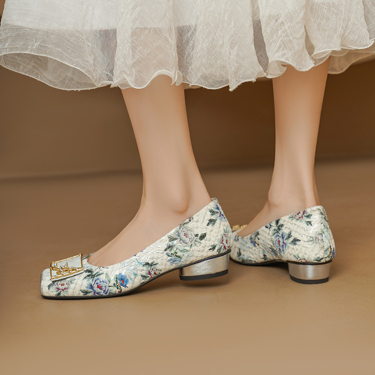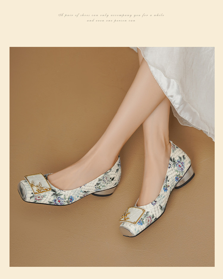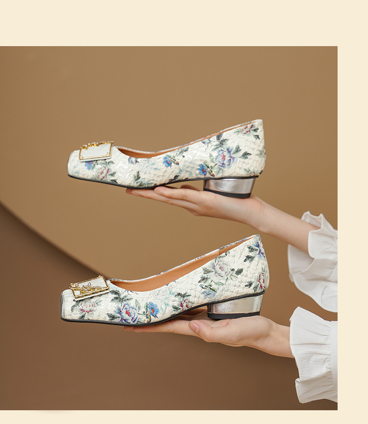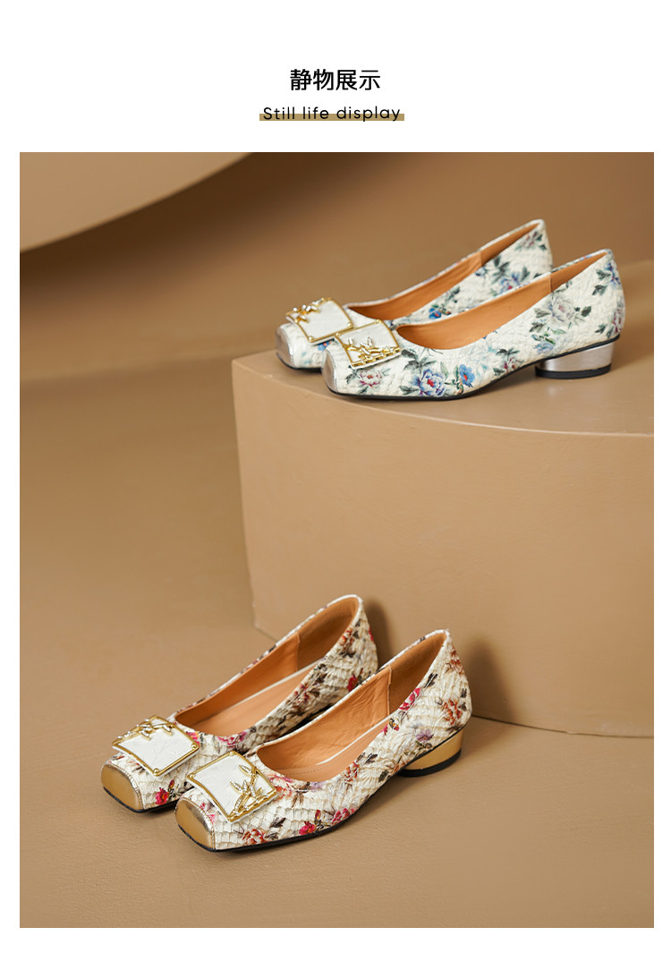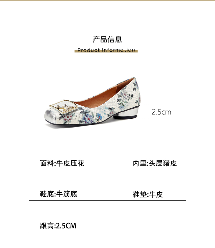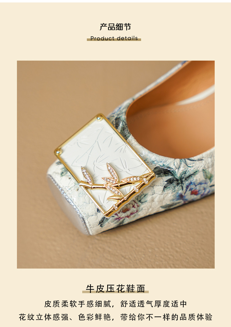 【预售5天】秋季新款中式复古民族风压花单鞋粗跟配旗袍女鞋洋气法式真皮鞋ALS&2504-1