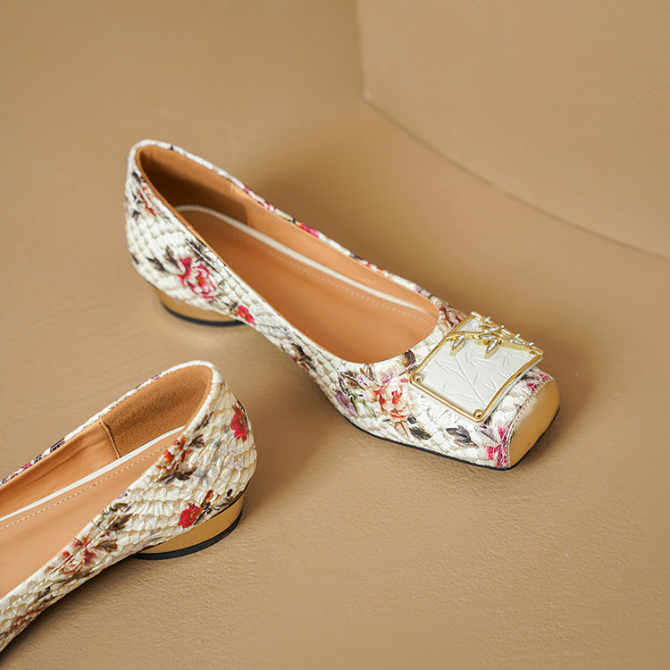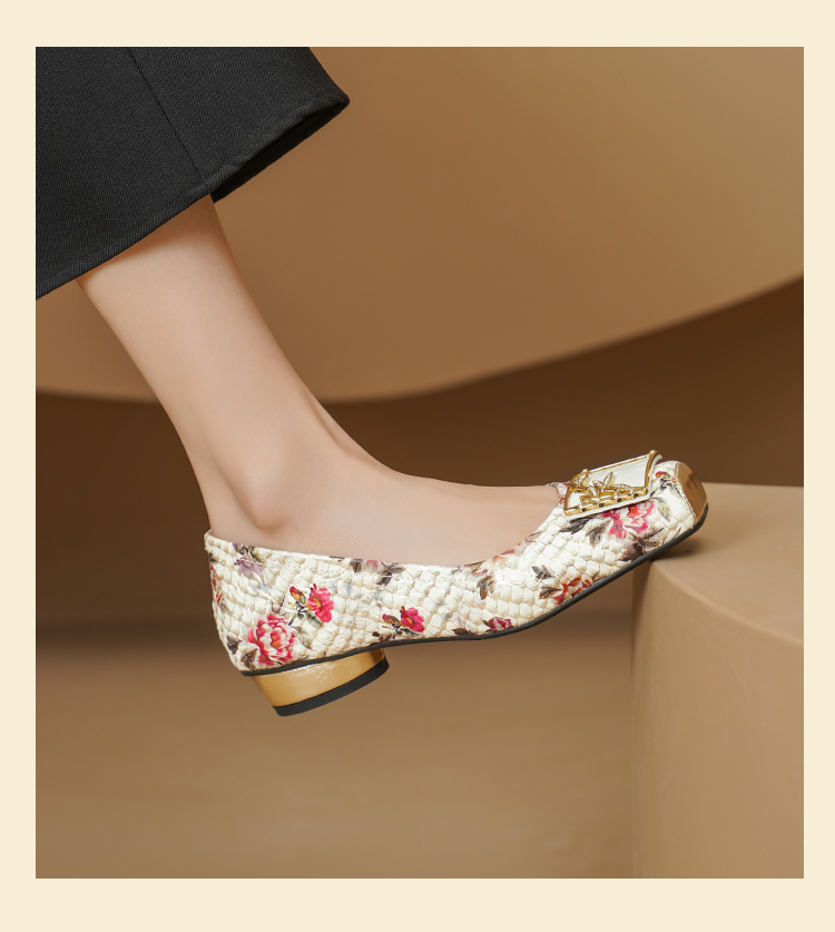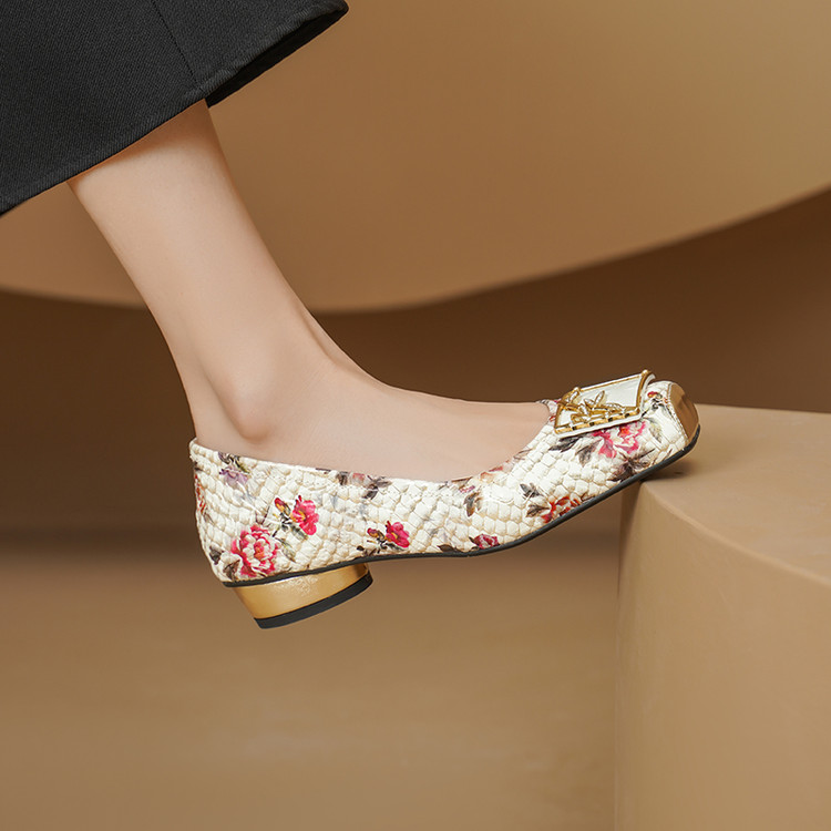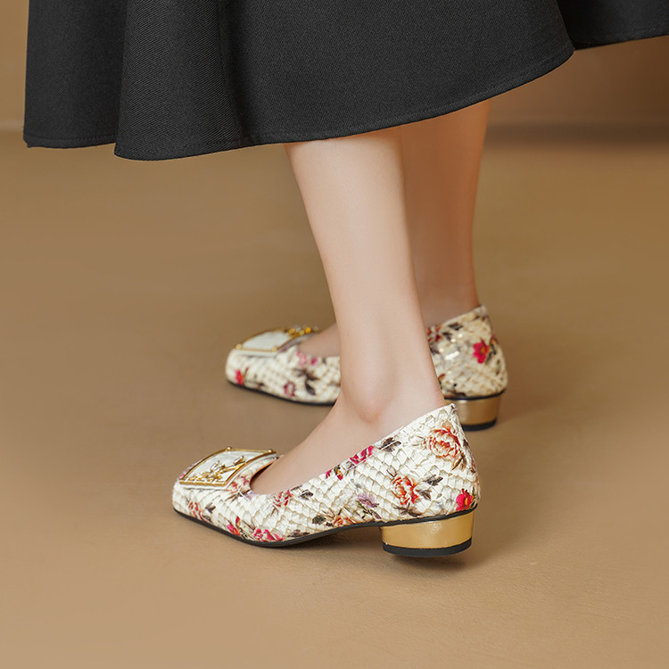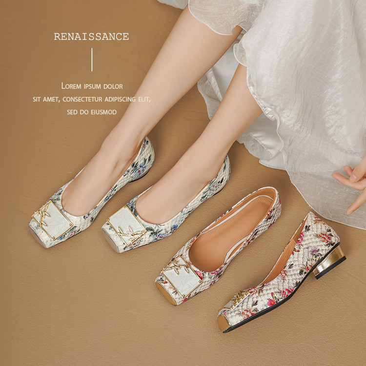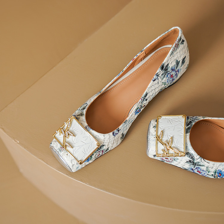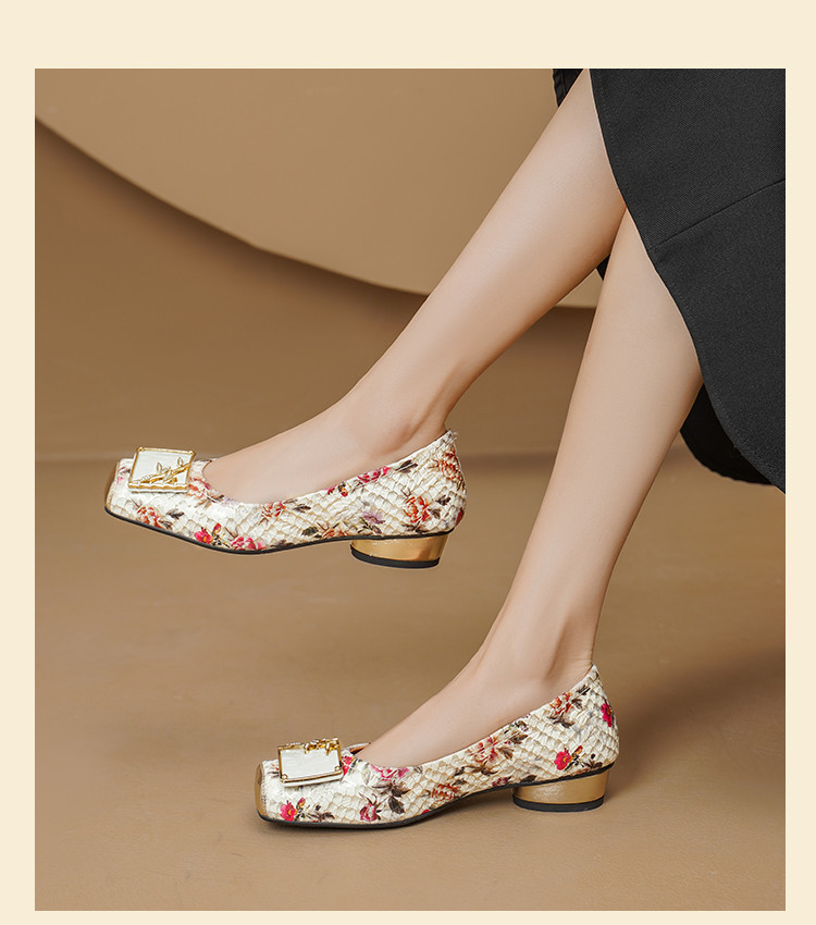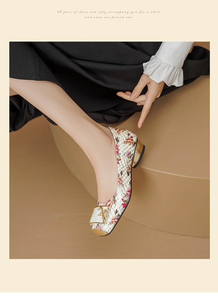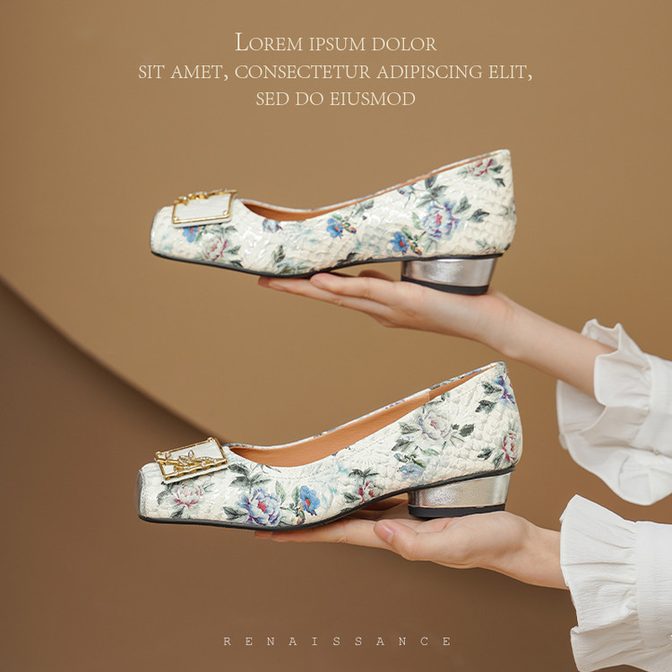 【预售5天】秋季新款中式复古民族风压花单鞋粗跟配旗袍女鞋洋气法式真皮鞋ALS&2504-1