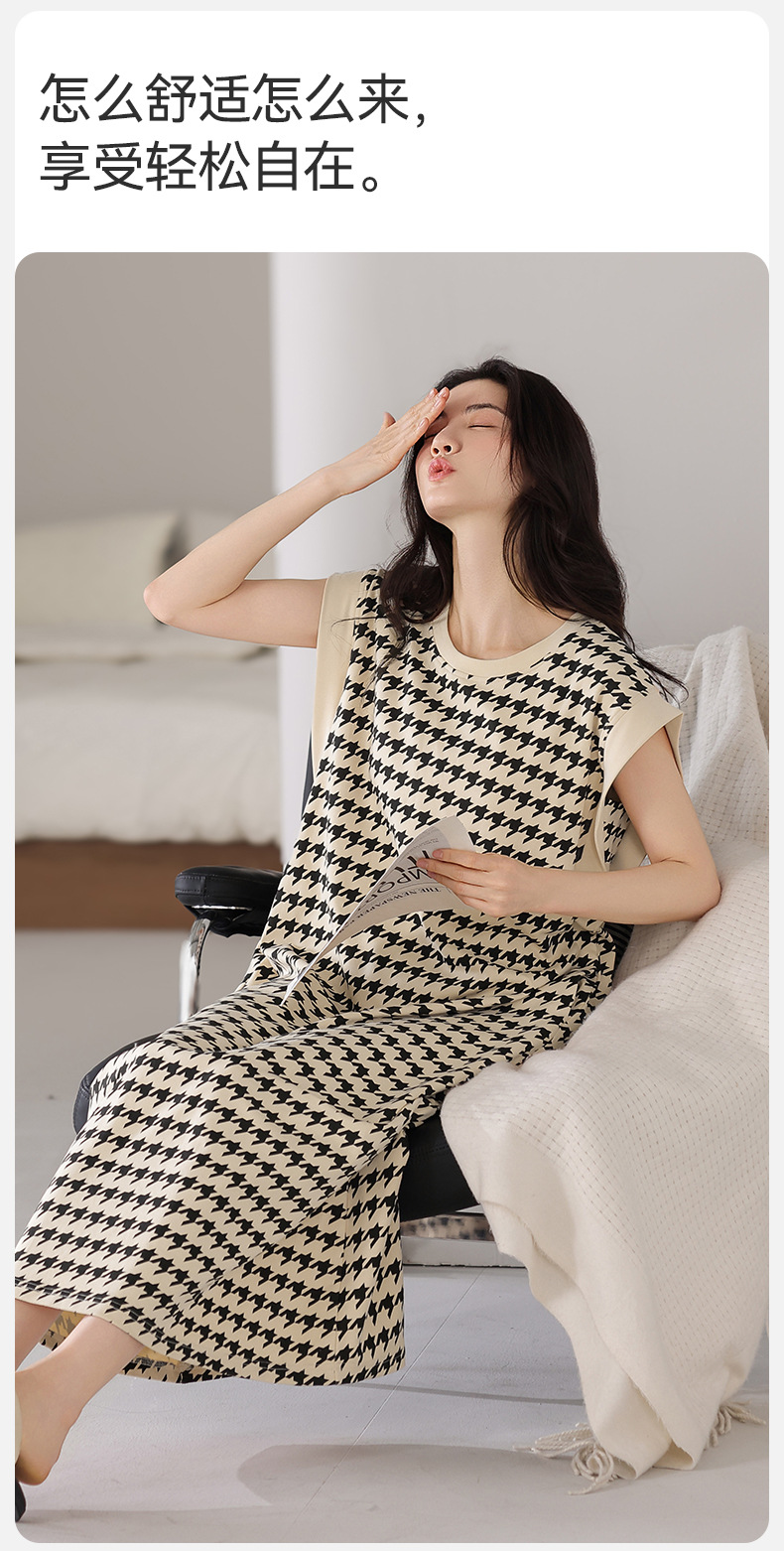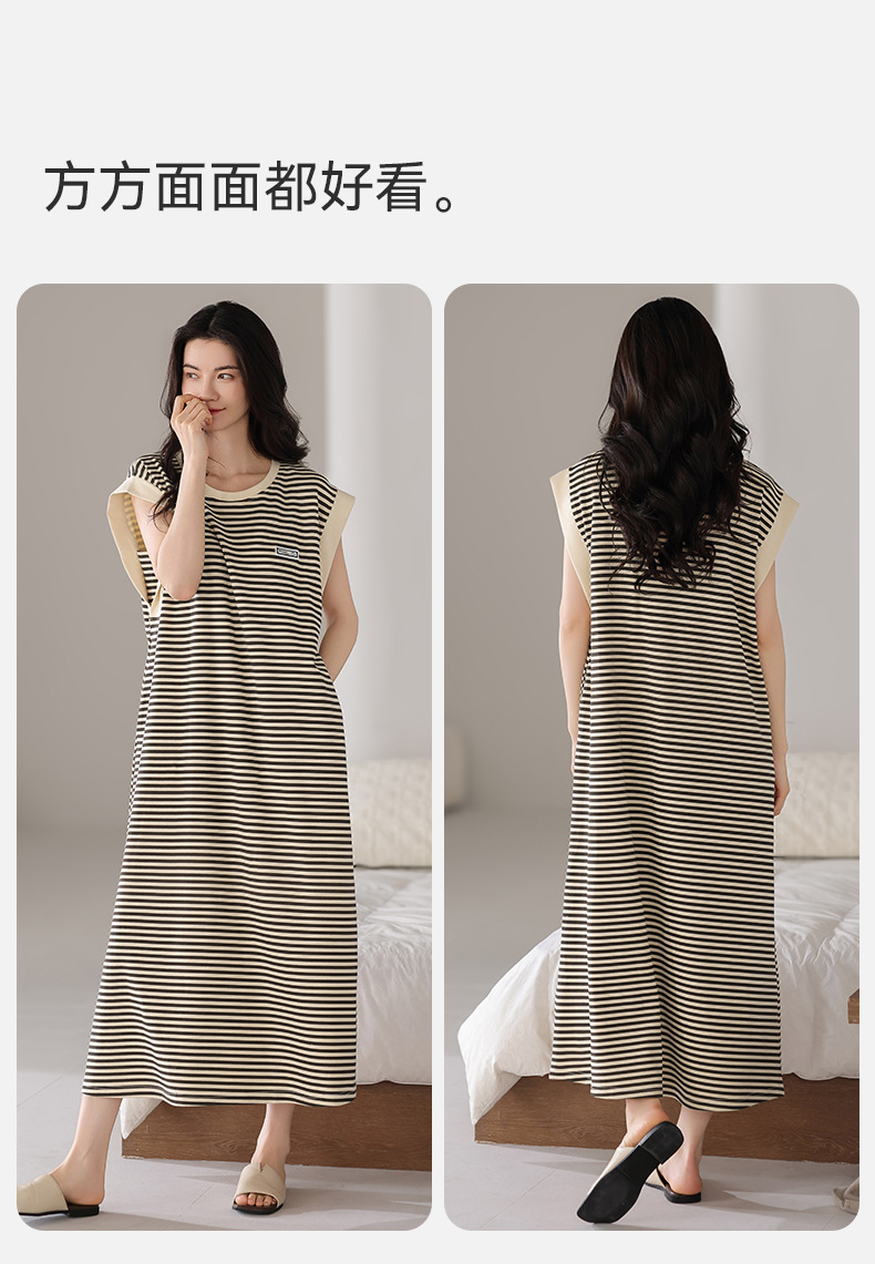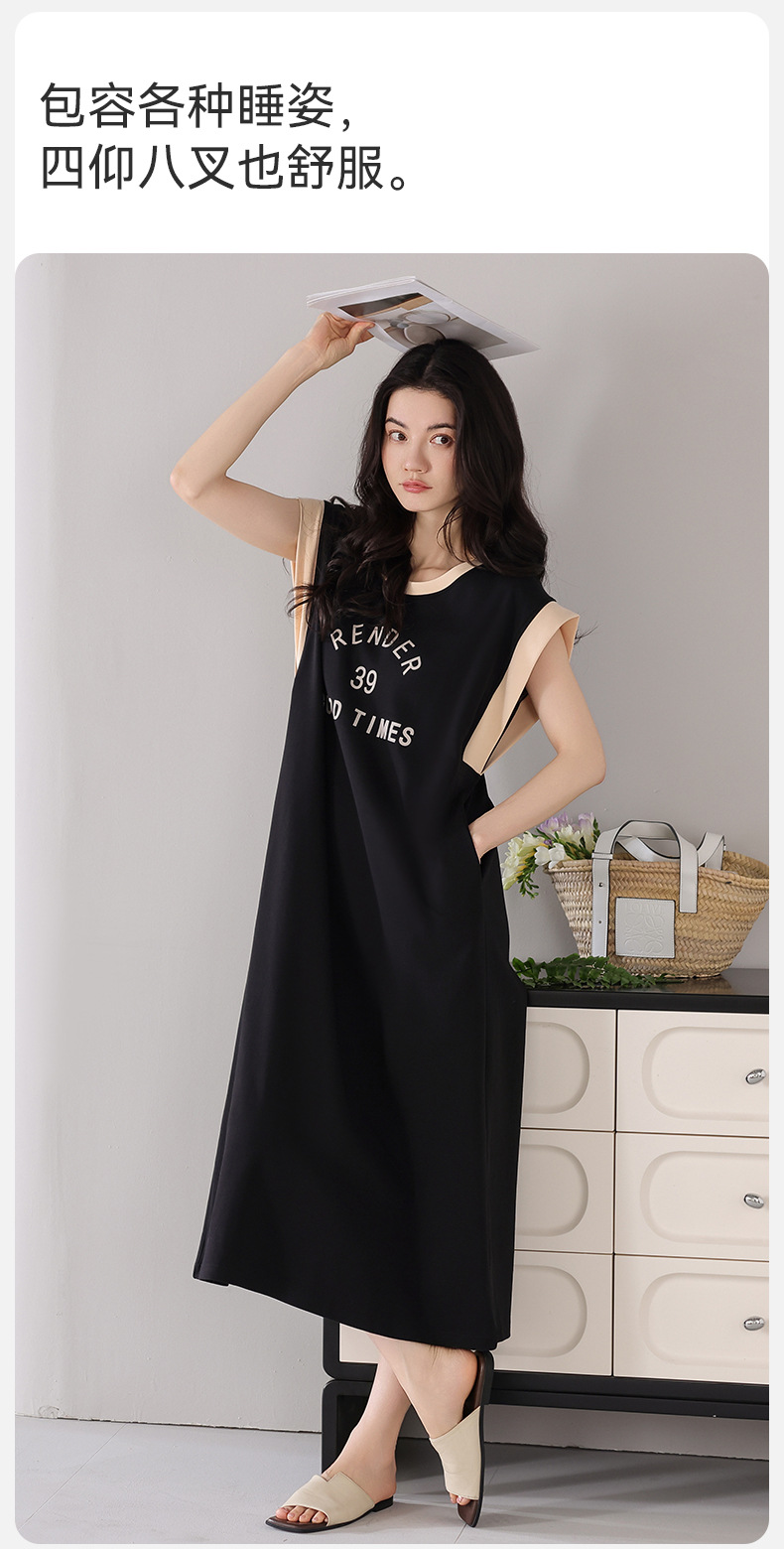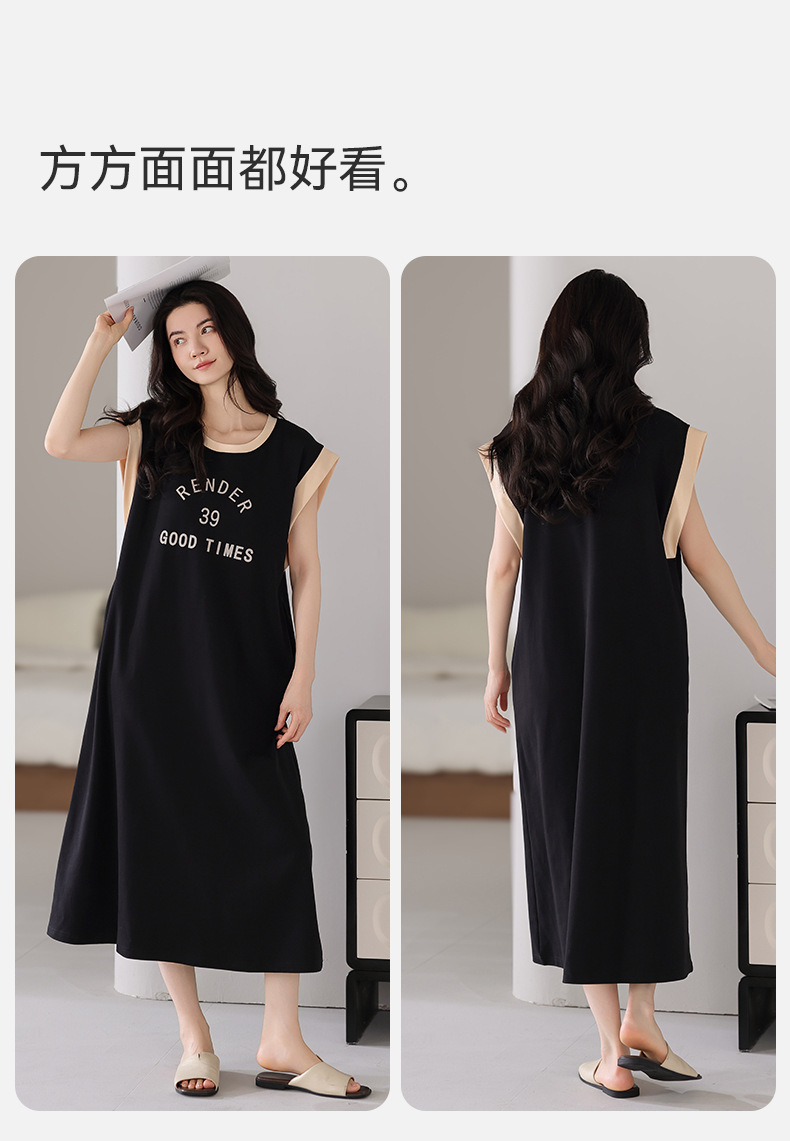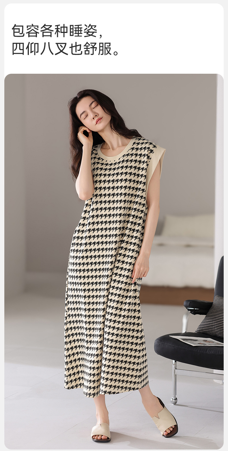 雀说带胸垫睡裙女士夏季无袖背心家居服夏款纯棉大码休闲连衣裙可外穿AL42001