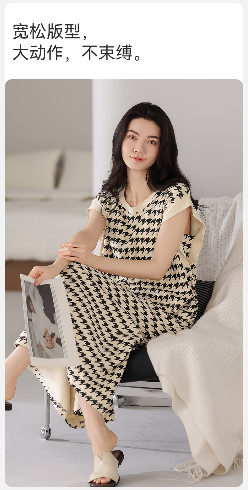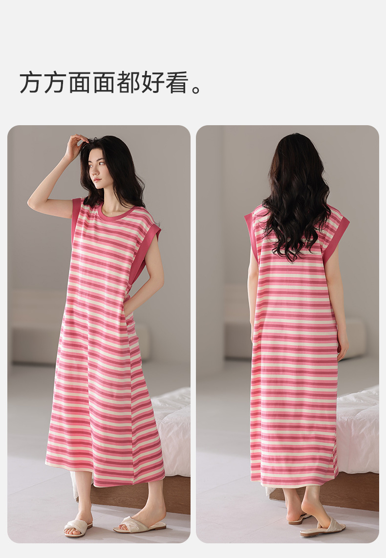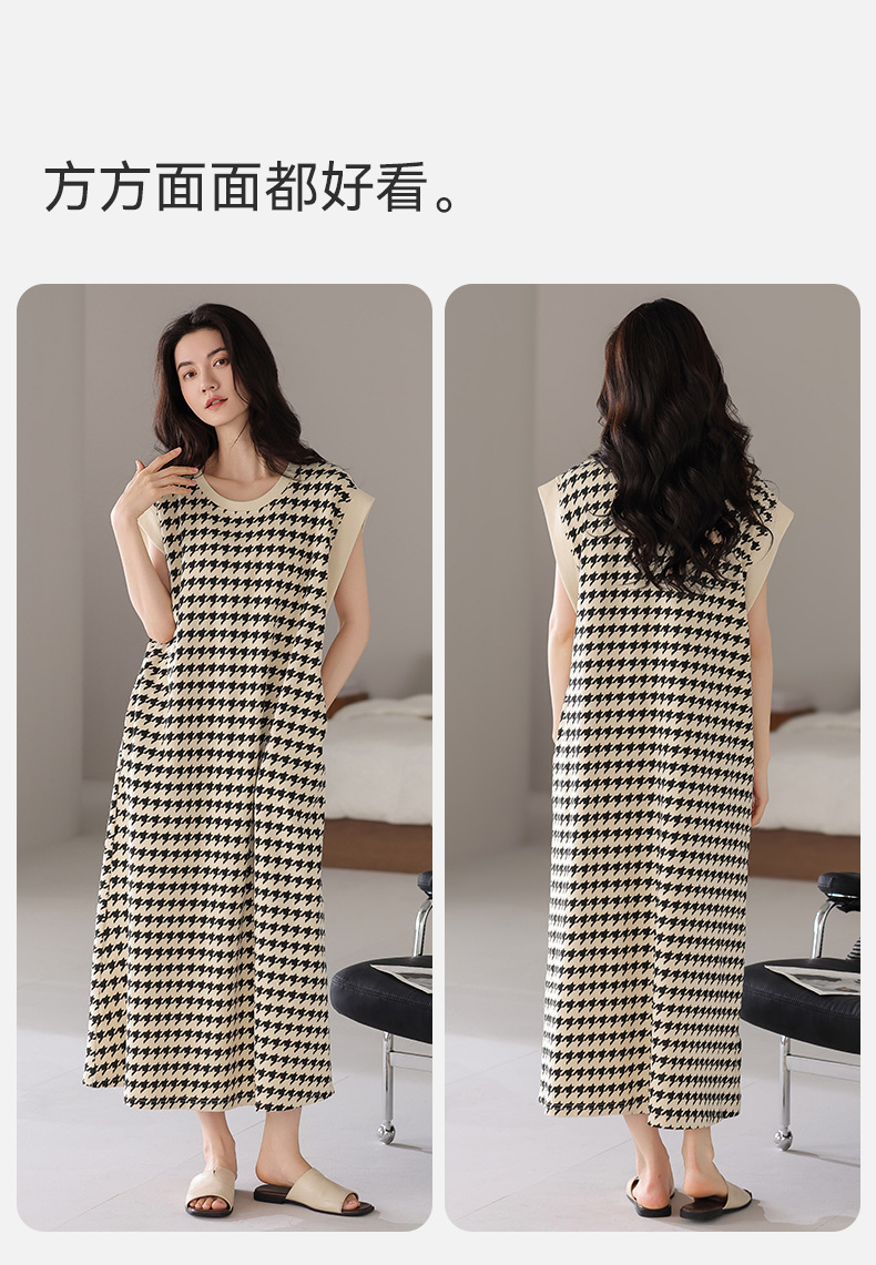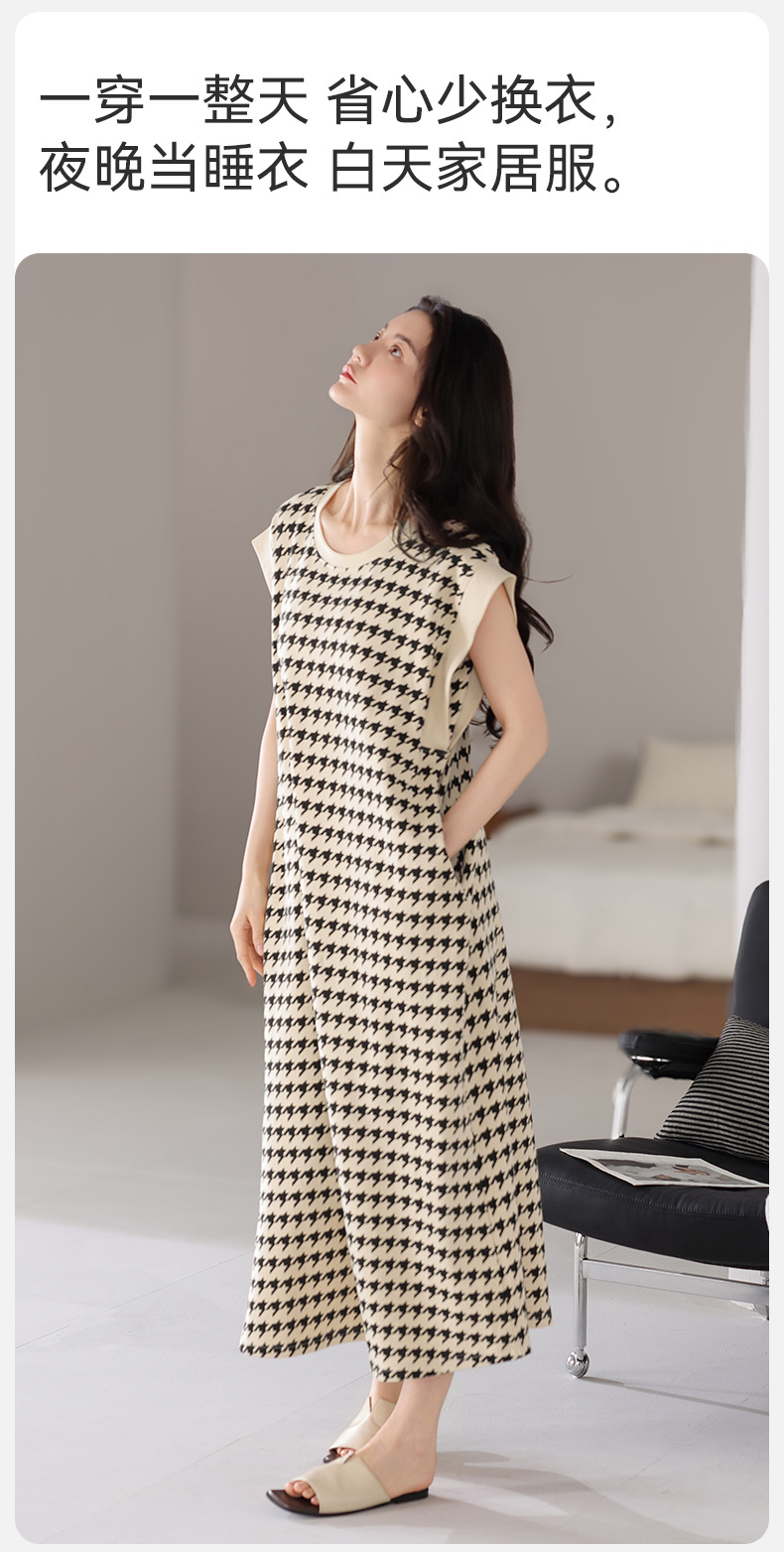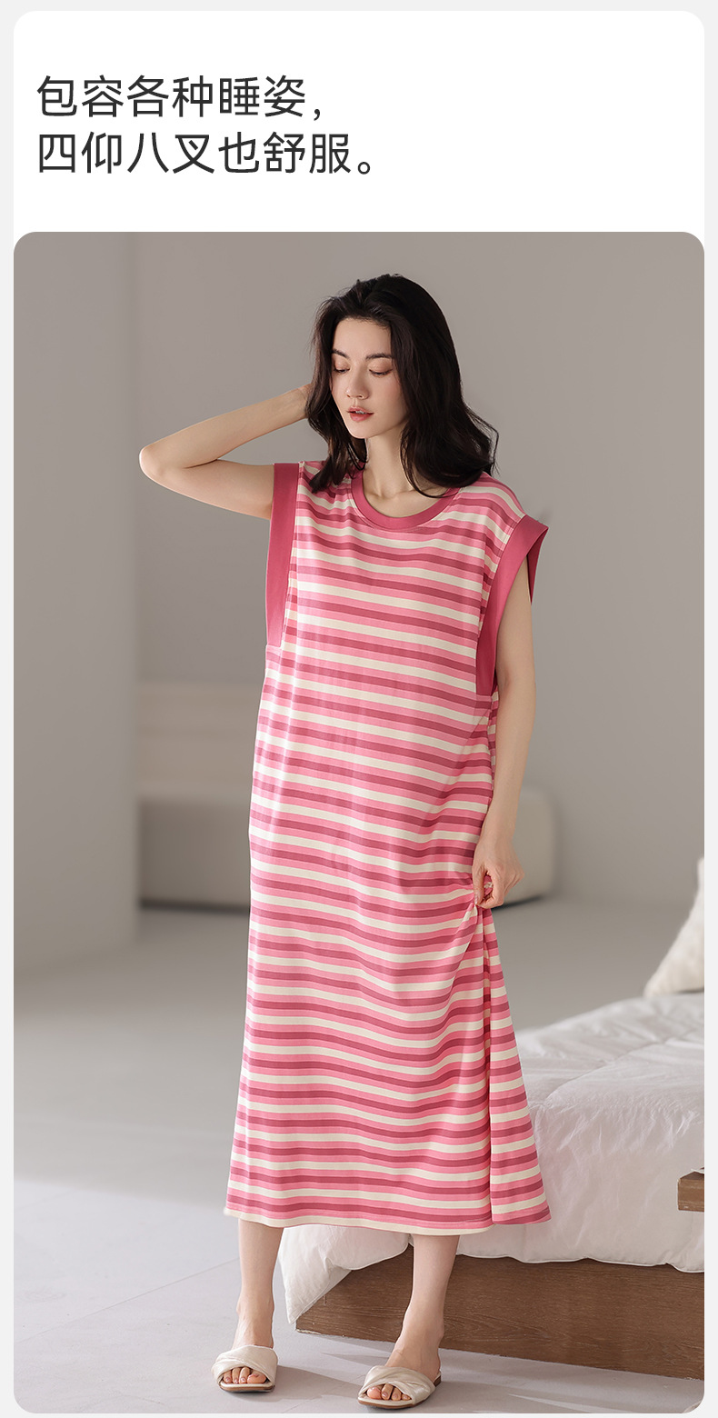 雀说带胸垫睡裙女士夏季无袖背心家居服夏款纯棉大码休闲连衣裙可外穿AL42001