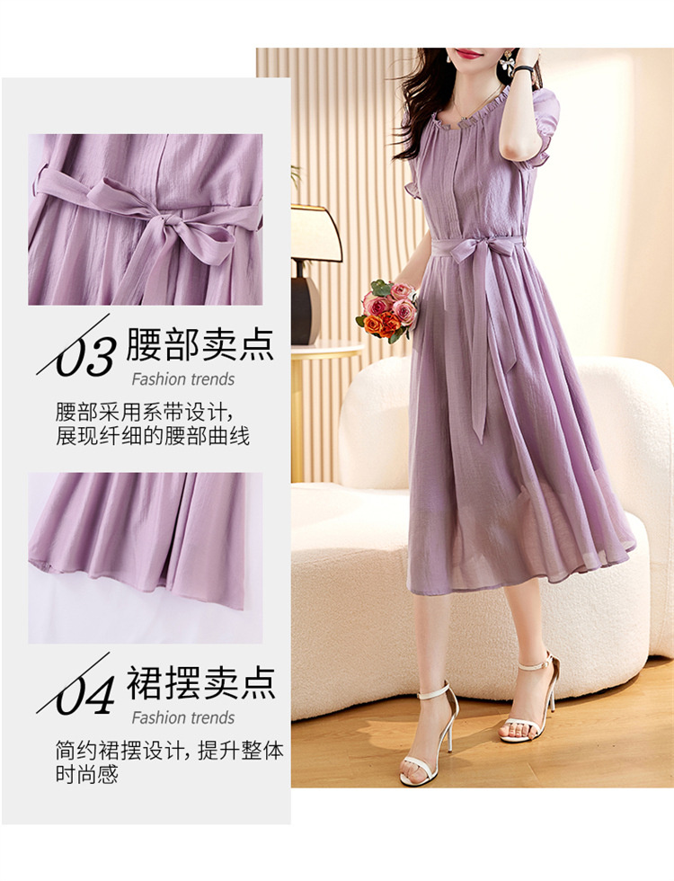 优雅透气,气质花边圆领天丝裙纯色中长款裙HR-WW23189
