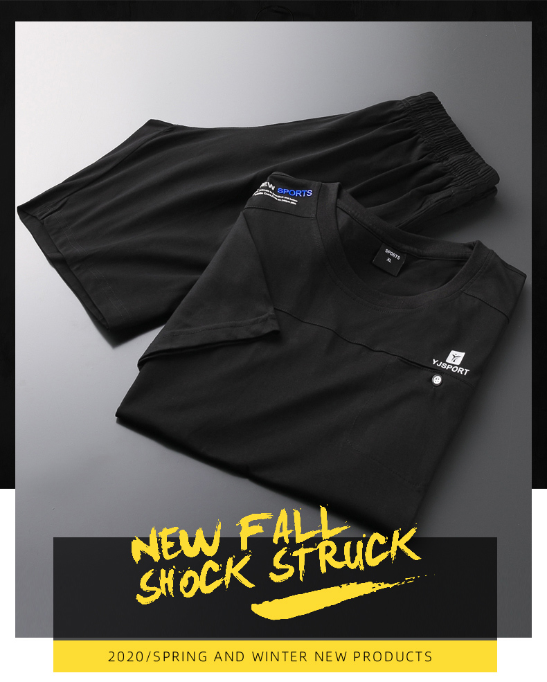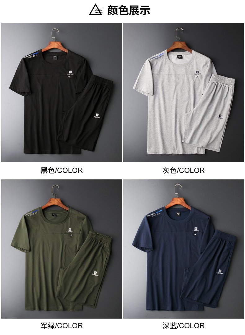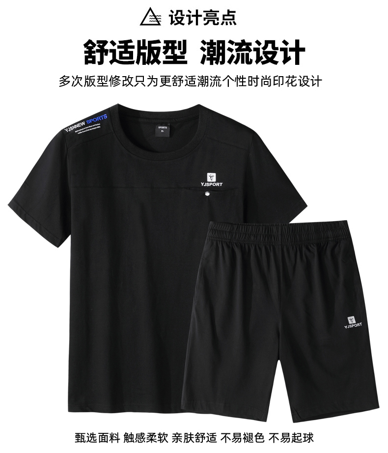 【夏季套装】【DSF】大依优型大码棉质短袖T恤短裤套装圆领时尚潮流宽松潮牌加肥加大上衣男士半袖