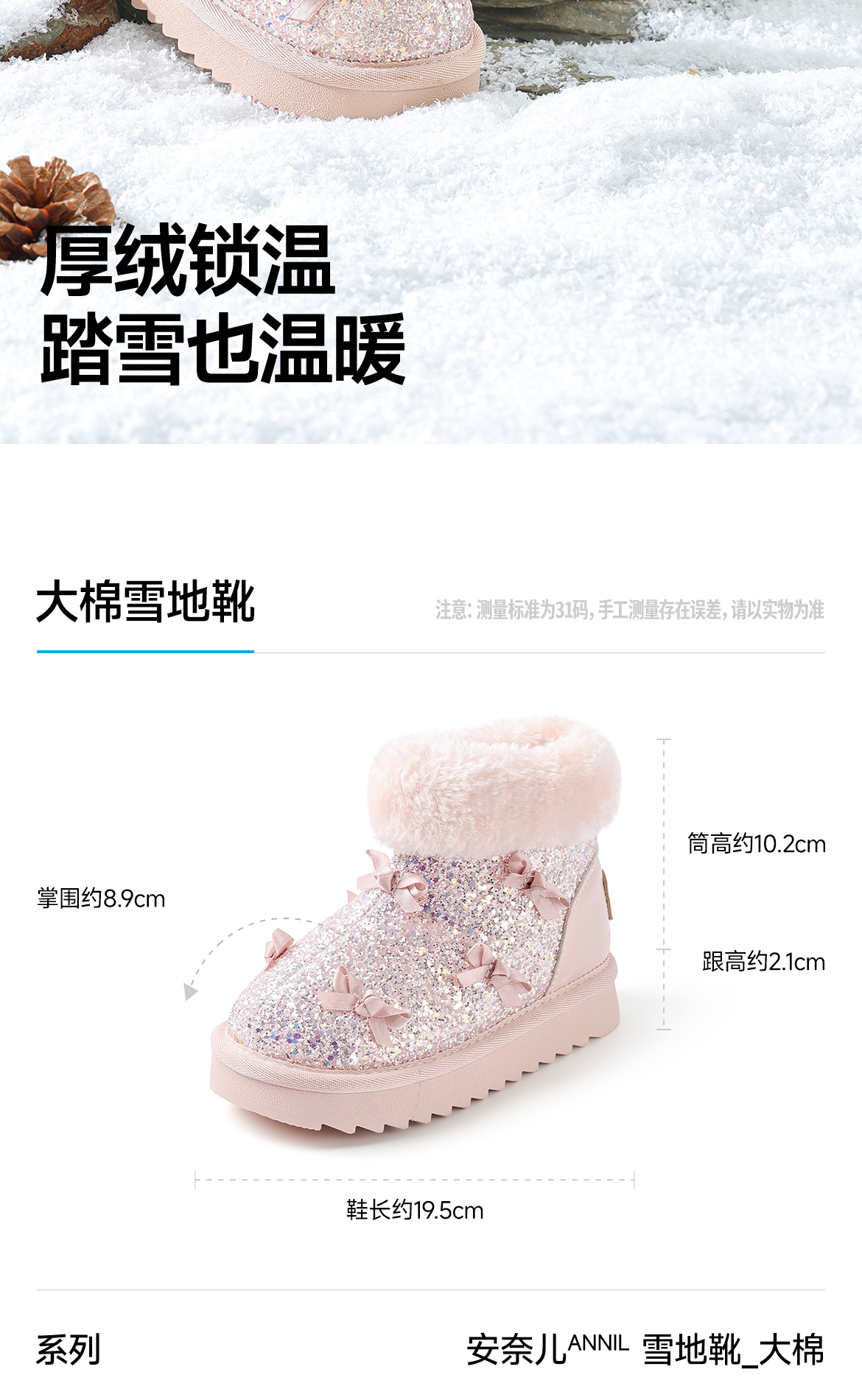 ANNIL/安奈儿童鞋女童中大童6-12岁童鞋公主冬季雪地靴棉靴HG5411694
