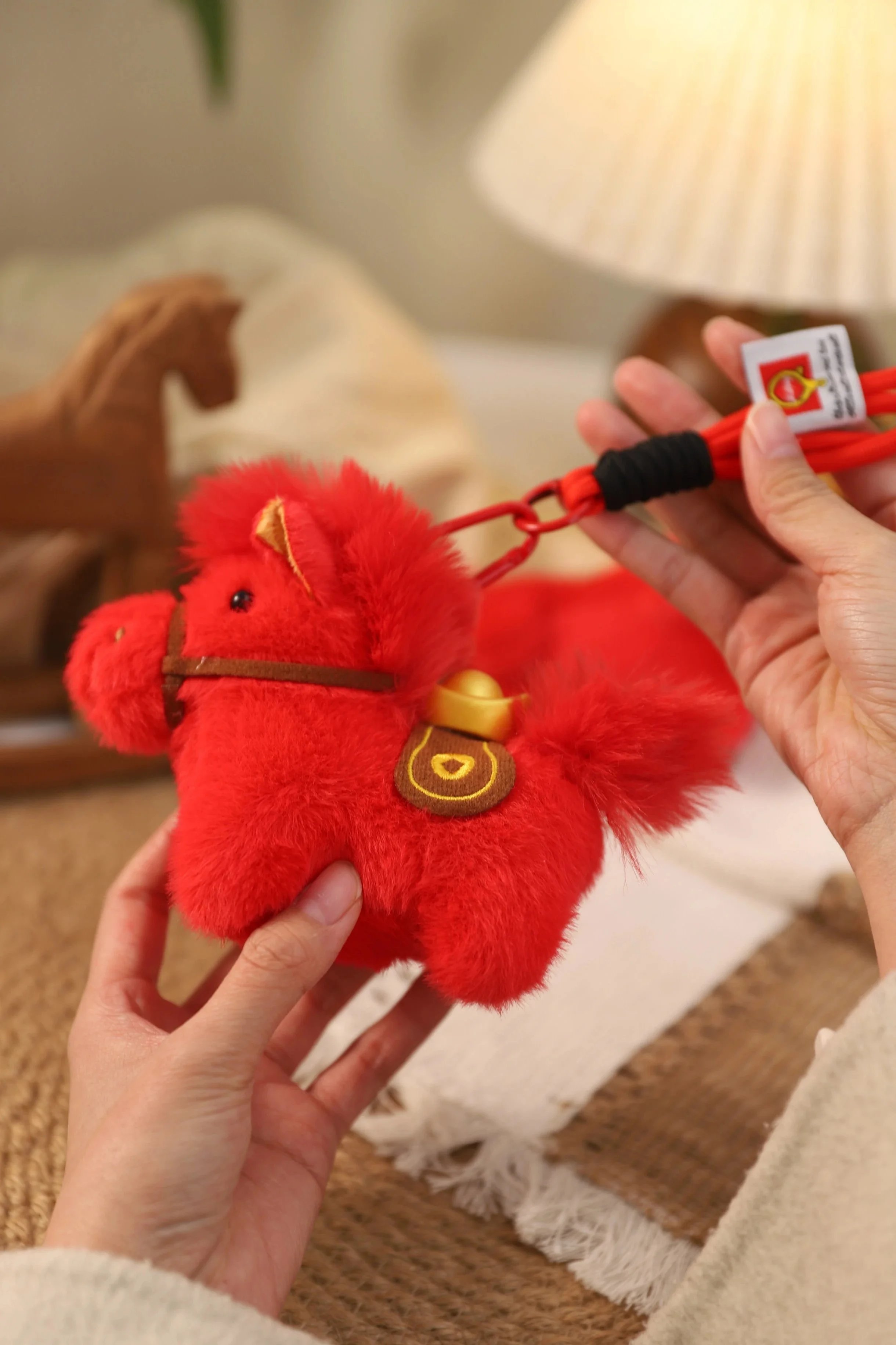 下单就送手绳或龙虾扣,九华山元宝小马挂件 马背带金元宝 马鞍铜钱刺绣 精梳短绒面料 做工精湛 手感细腻柔软 不易掉毛、不变形 造型超萌基地直邮