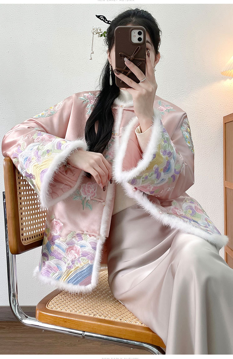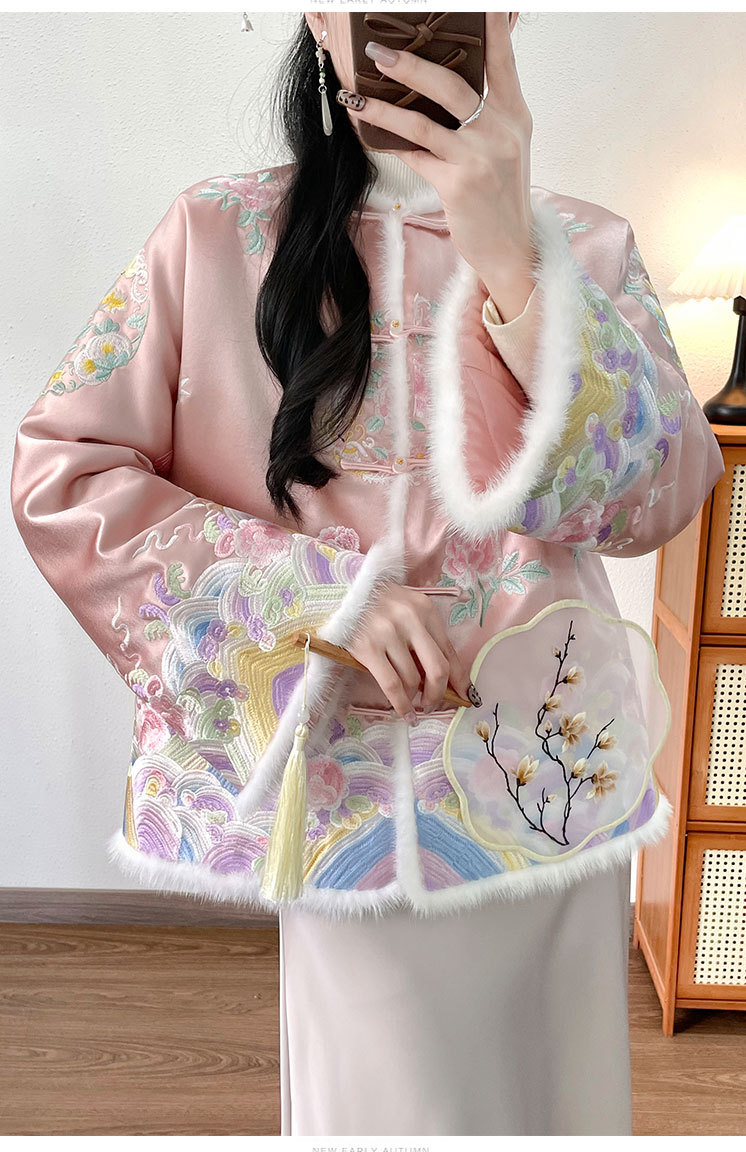OG 6282新中式刺绣国风棉服醋酸水貂毛拼接棉衣盘扣外套 商品图1