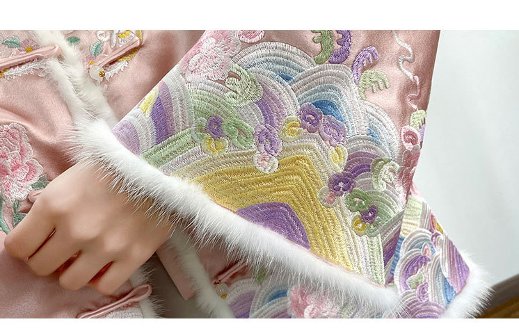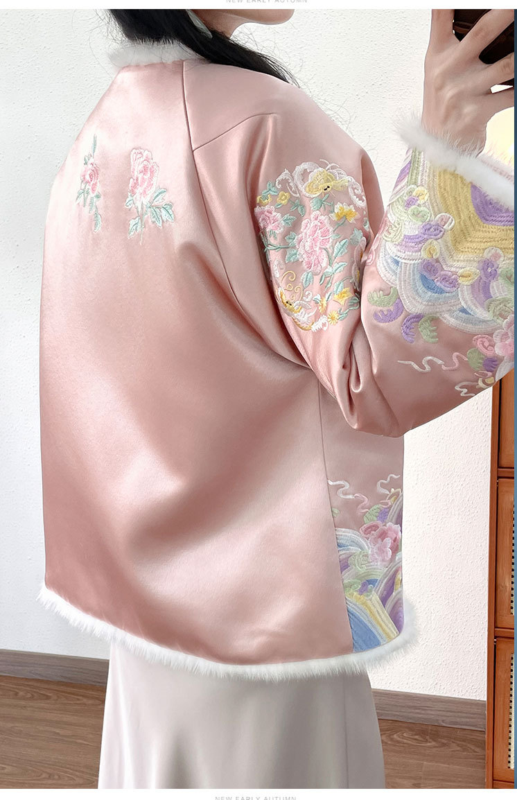OG 6282新中式刺绣国风棉服醋酸水貂毛拼接棉衣盘扣外套 商品图4