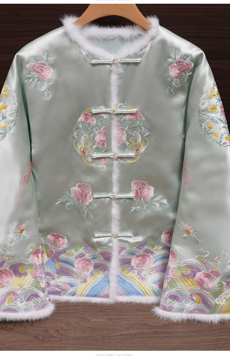 OG 6282新中式刺绣国风棉服醋酸水貂毛拼接棉衣盘扣外套 商品图0