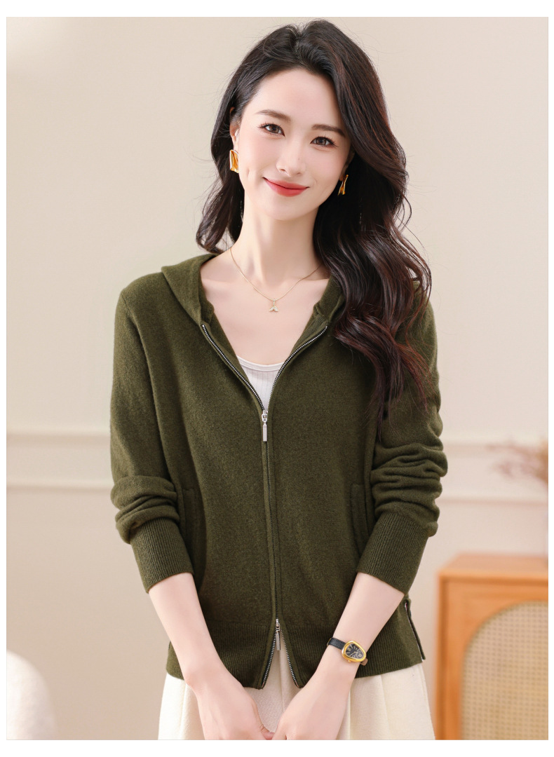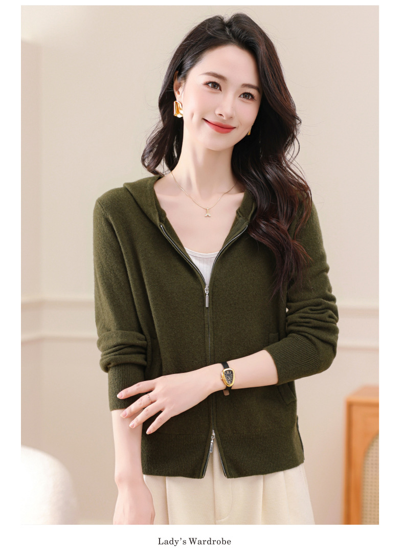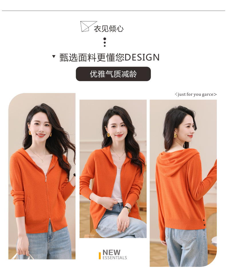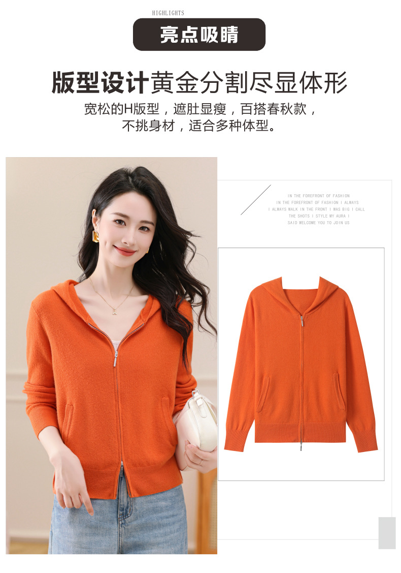 OSL 8518QY拉链帽子衫羊毛修身针织衫毛衣