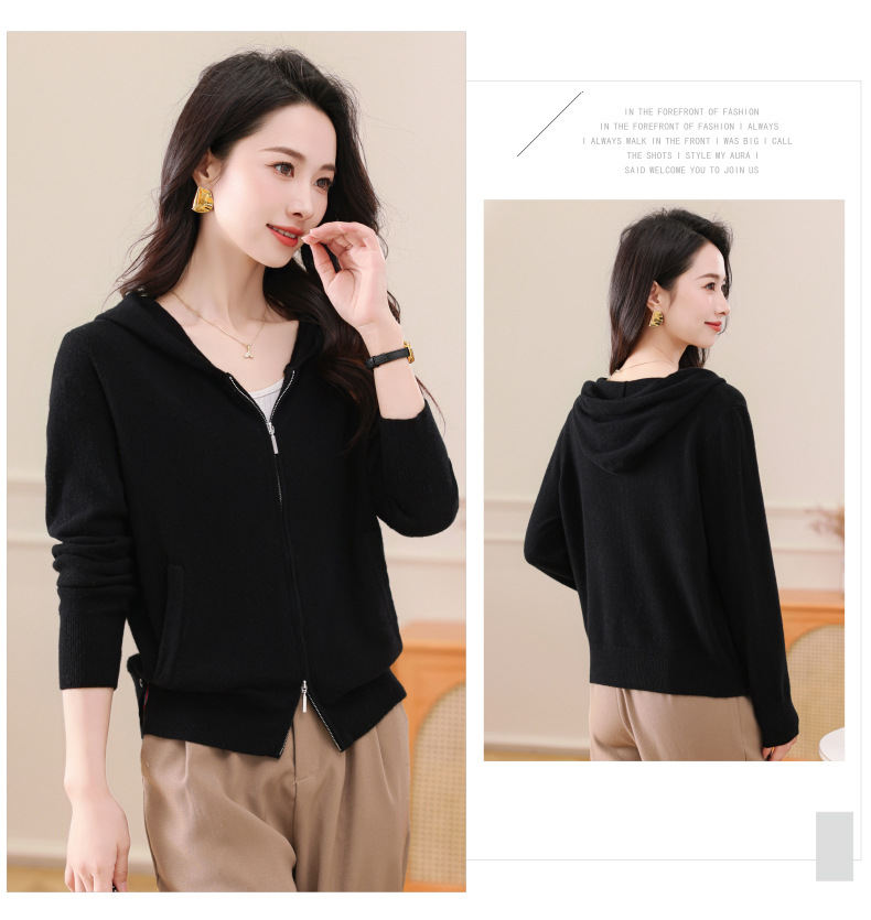 OSL 8518QY拉链帽子衫羊毛修身针织衫毛衣 商品图4