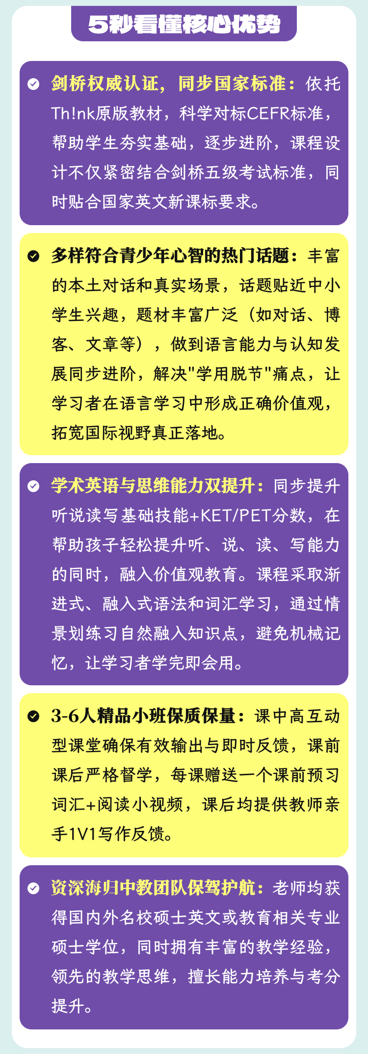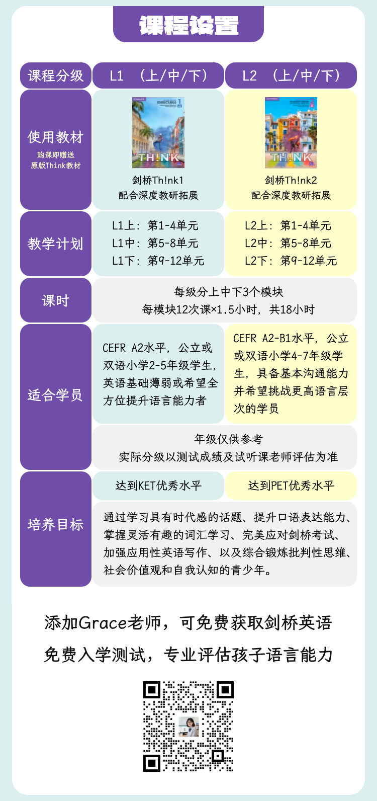 2026年 春季班 小学生剑桥Think英文语言能力课(衔接KET/PET)