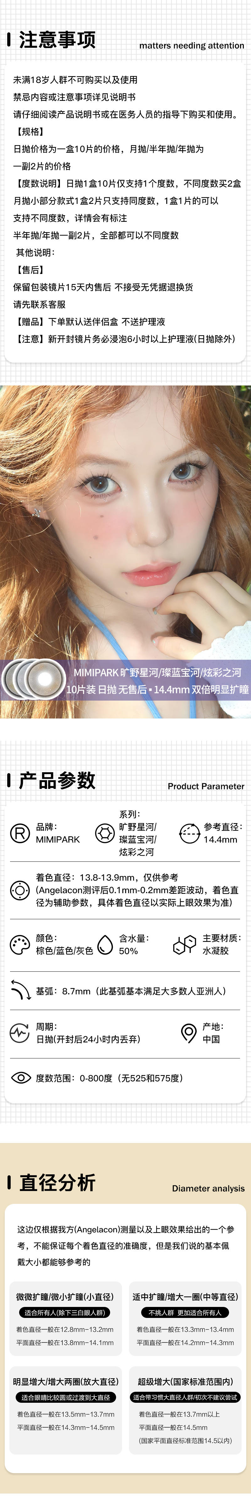 MIMIPARK / 美瞳日抛 / 旷野星河/璨蓝宝河/炫彩之河 / 10片入 / 14.4mm / 双倍明显扩瞳