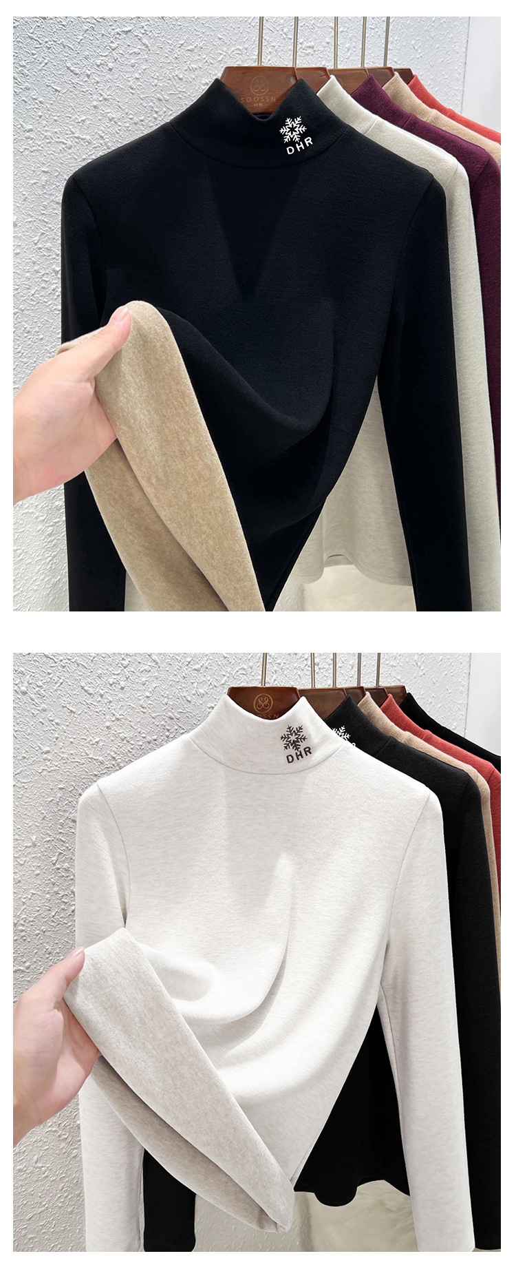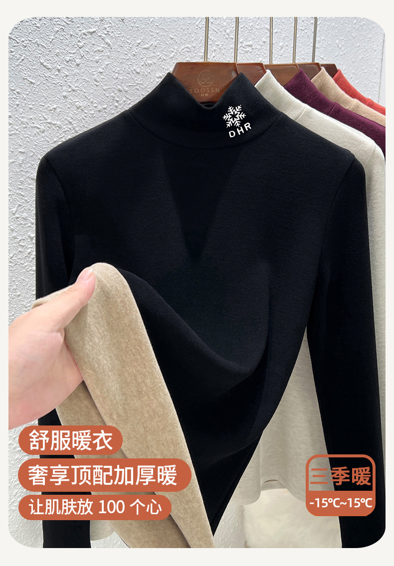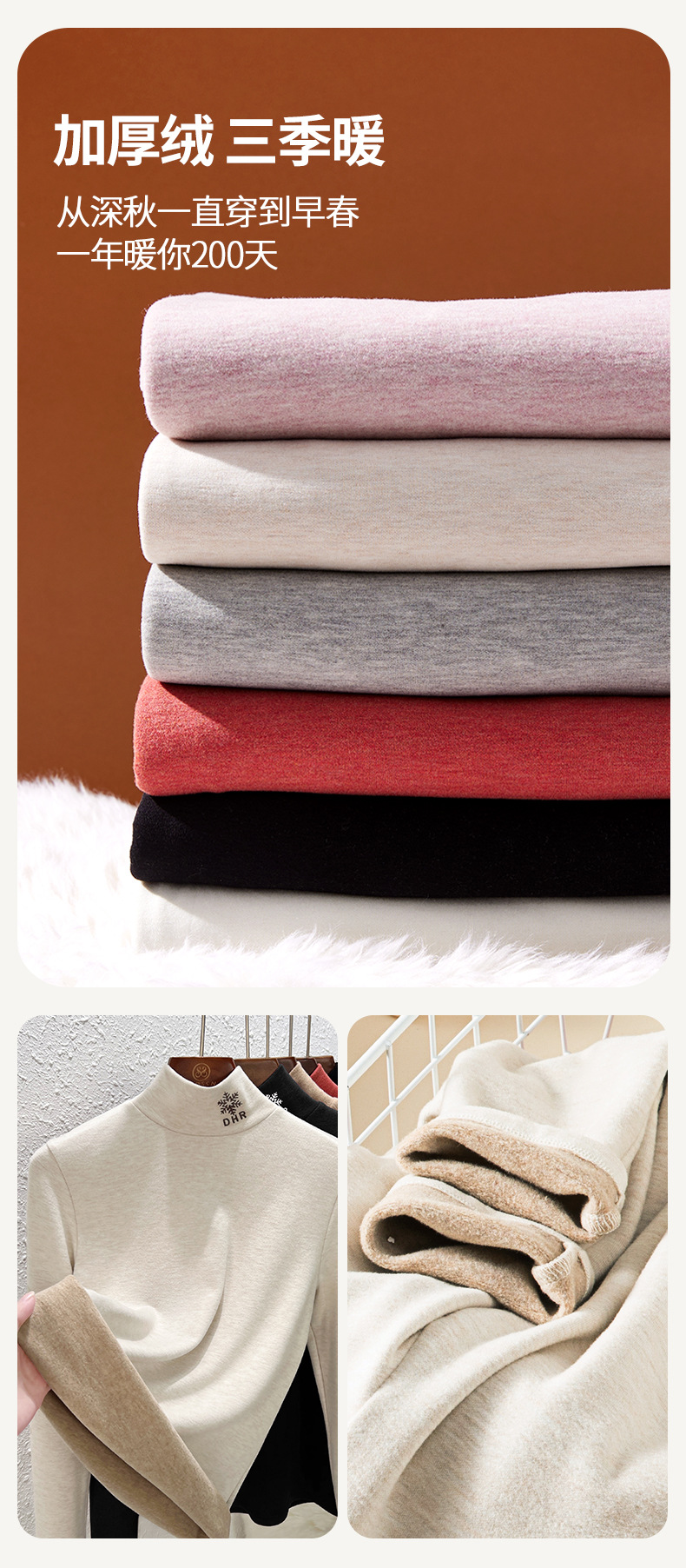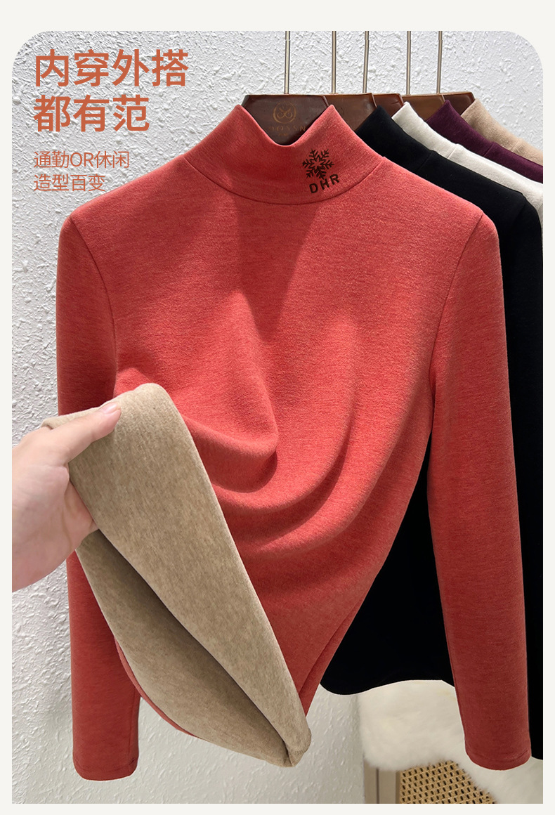 「自j」全新升级【铂金会员128/天猫169/差价41】(54132)洛诗琳羊毛蚕丝打底衫2025秋冬中高领绣花加绒保暖上衣女