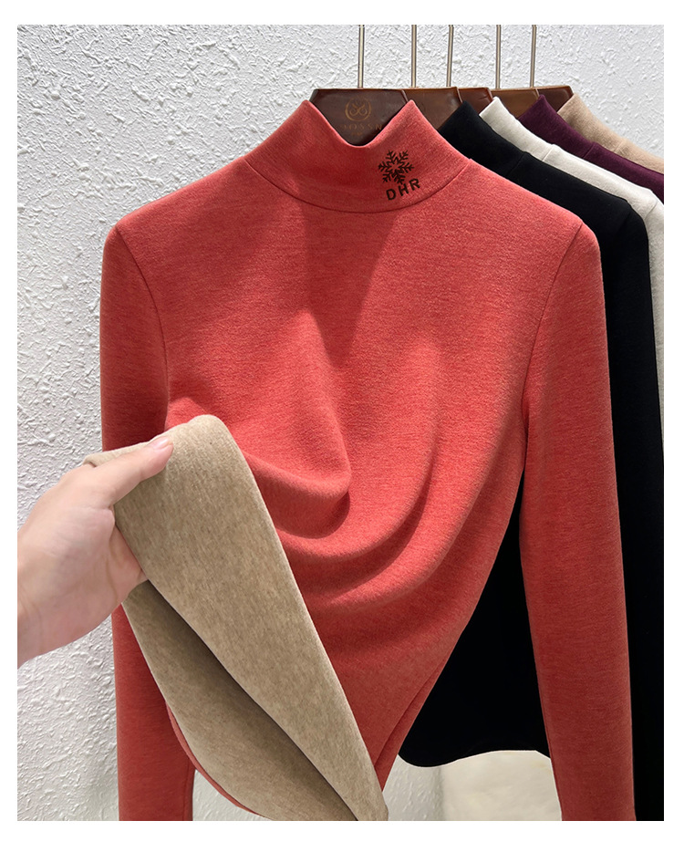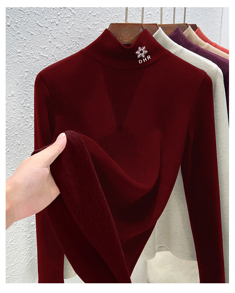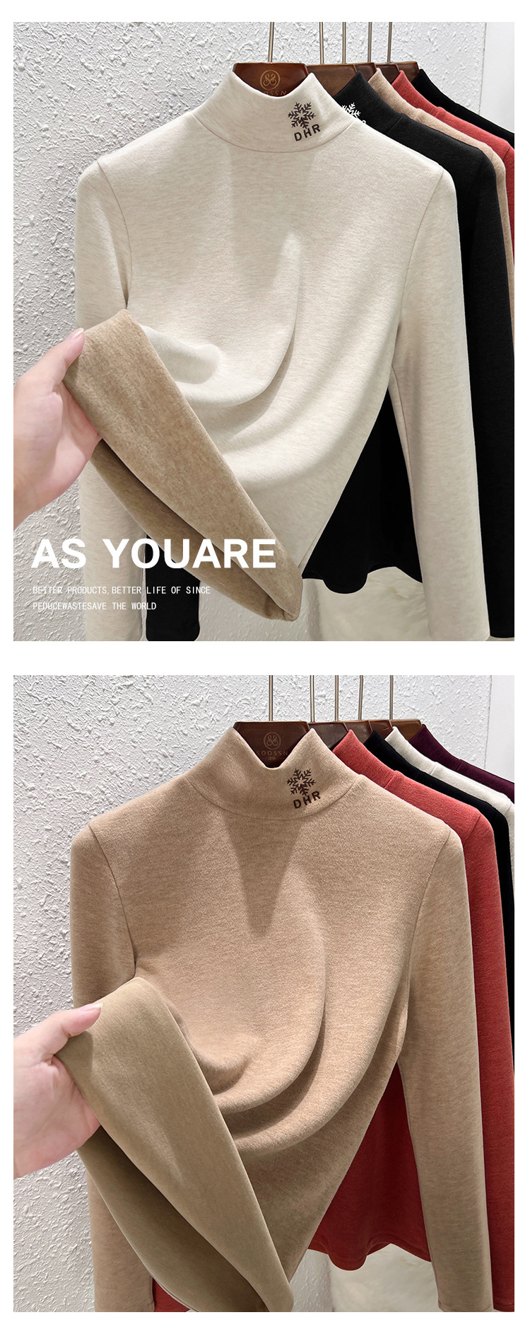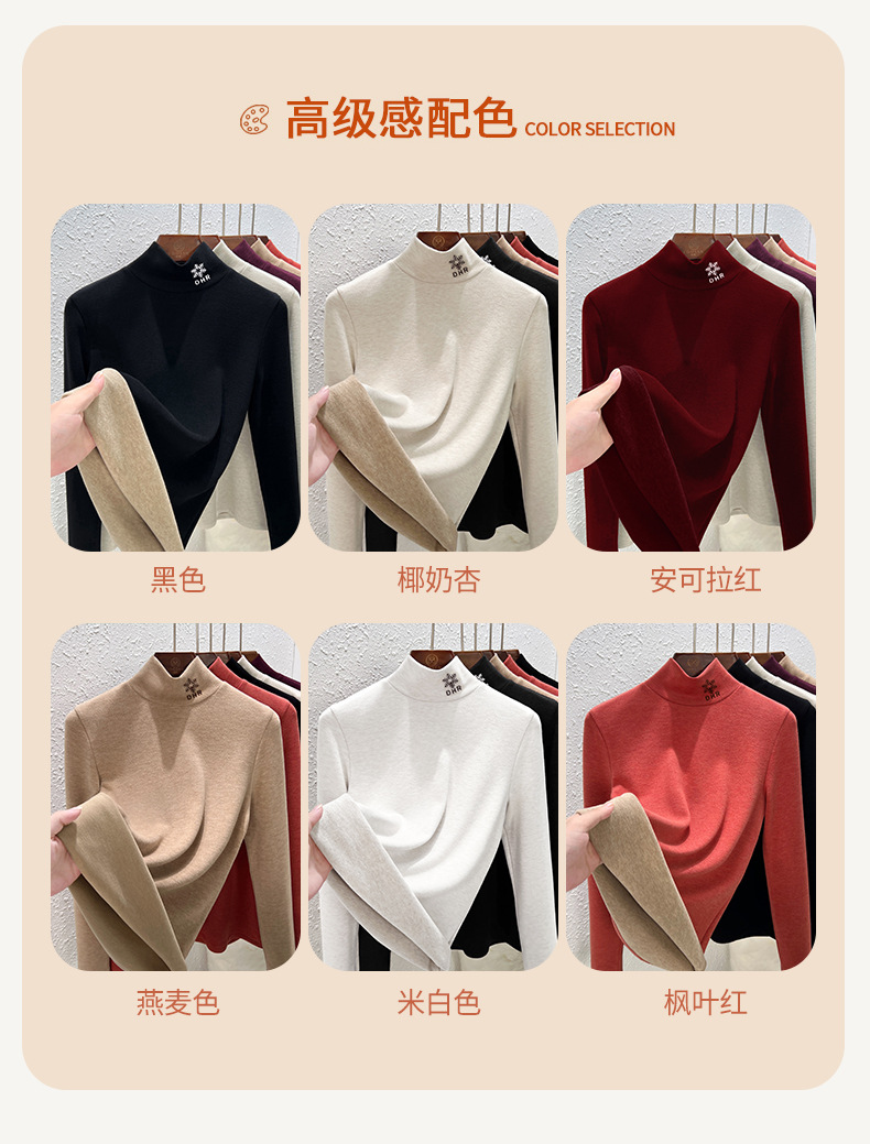 「自j」全新升级【铂金会员128/天猫169/差价41】(54132)洛诗琳羊毛蚕丝打底衫2025秋冬中高领绣花加绒保暖上衣女