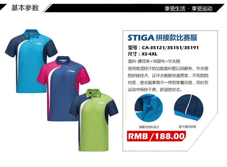 STIG斯帝卡CA351系列乒乓T恤 拼接比赛服运动服装