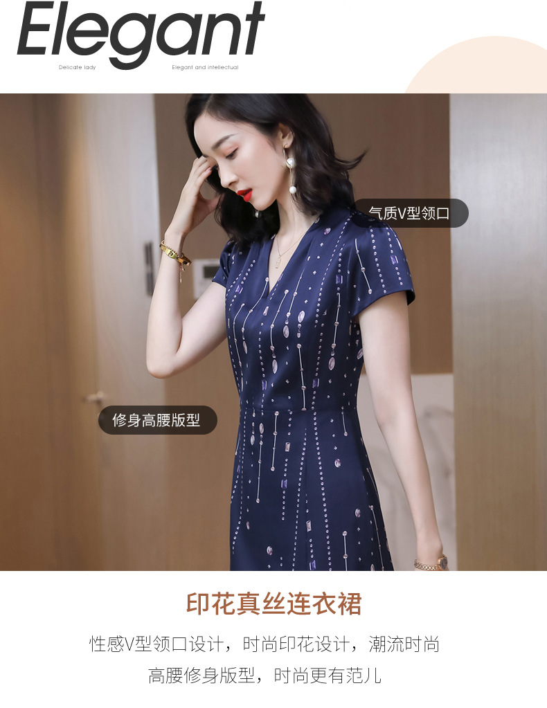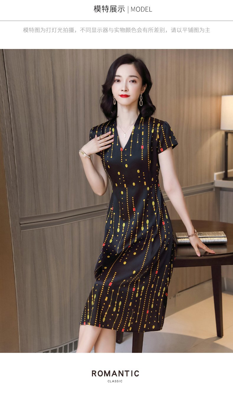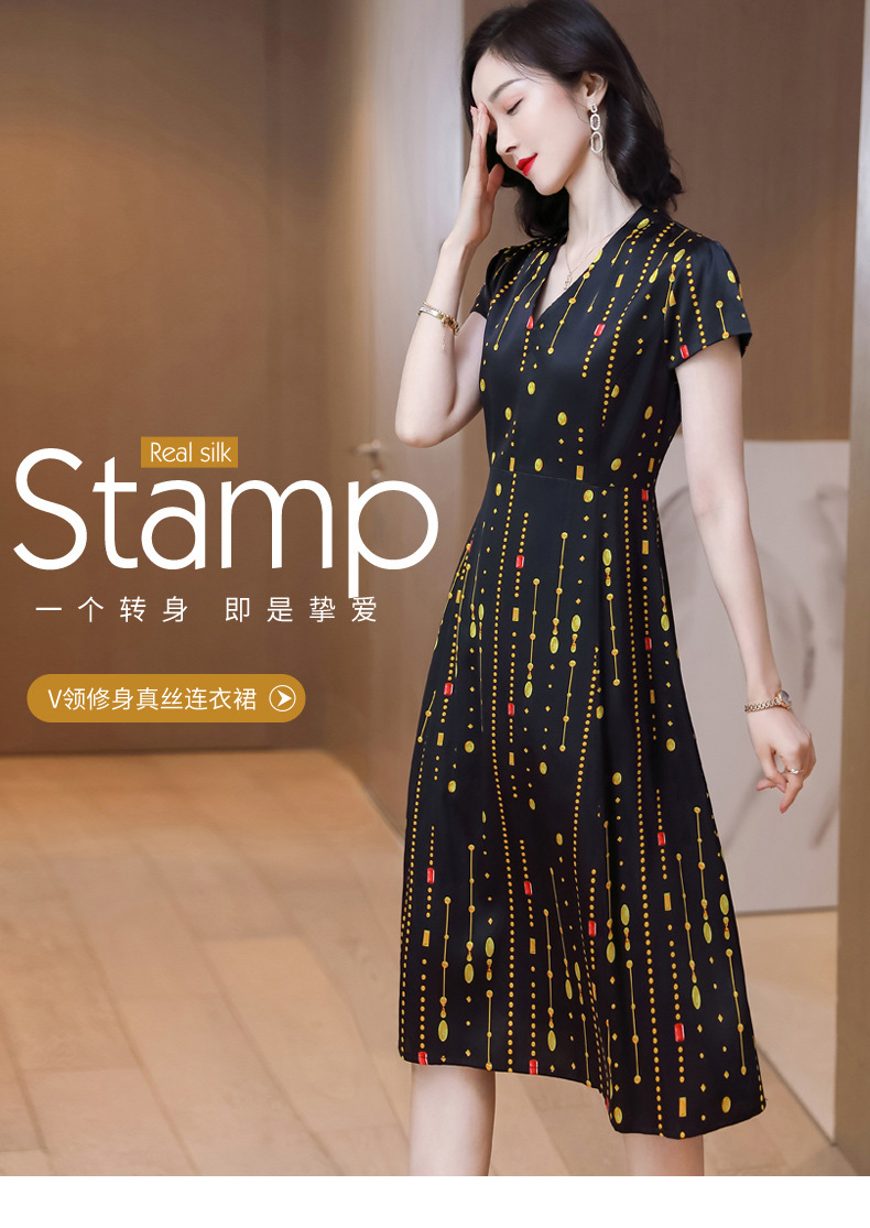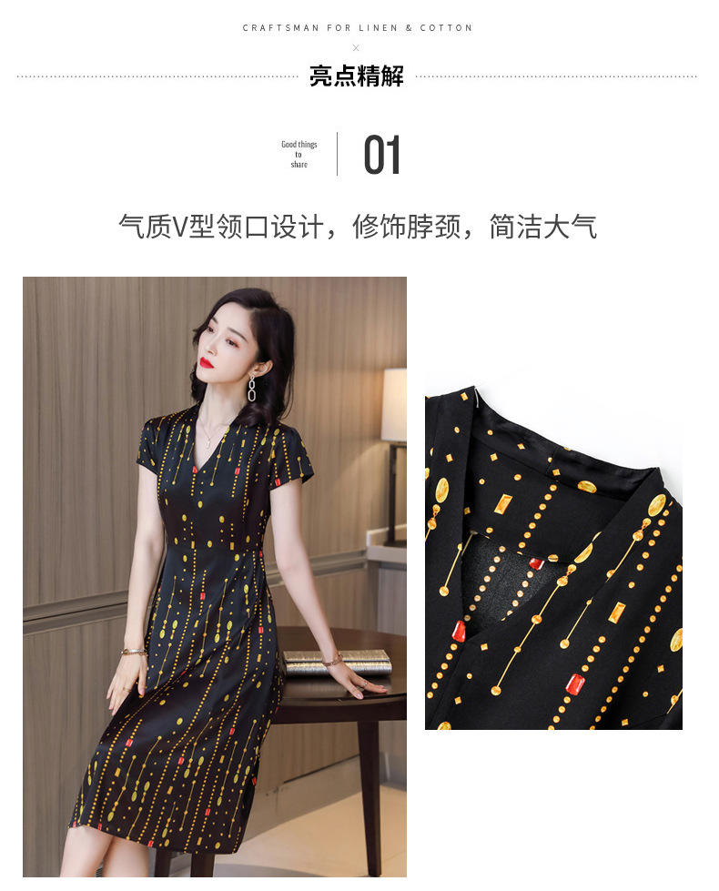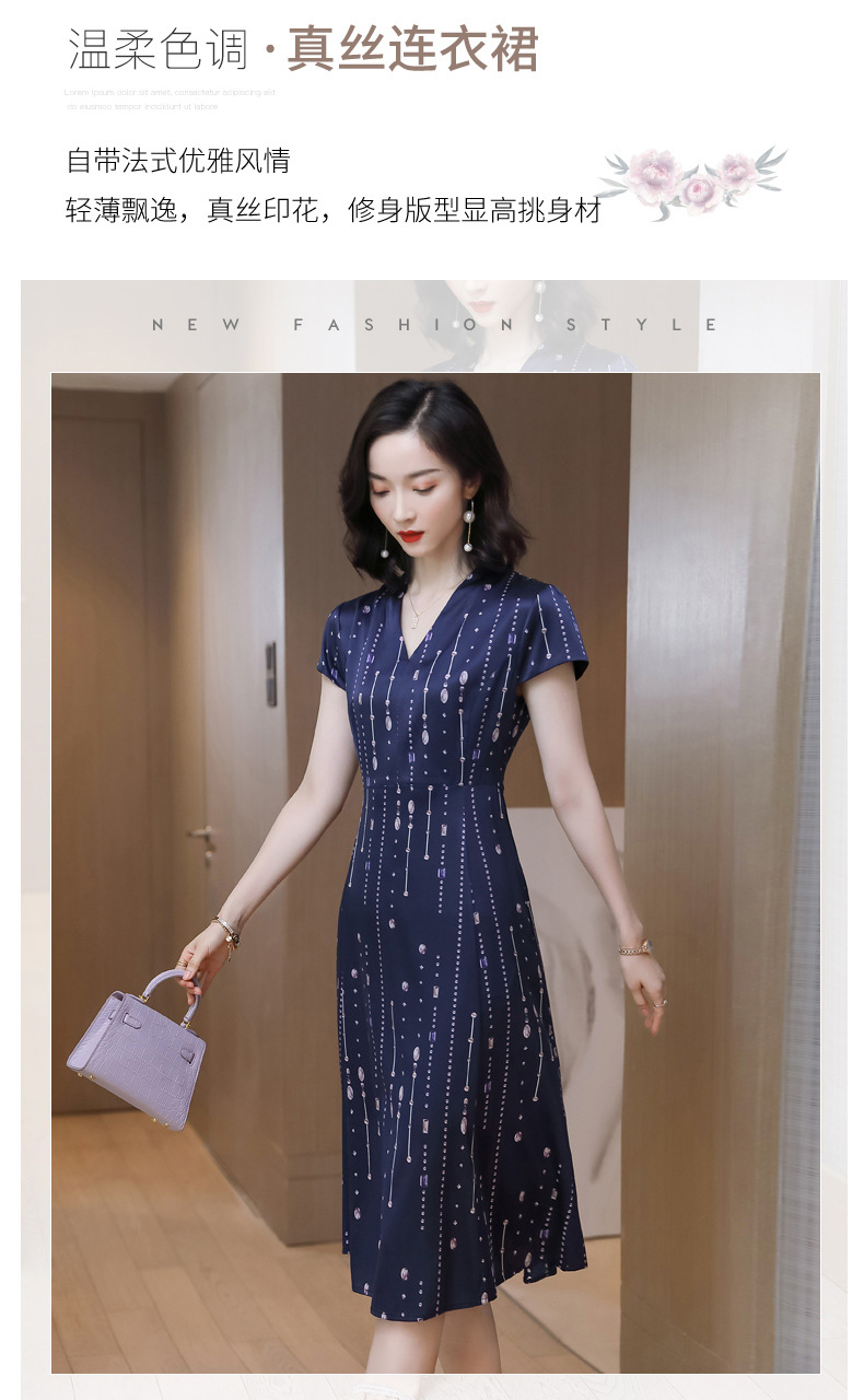 上海旗袍厂ASE-9156女装夏季V领真丝连衣裙2021桑蚕丝印花裙