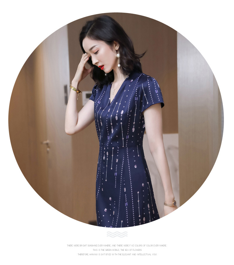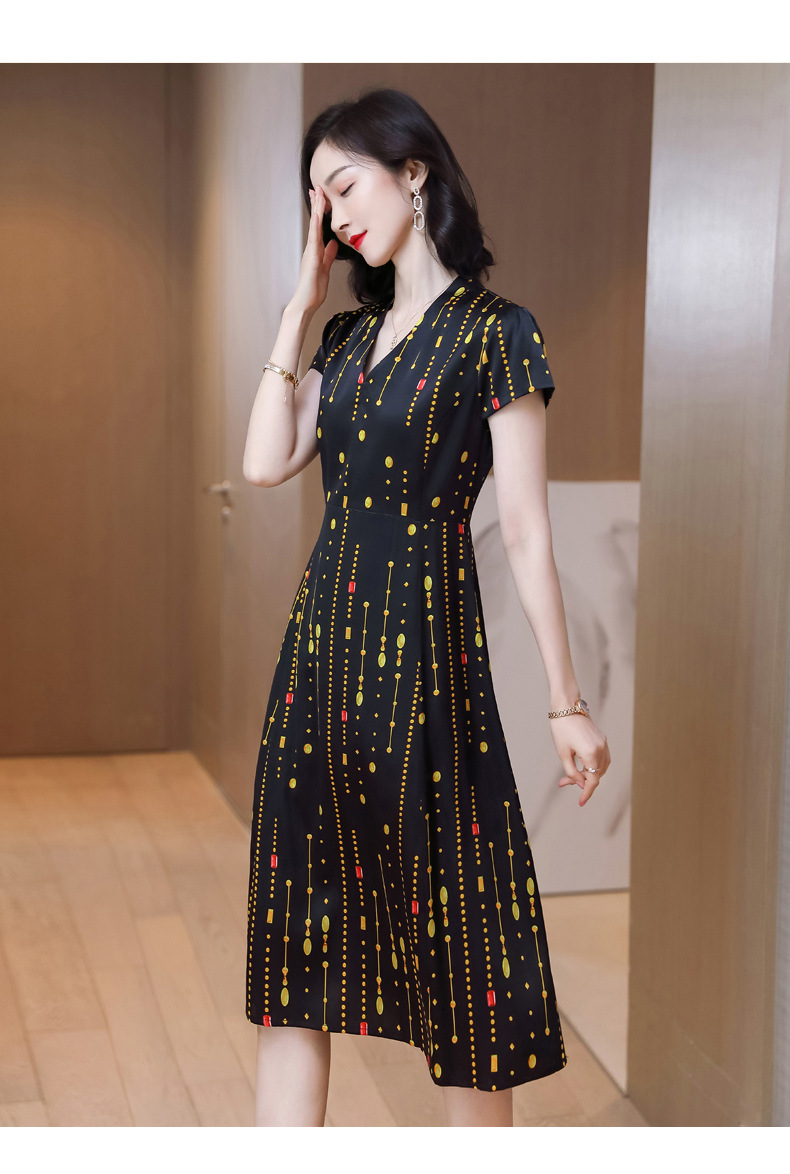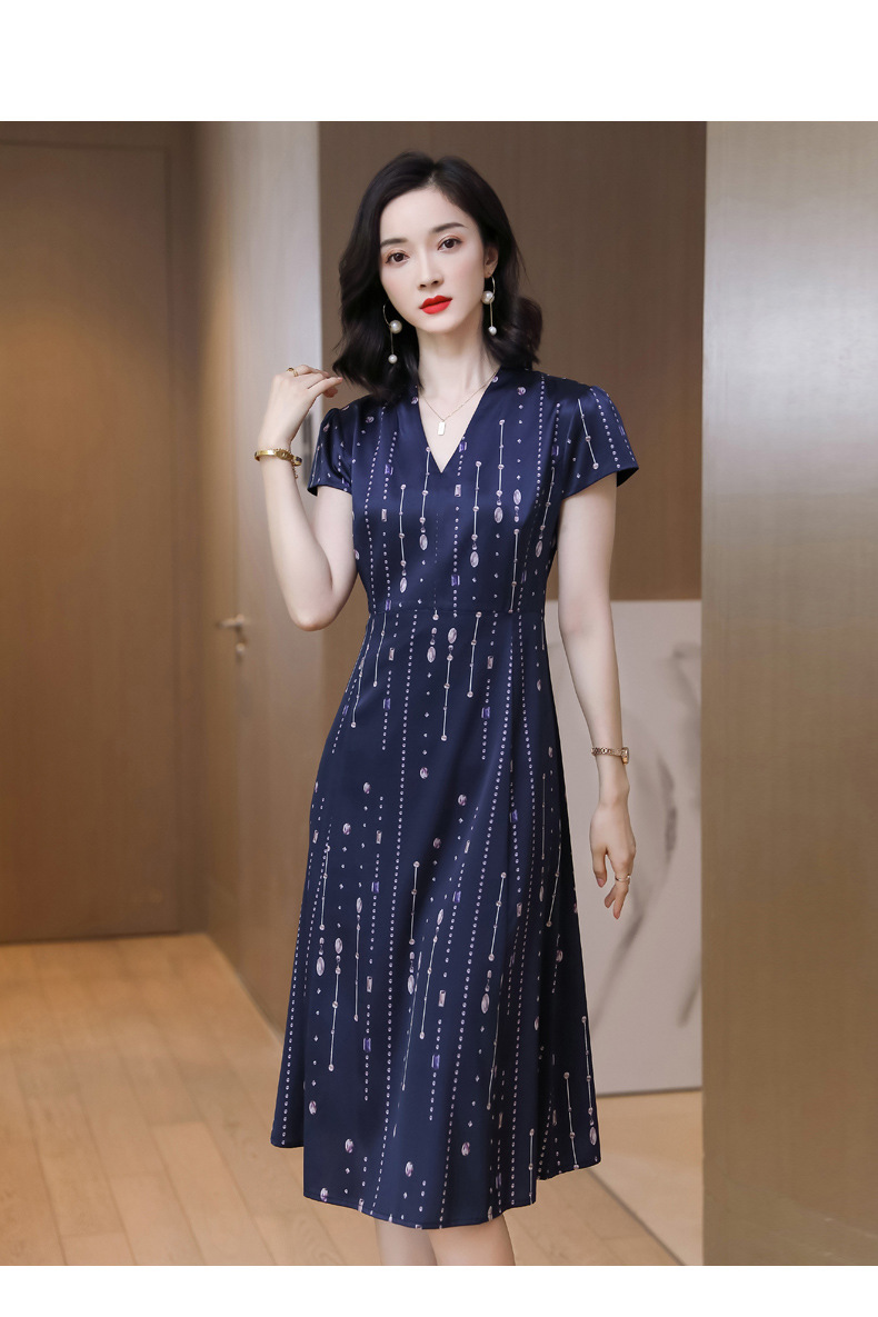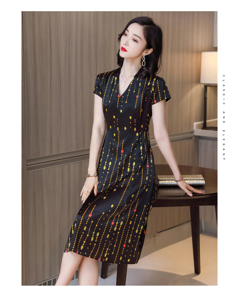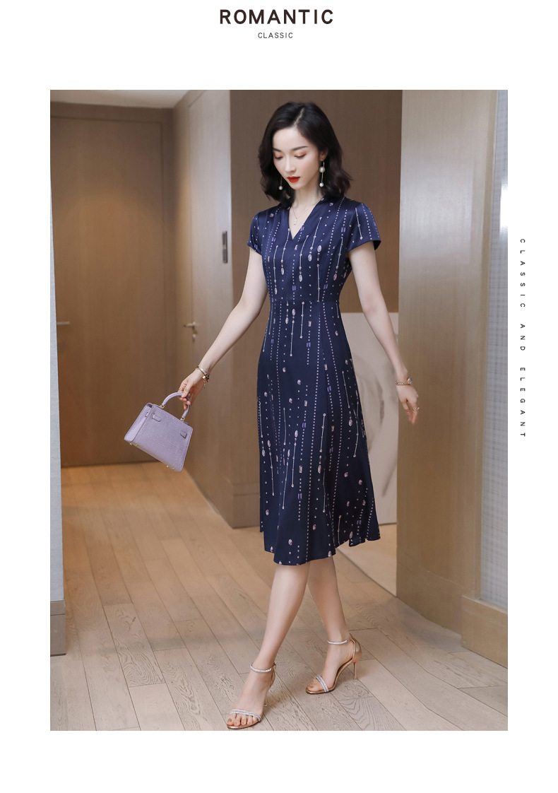 上海旗袍厂ASE-9156女装夏季V领真丝连衣裙2021桑蚕丝印花裙