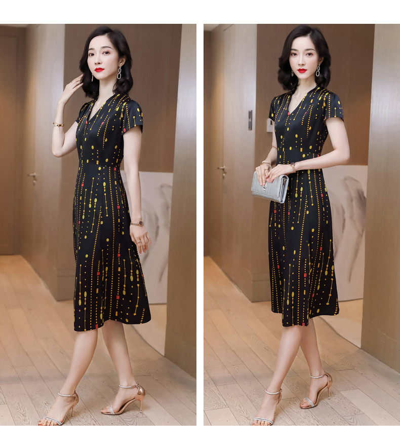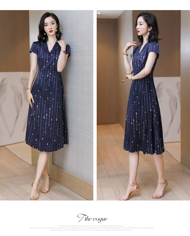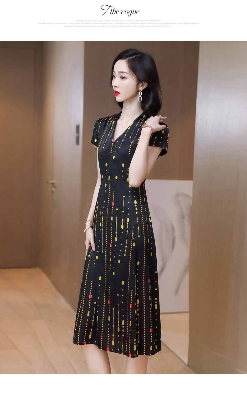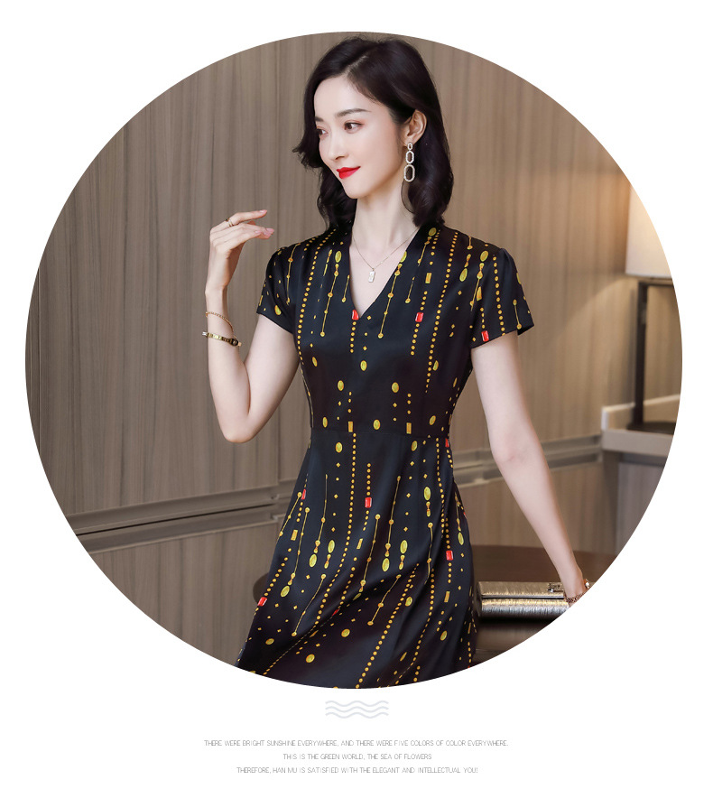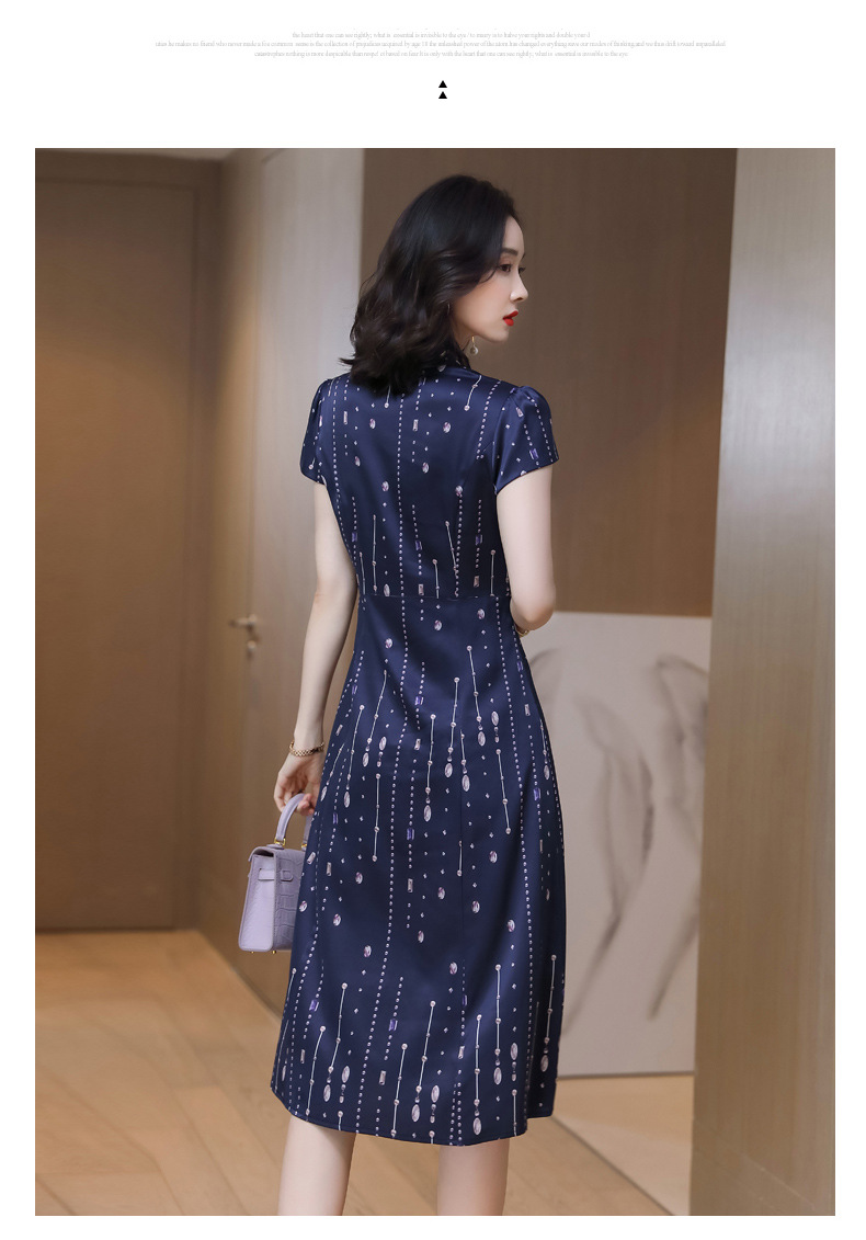 上海旗袍厂ASE-9156女装夏季V领真丝连衣裙2021桑蚕丝印花裙