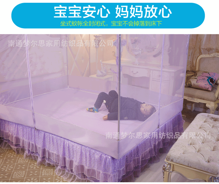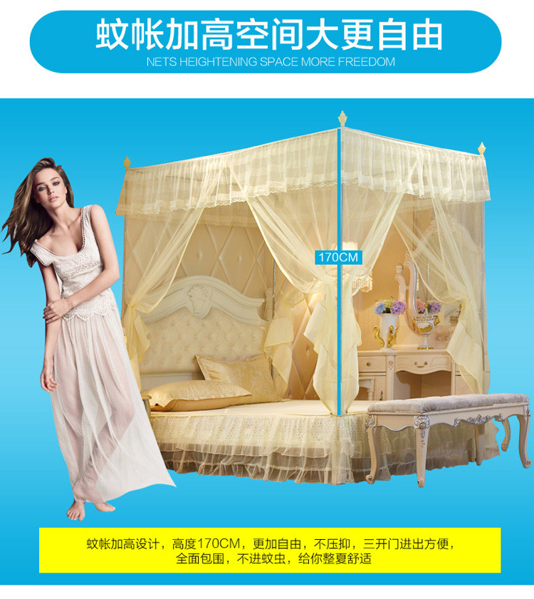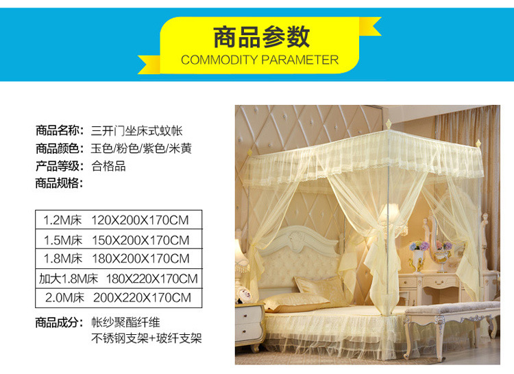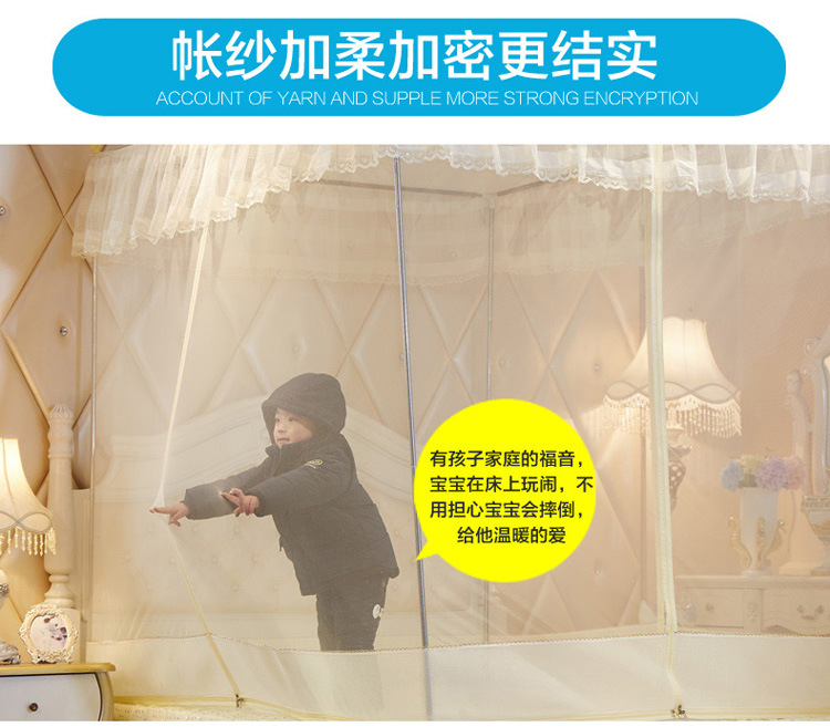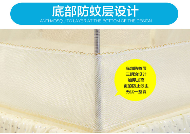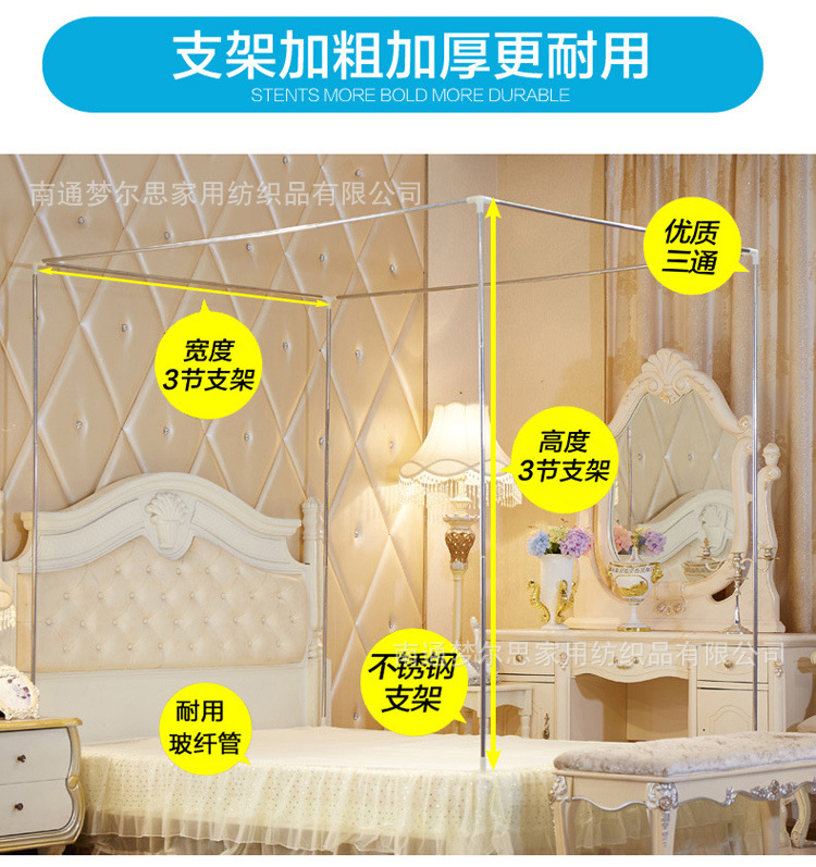 MR坐床拉链三开门有底蚊帐不锈钢管加粗加厚防摔铁艺钢管1.5m1.8米