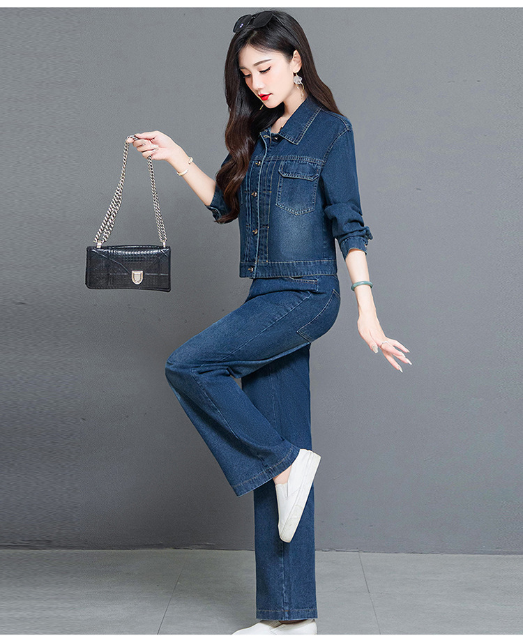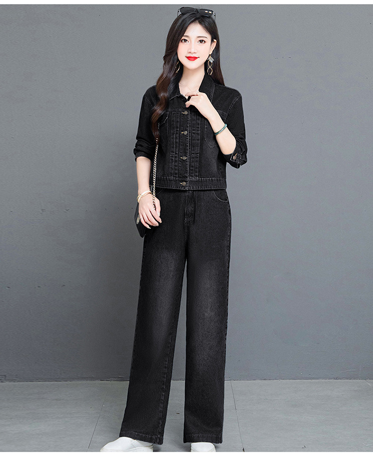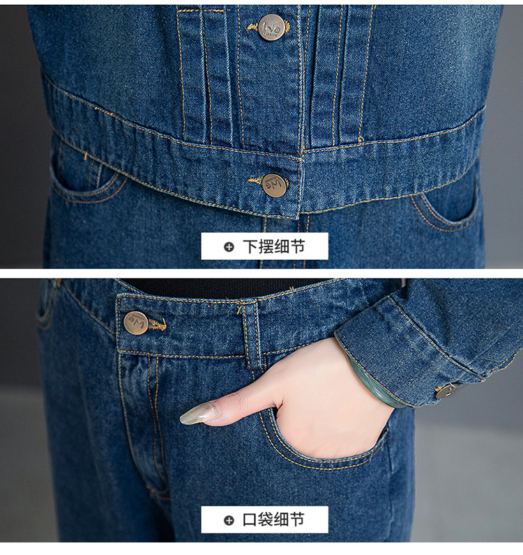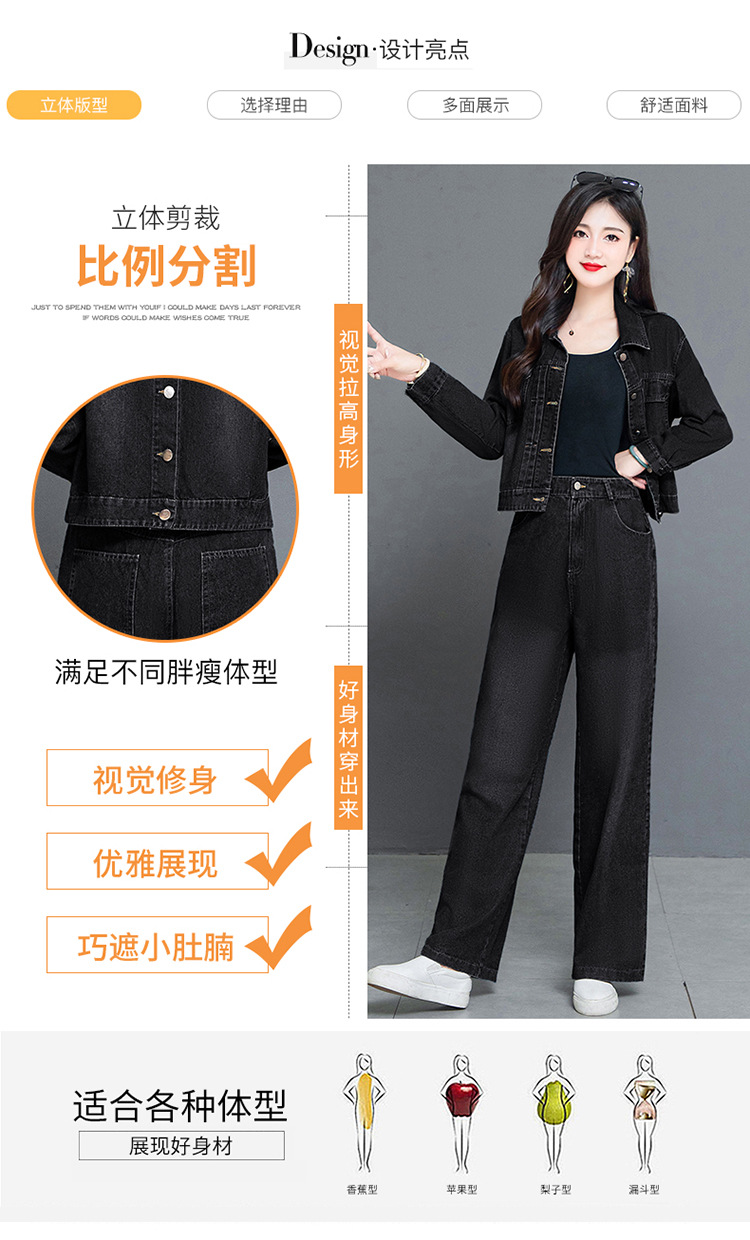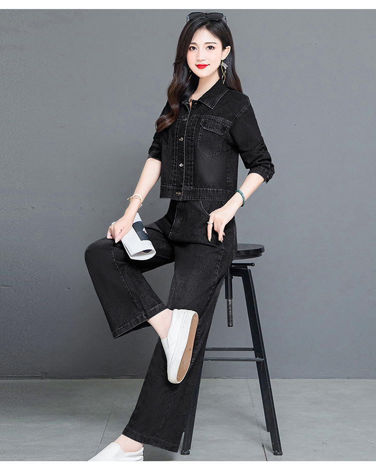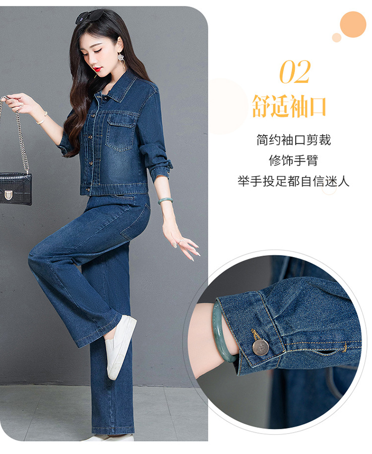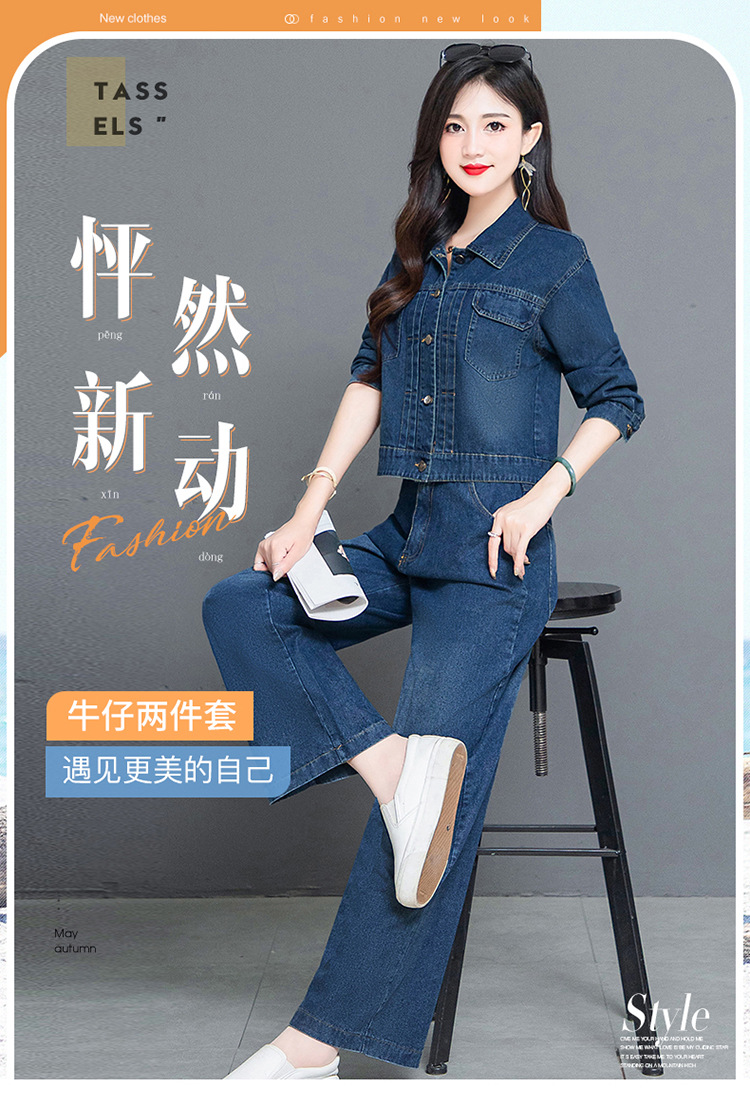 QYM-TYH-231317-Y,牛仔两件套秋季新款长袖上衣长款直筒裤休闲时尚套装