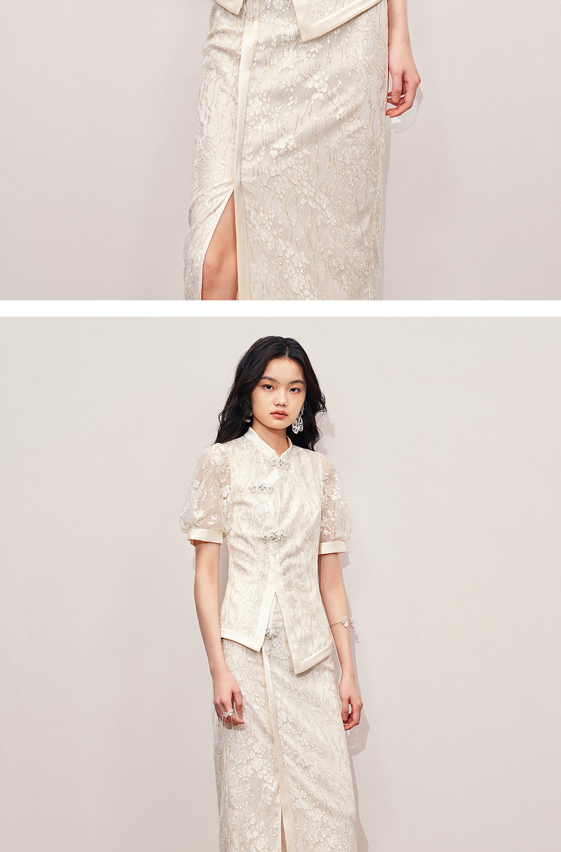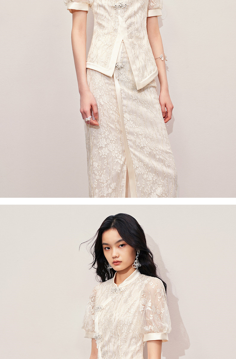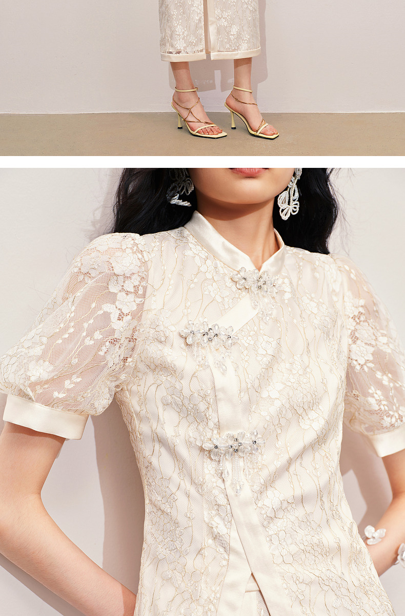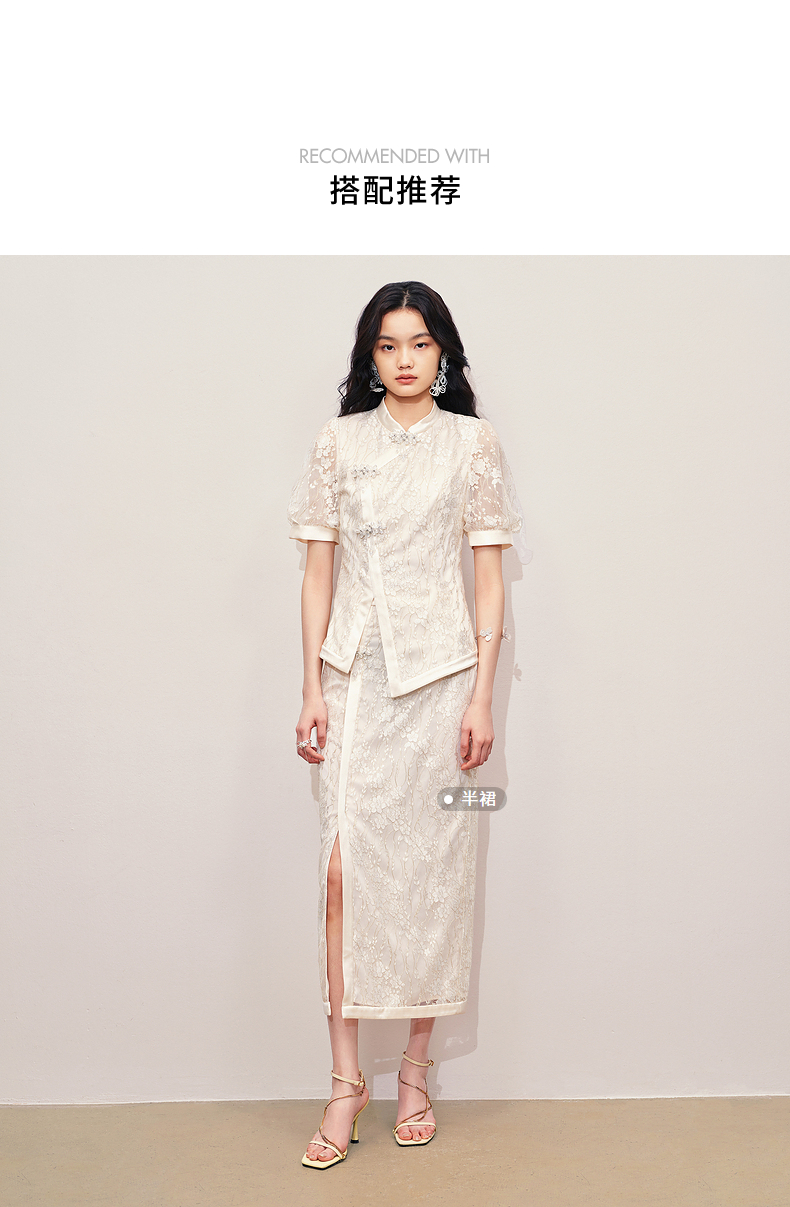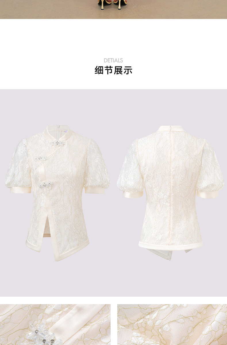 MAXRIENY国风新中式蕾丝上衣修身显瘦2024夏季新款立领手工盘扣(货号:MS85TP265)