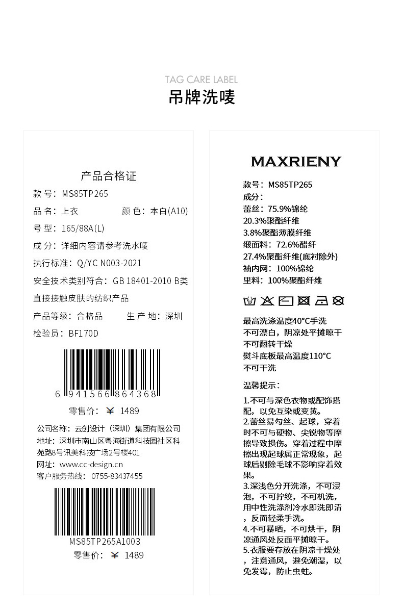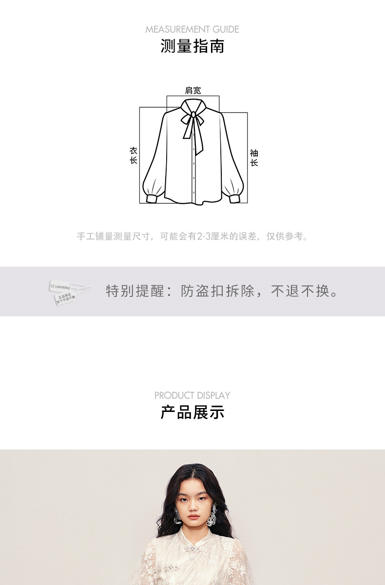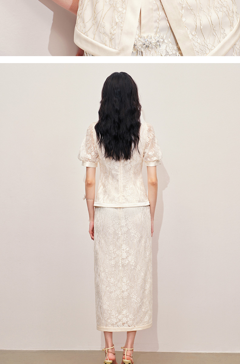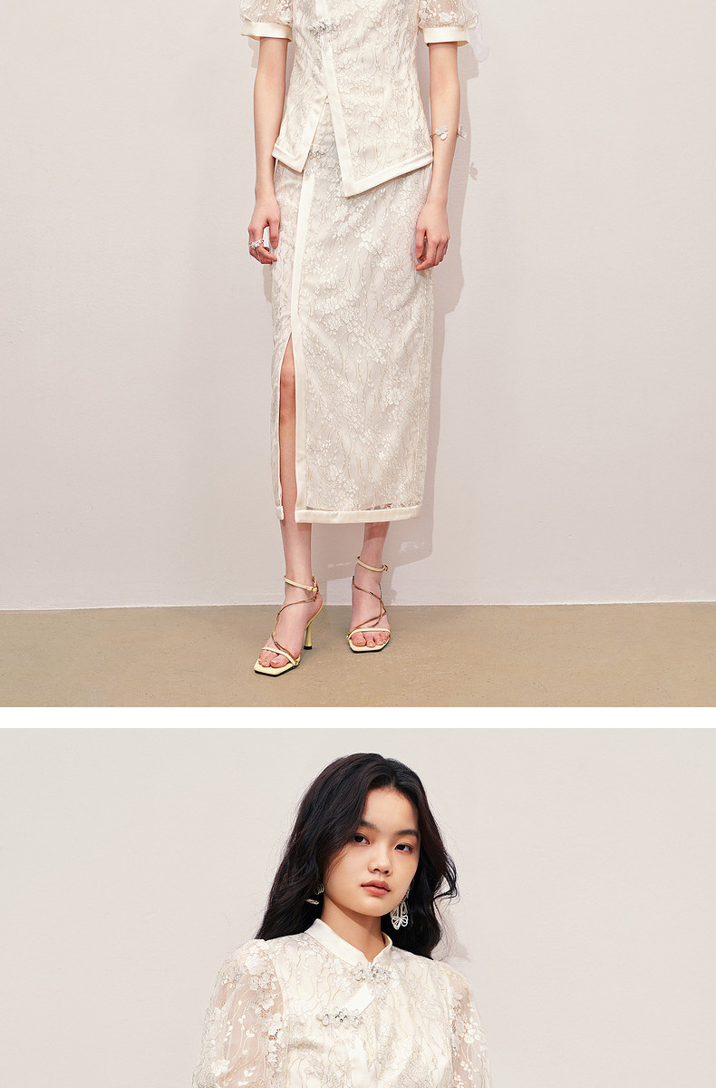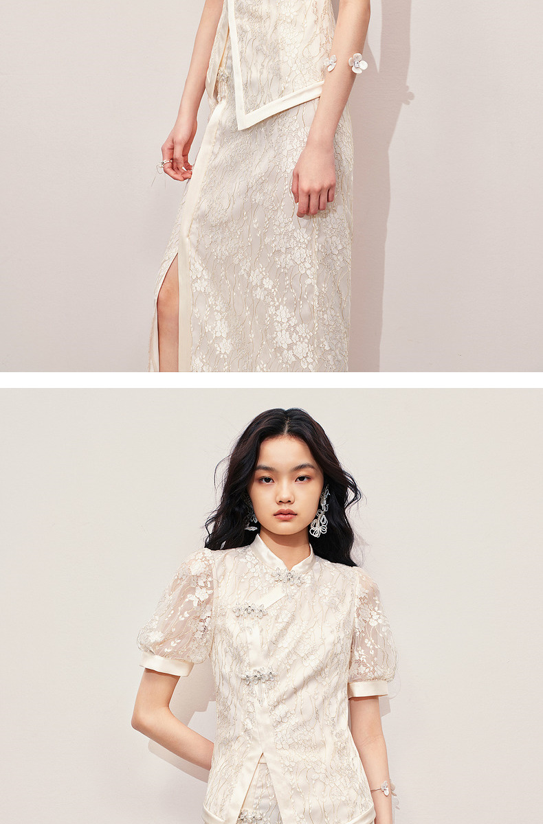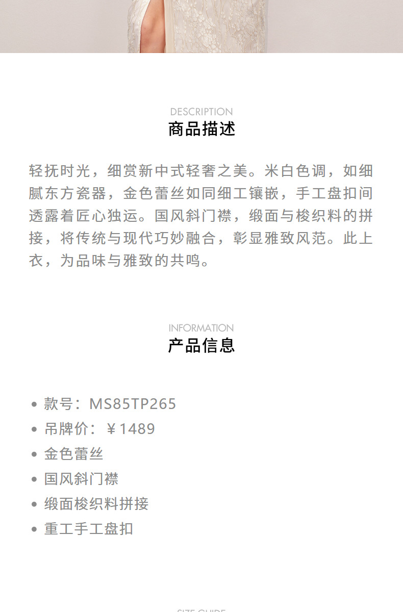 MAXRIENY国风新中式蕾丝上衣修身显瘦2024夏季新款立领手工盘扣(货号:MS85TP265)