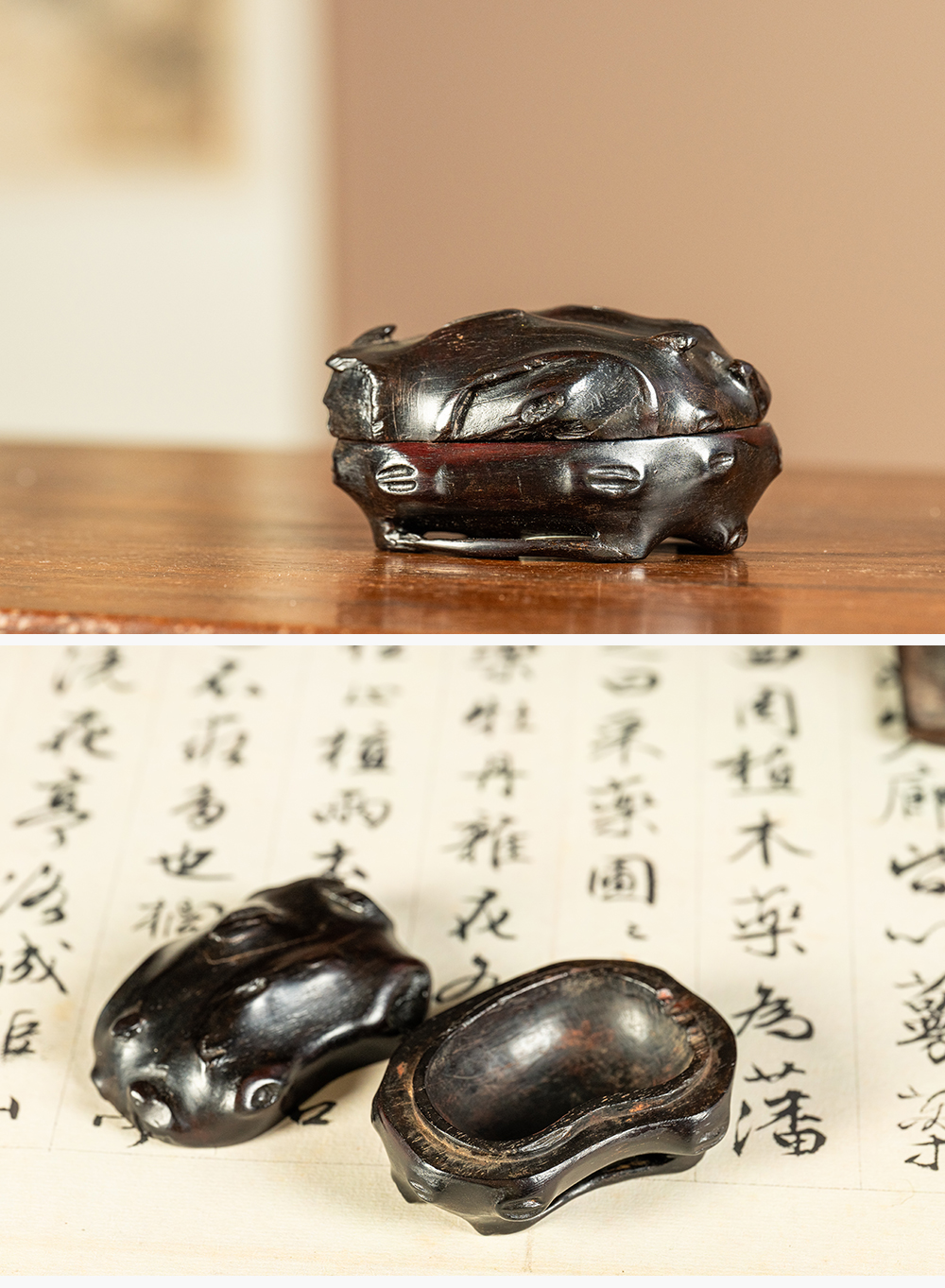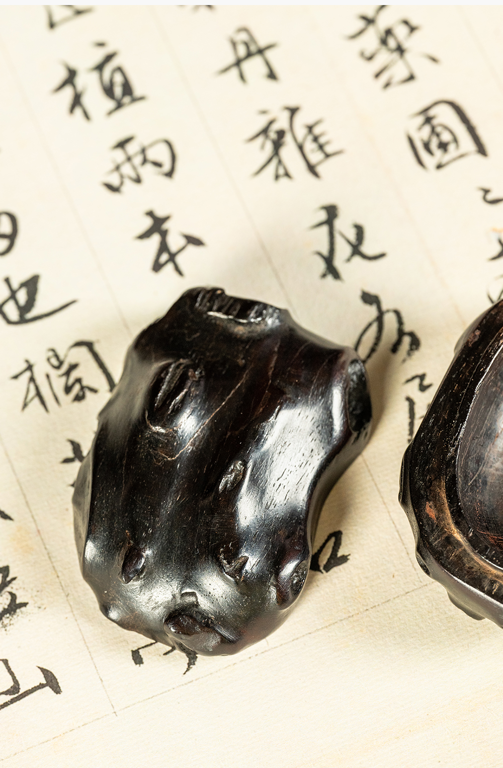 清代 红木镶瘿木嵌寿山石山水人物插屏