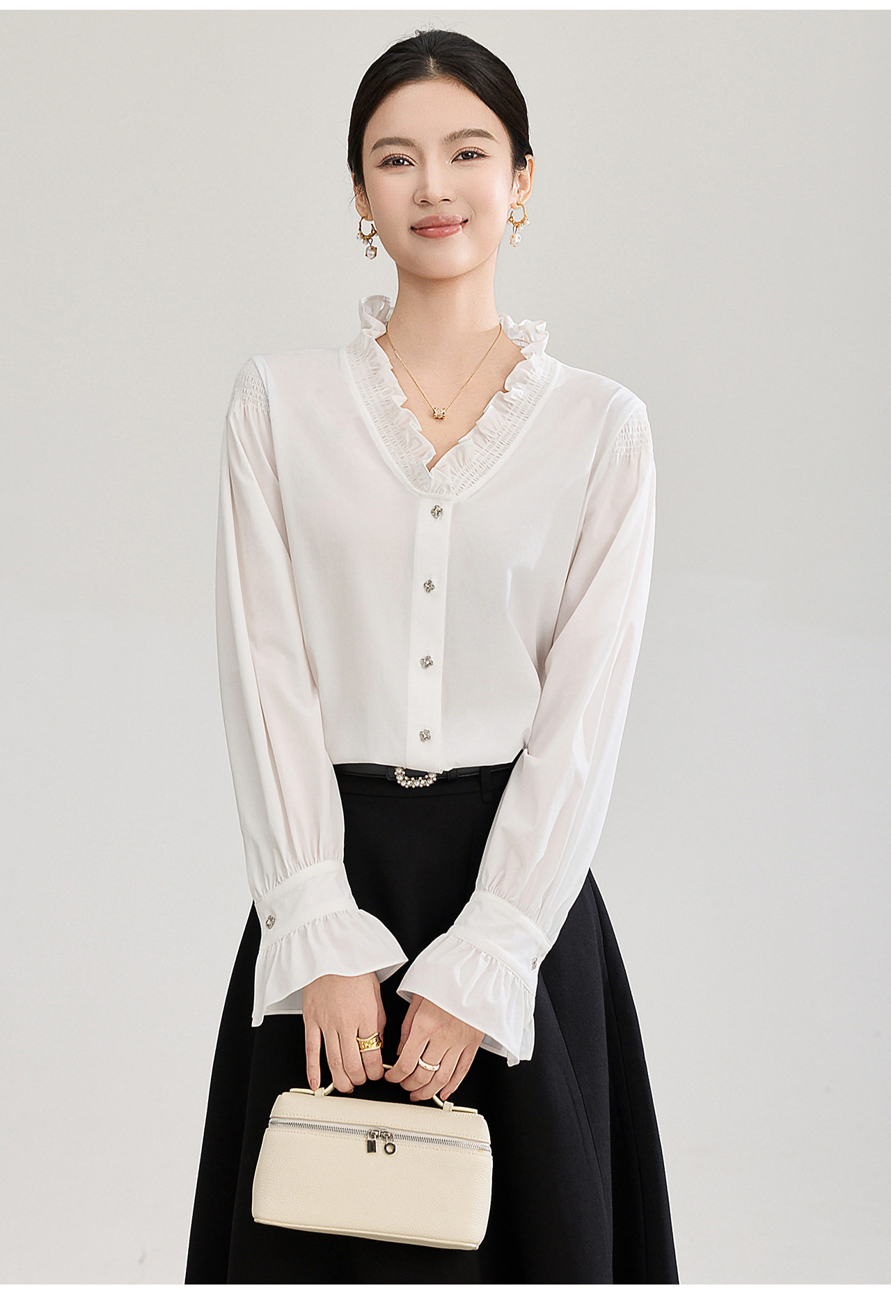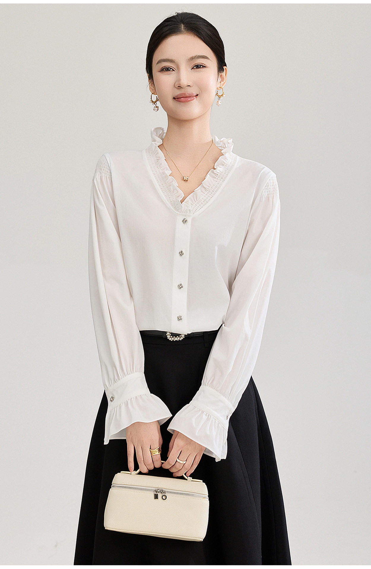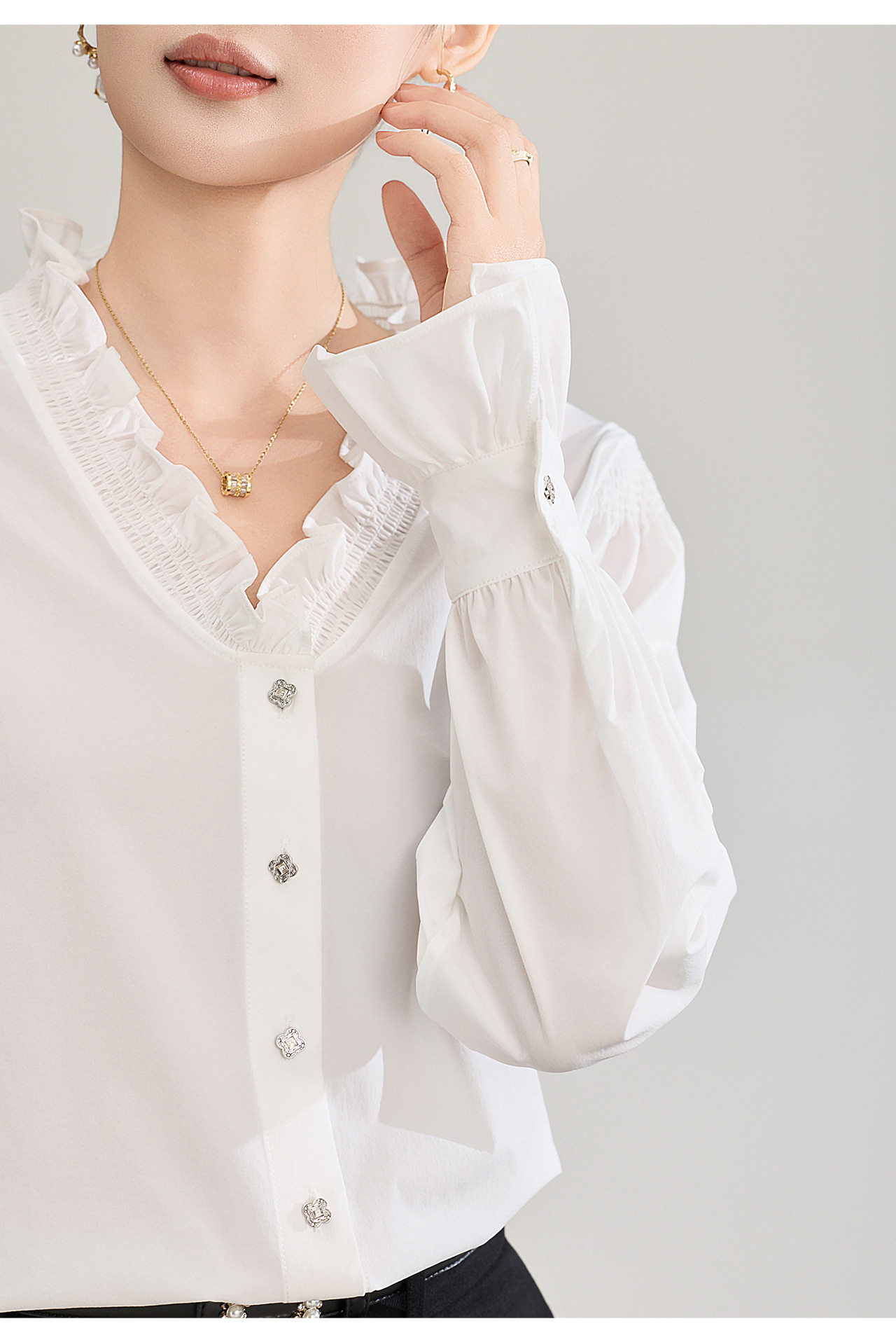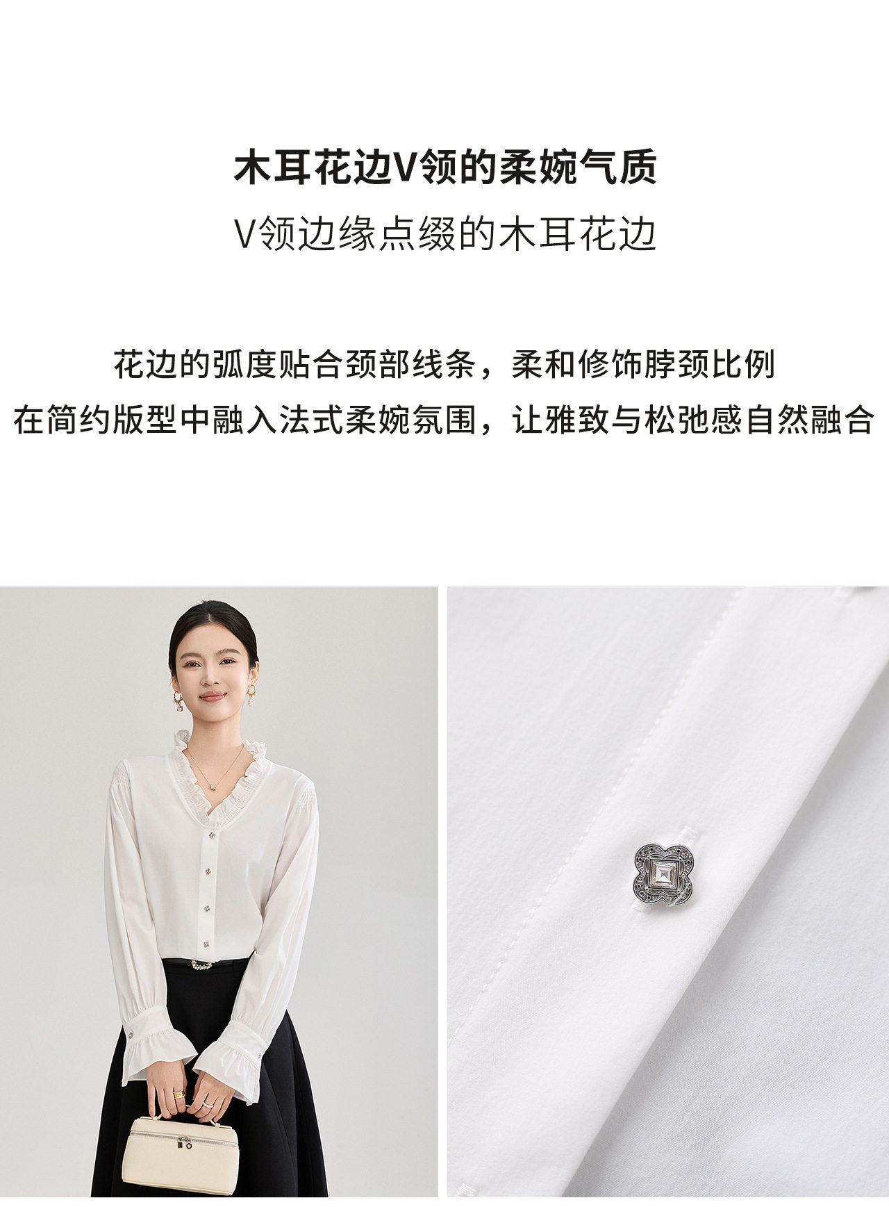 「高货wl」全新升级【铂金会员266/天猫359/差价93】(00557)洛诗琳法式木耳花边领衬衫2026春季新款优雅喇叭袖上衣女