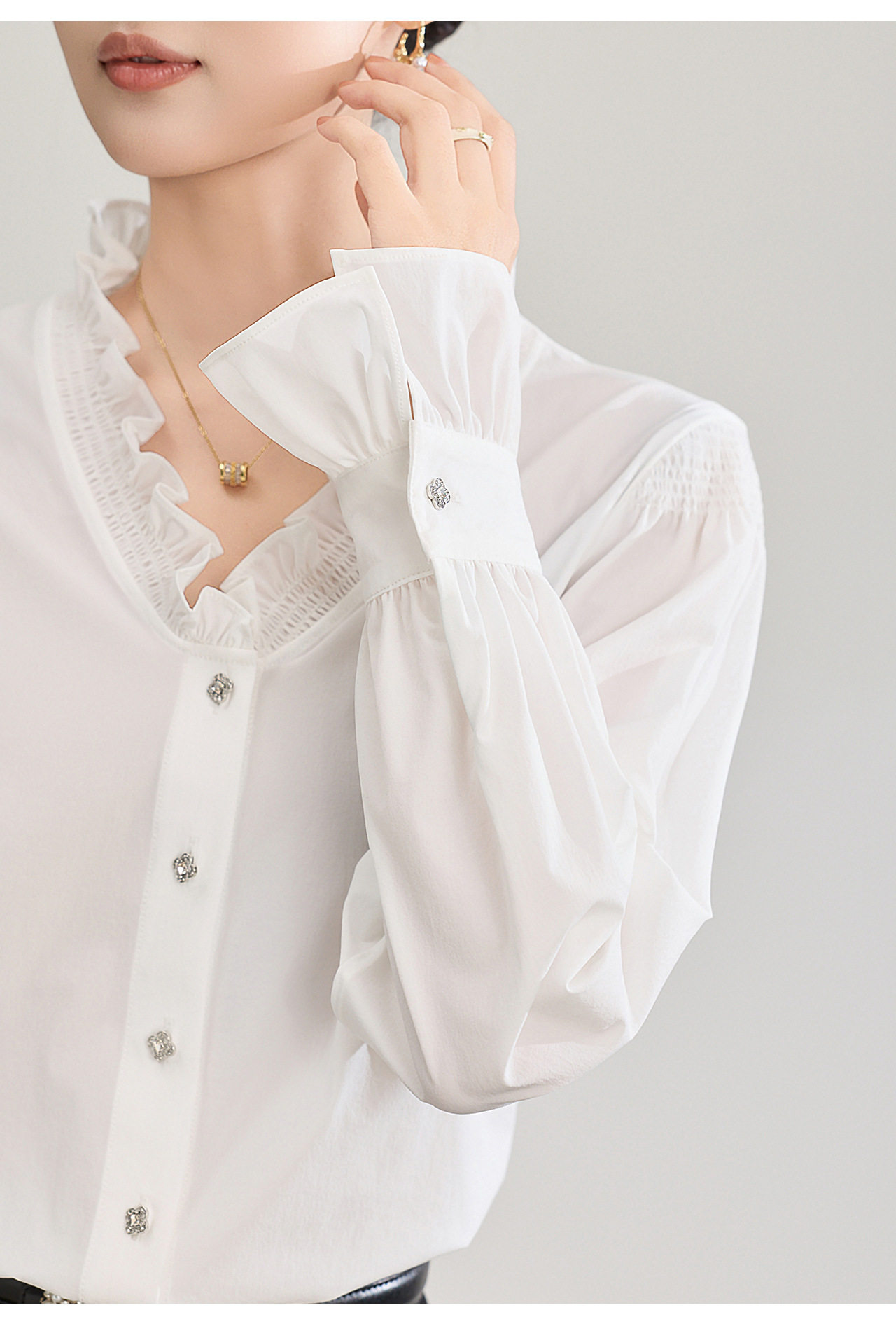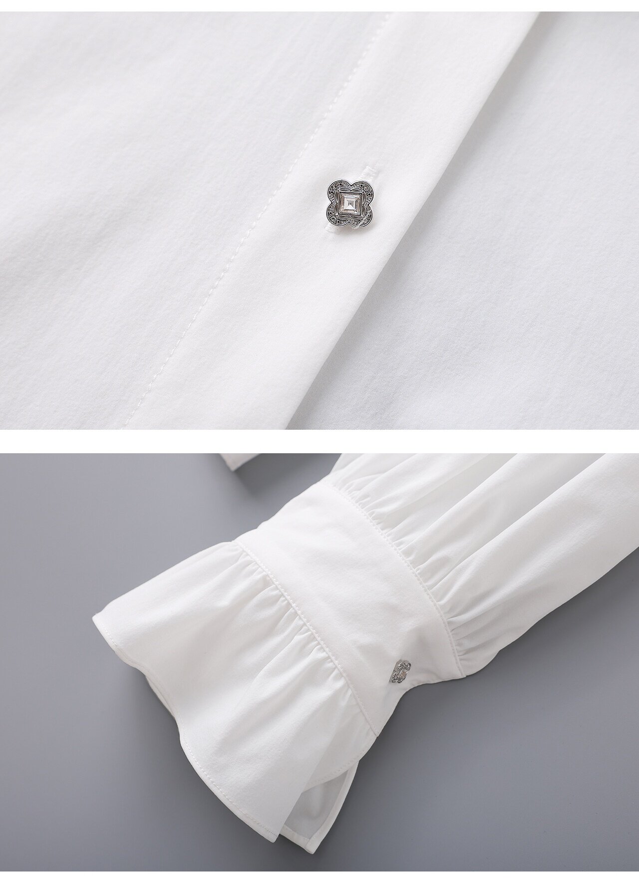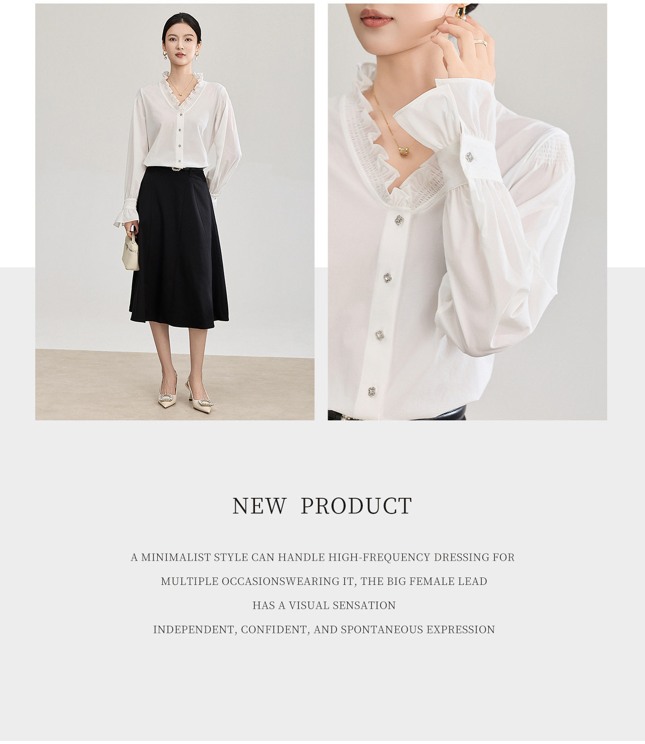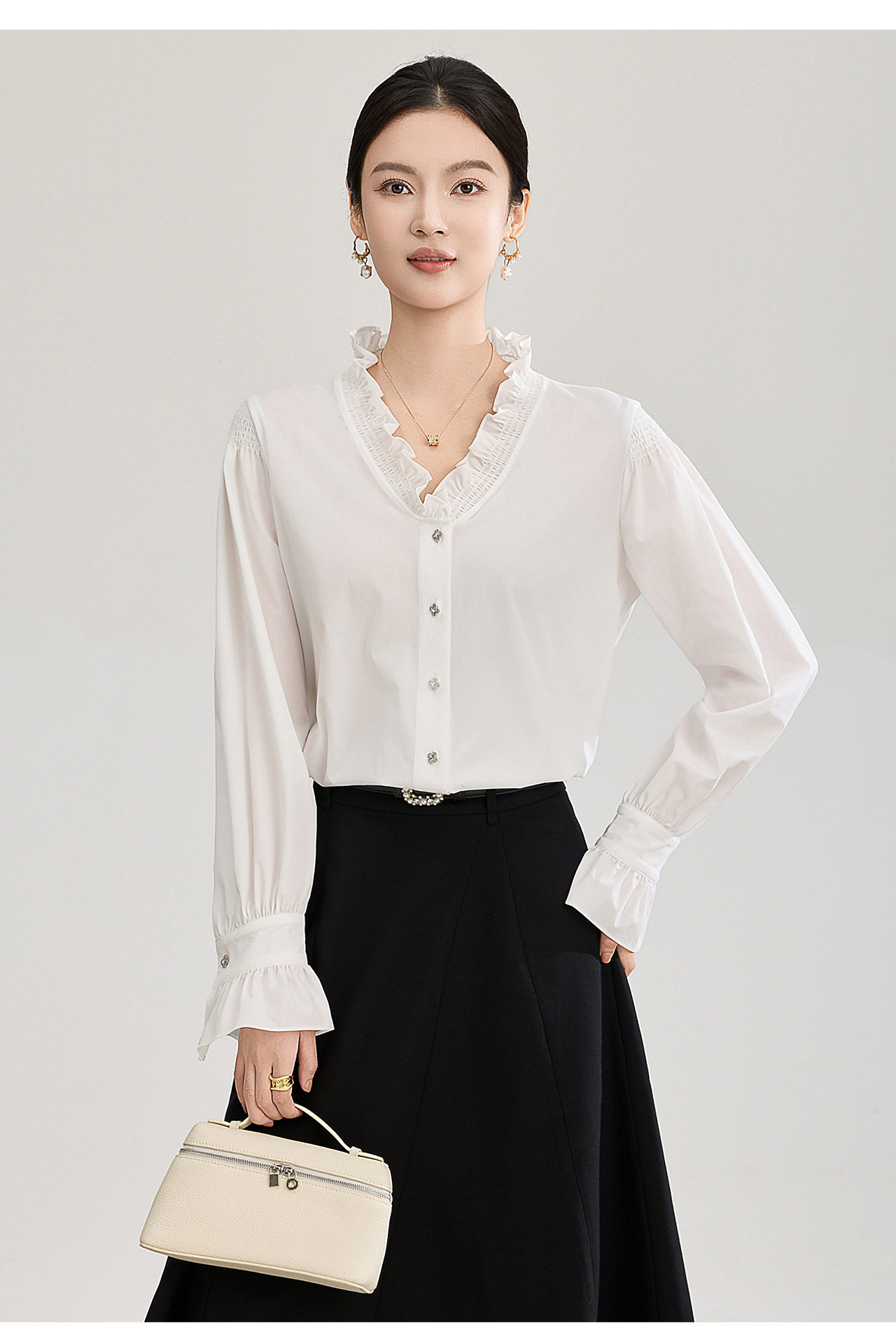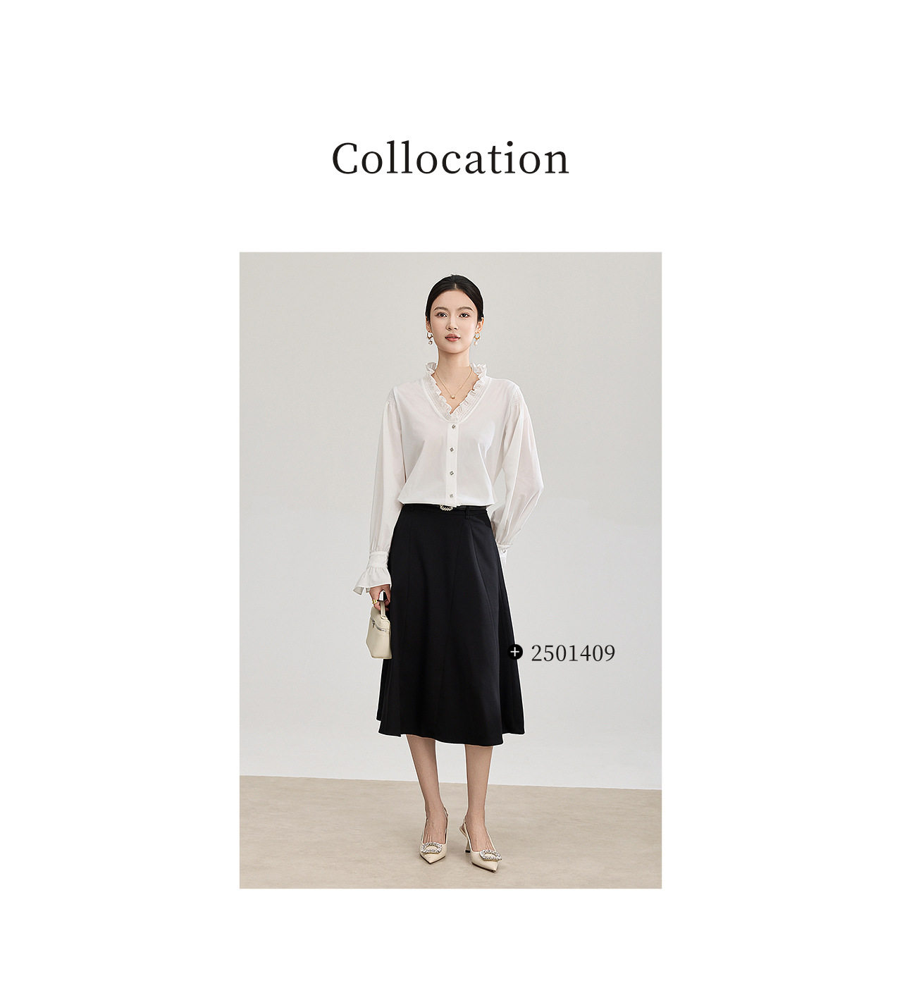 「高货wl」全新升级【铂金会员266/天猫359/差价93】(00557)洛诗琳法式木耳花边领衬衫2026春季新款优雅喇叭袖上衣女