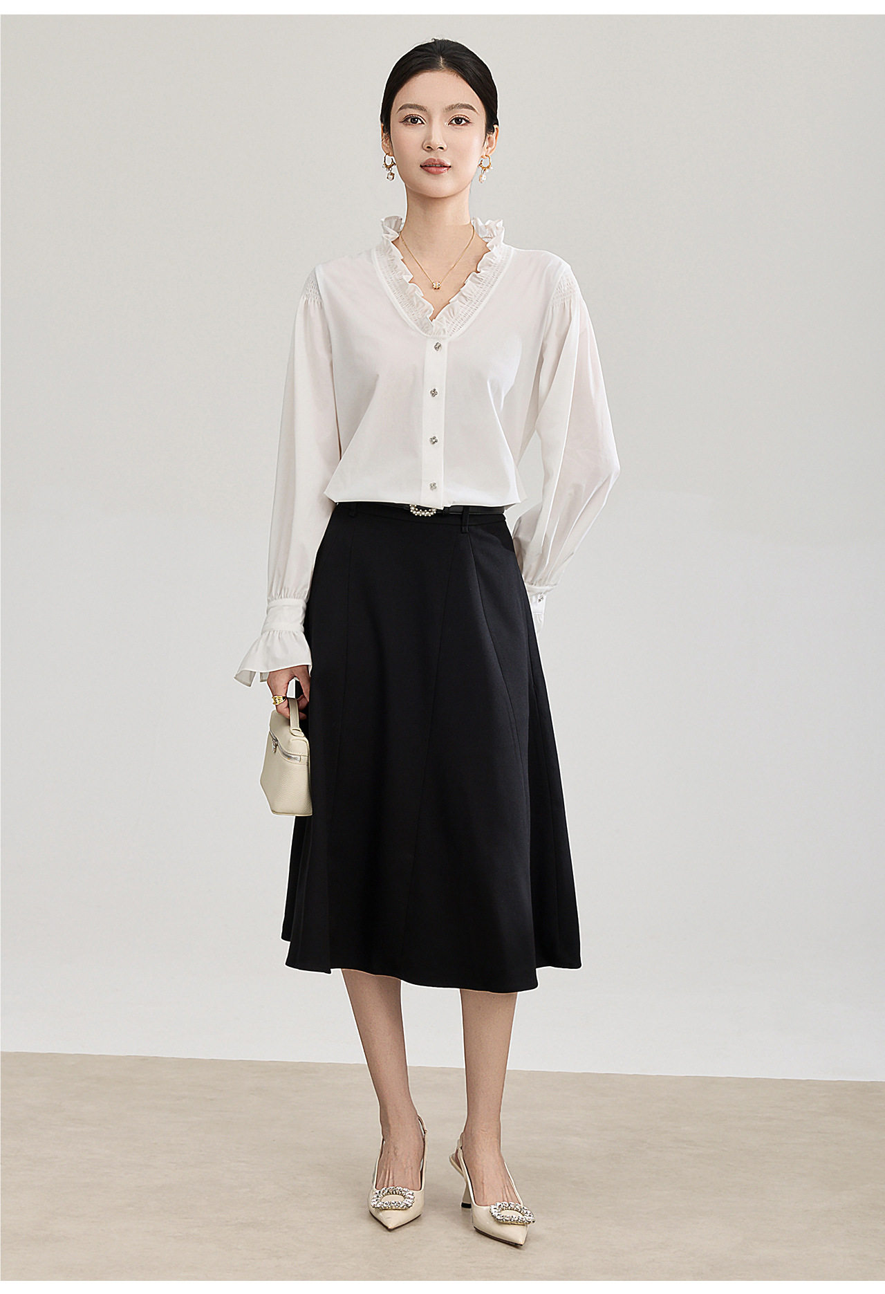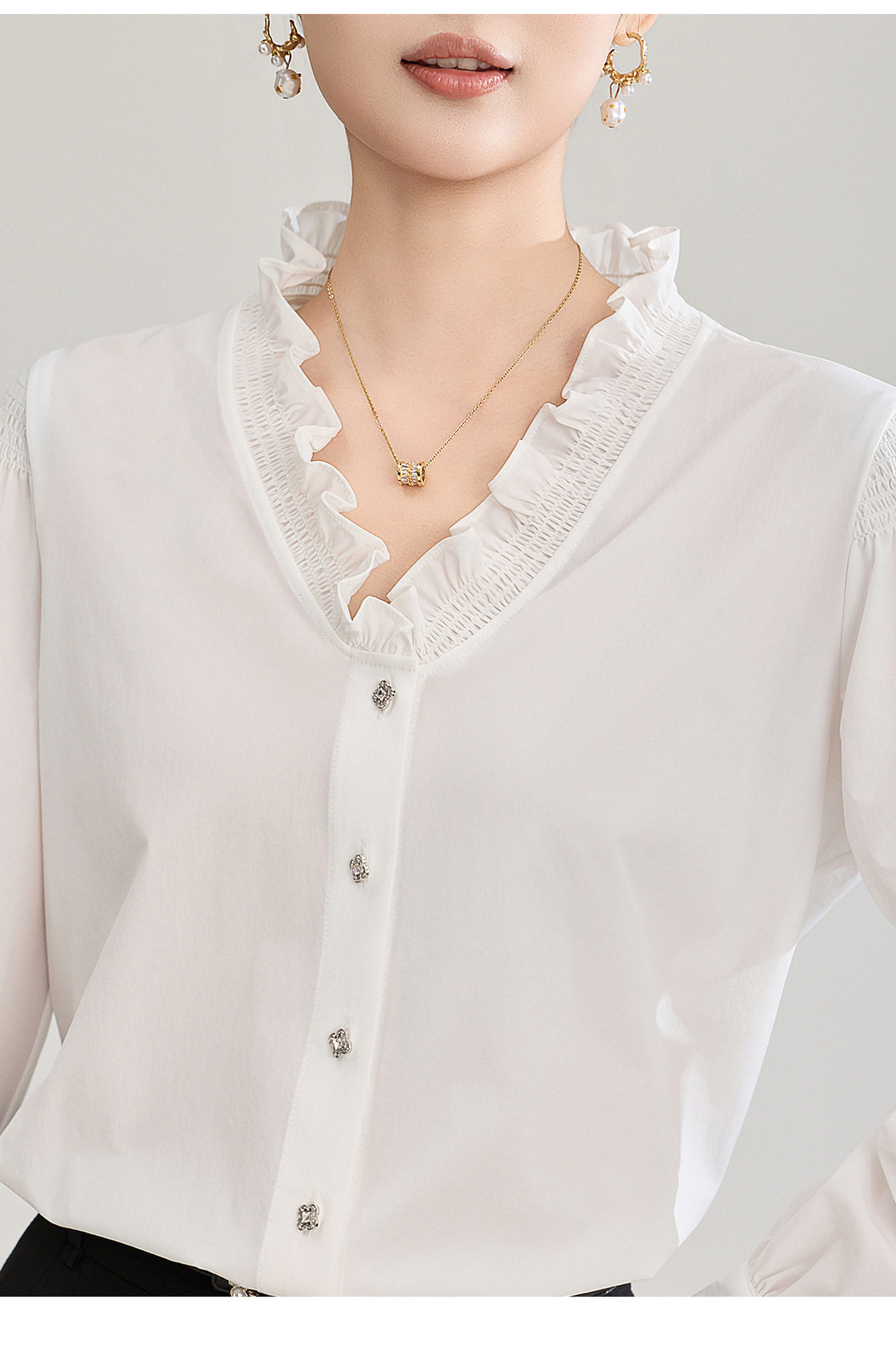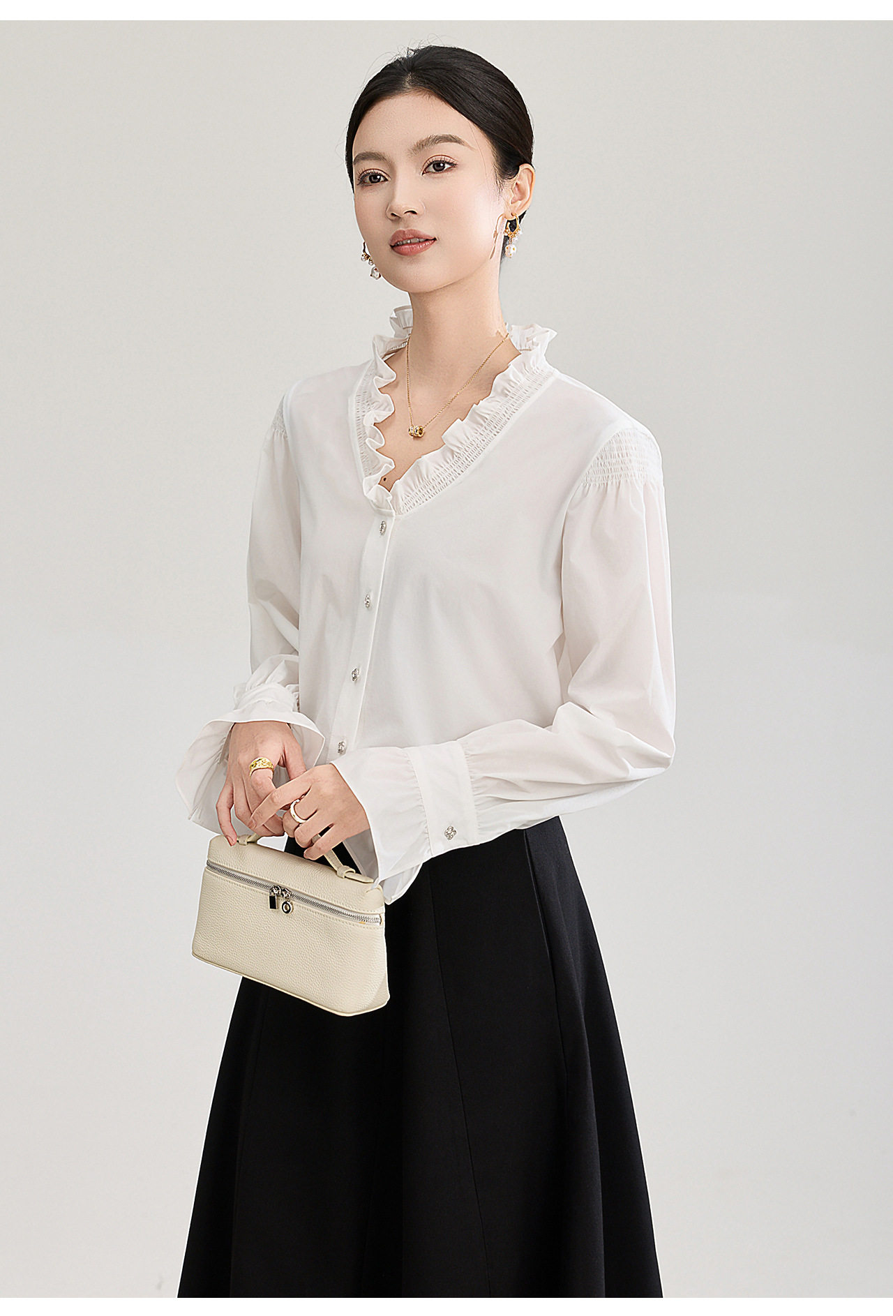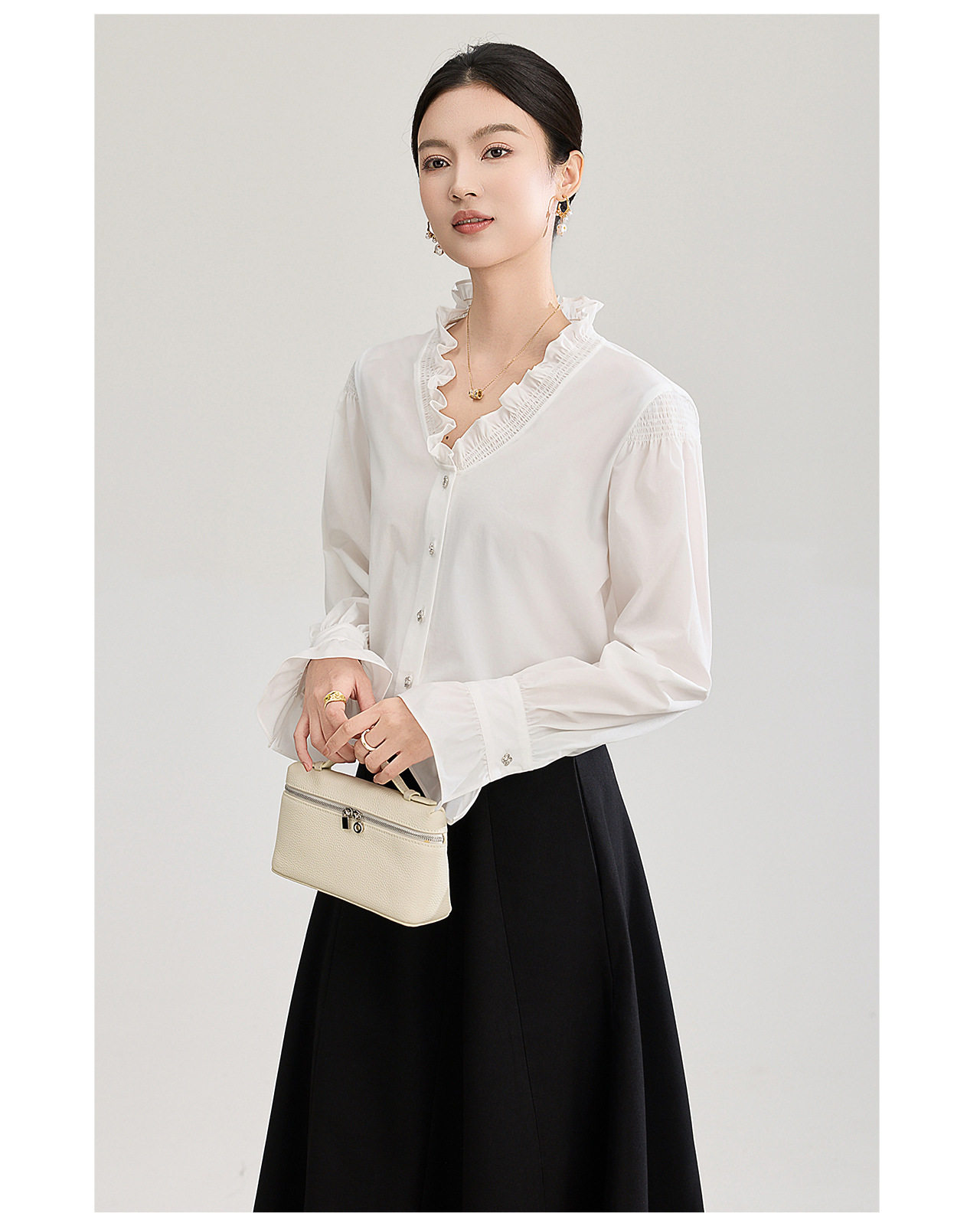 「高货wl」全新升级【铂金会员266/天猫359/差价93】(00557)洛诗琳法式木耳花边领衬衫2026春季新款优雅喇叭袖上衣女