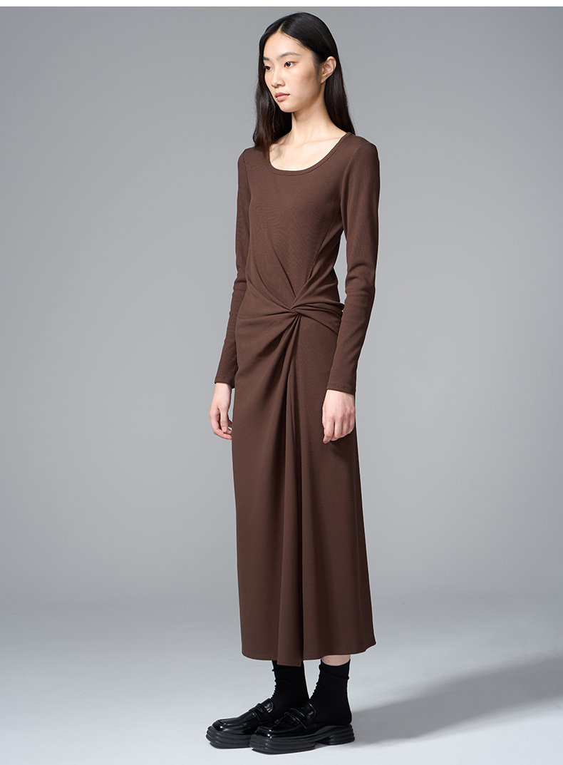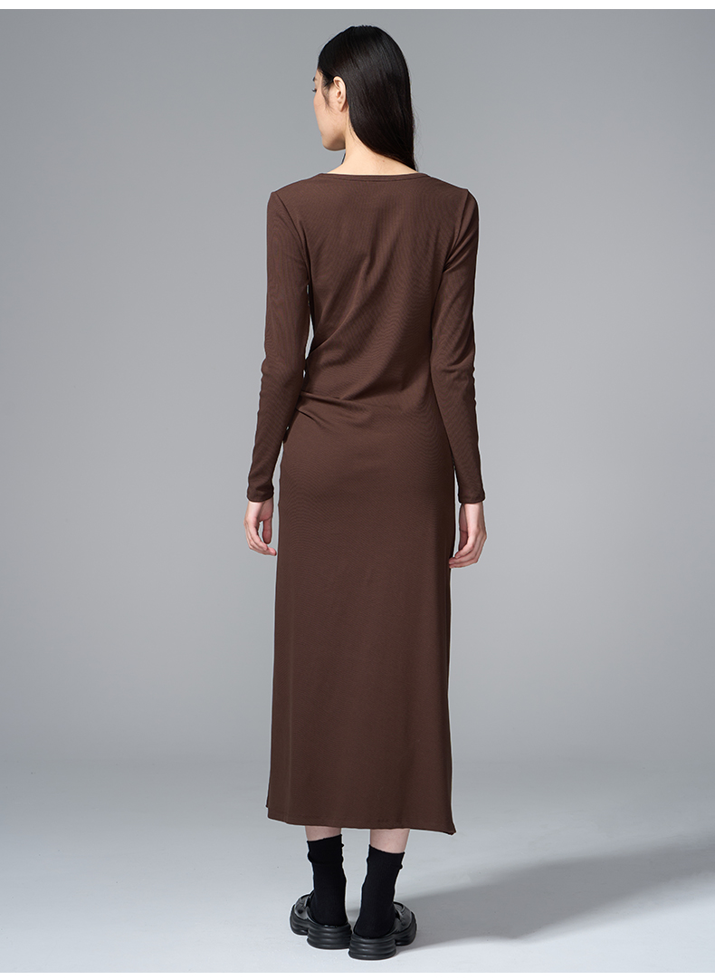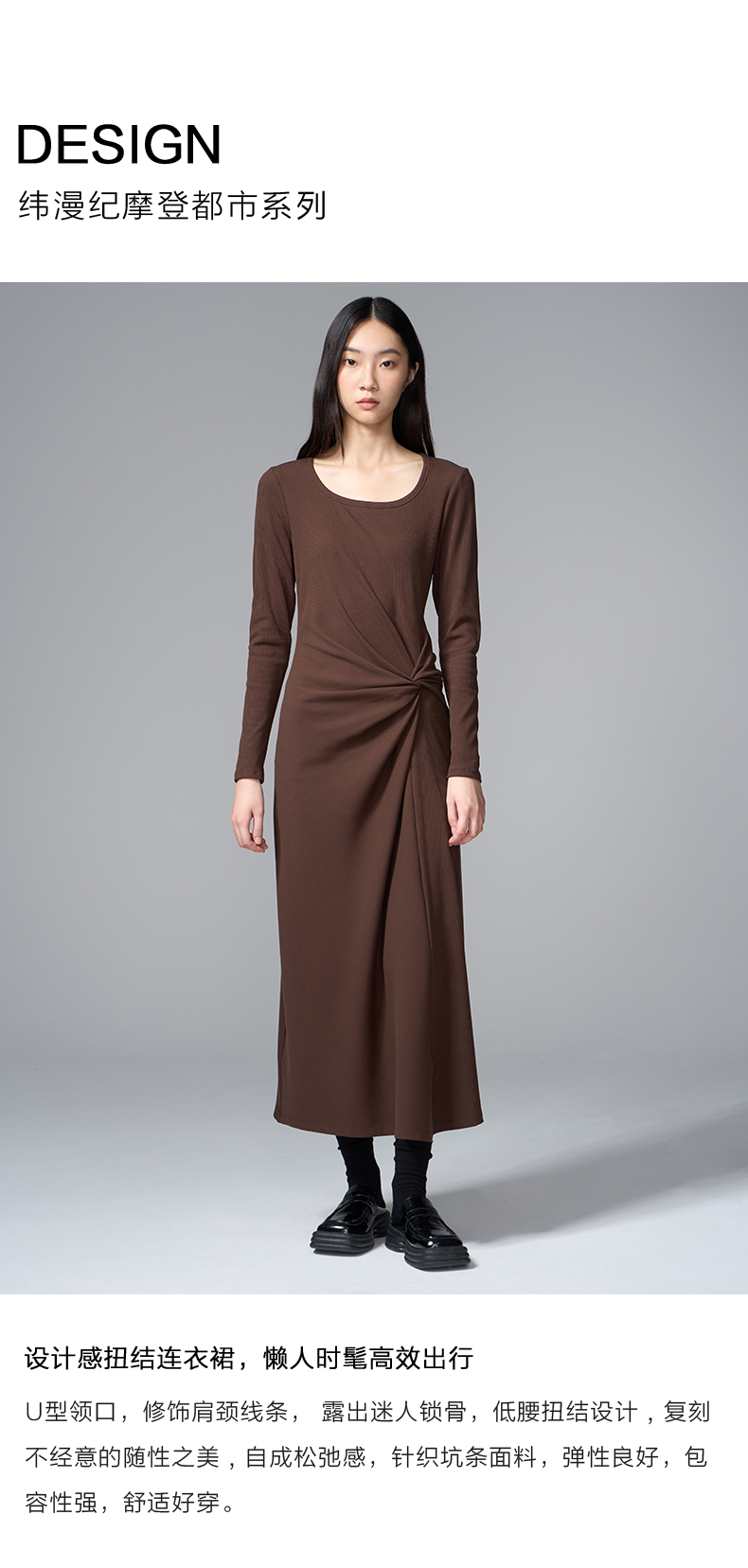 VIMAGE纬漫纪显瘦气质方领纽扣秋冬新款连衣裙V2407110